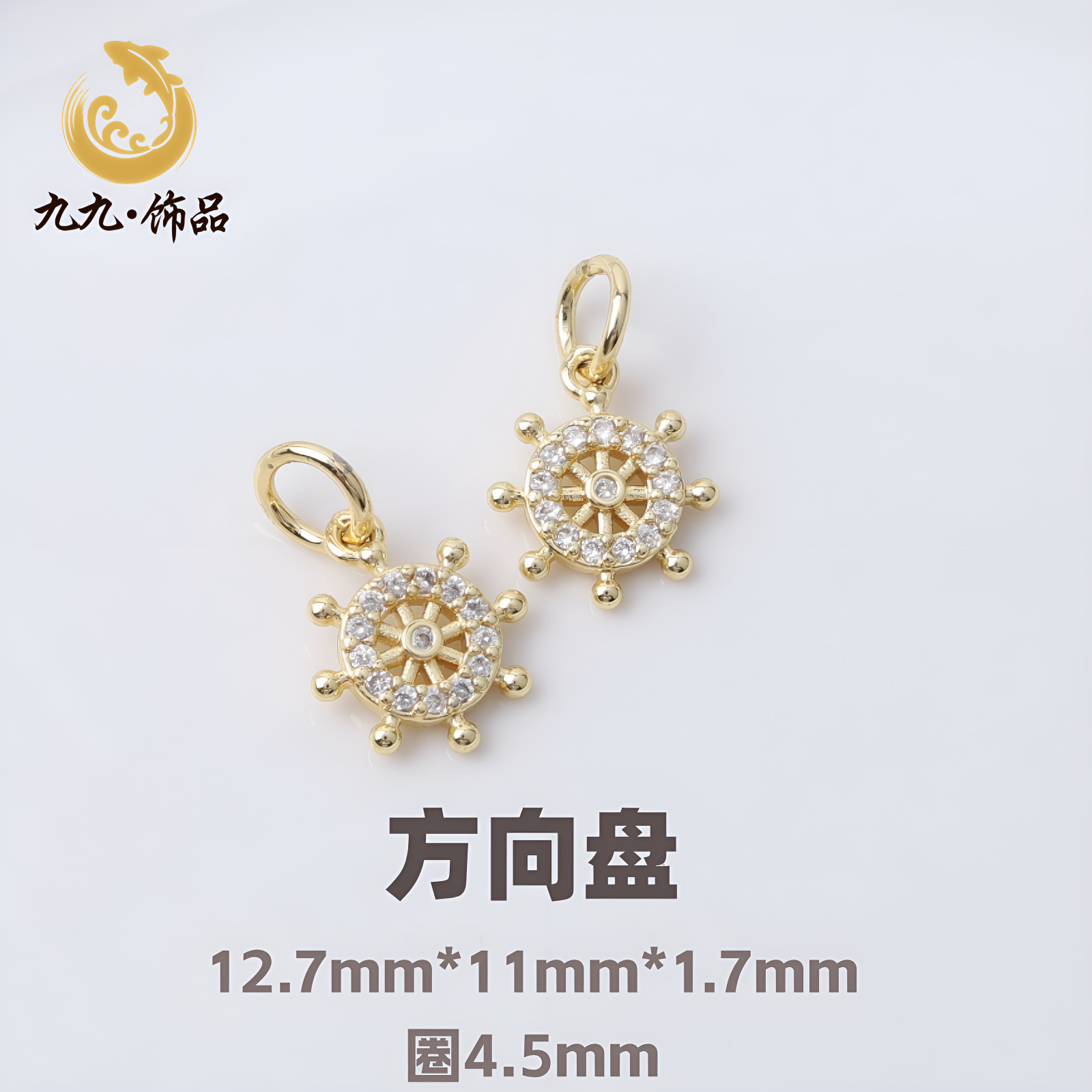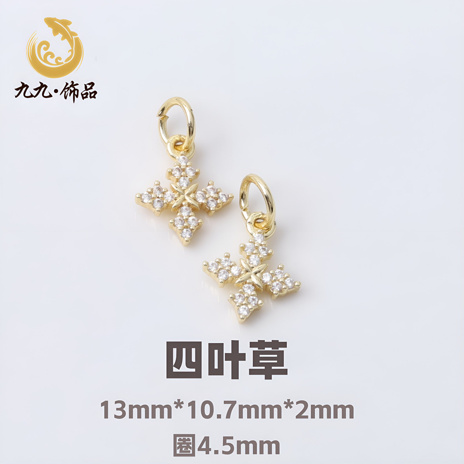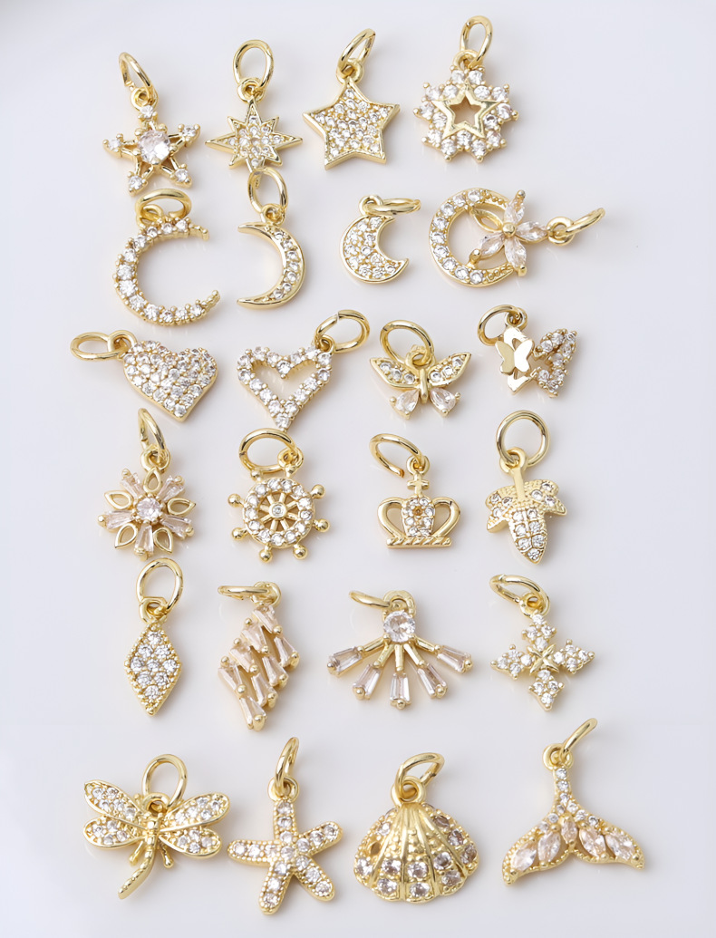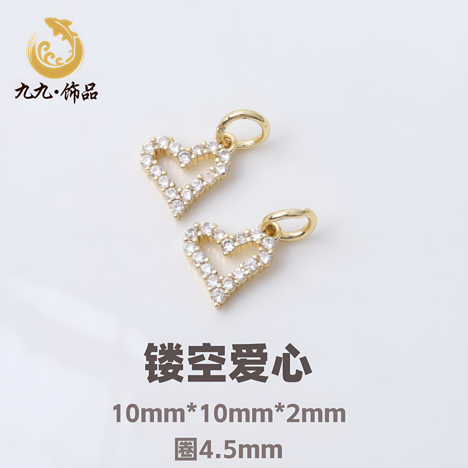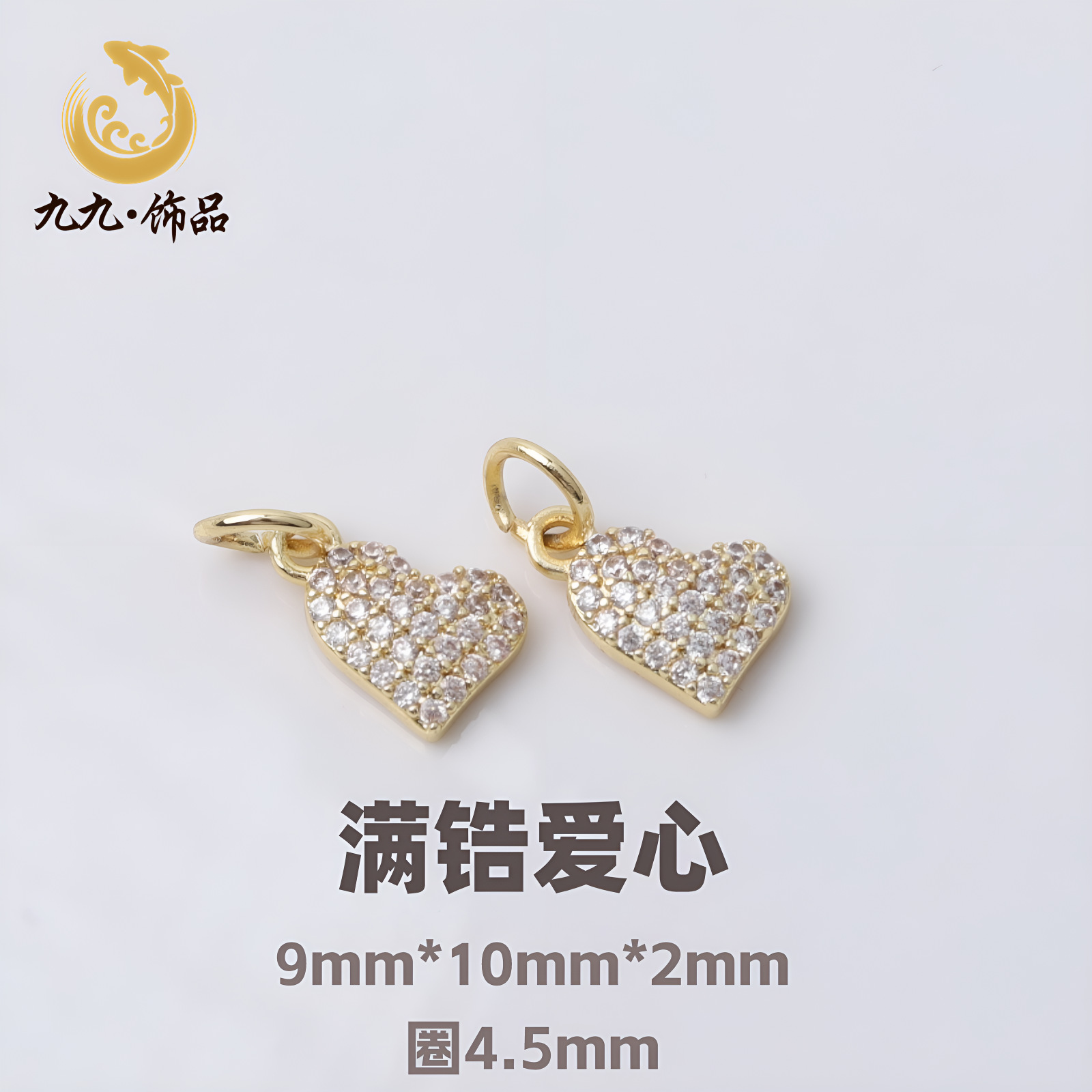 18K包金镶白色锆石爱心五角星月亮鱼尾小吊坠手工diy项链手链材料