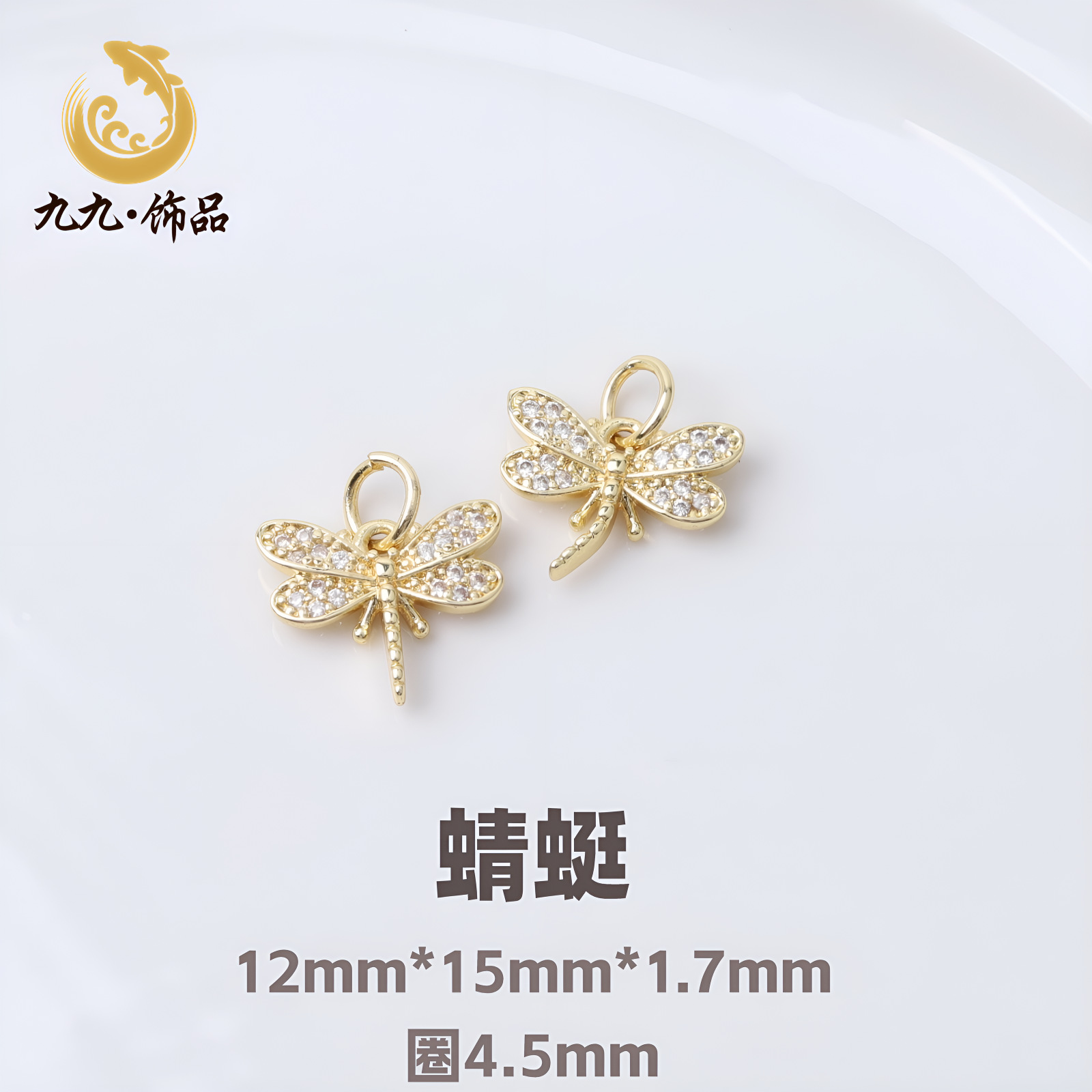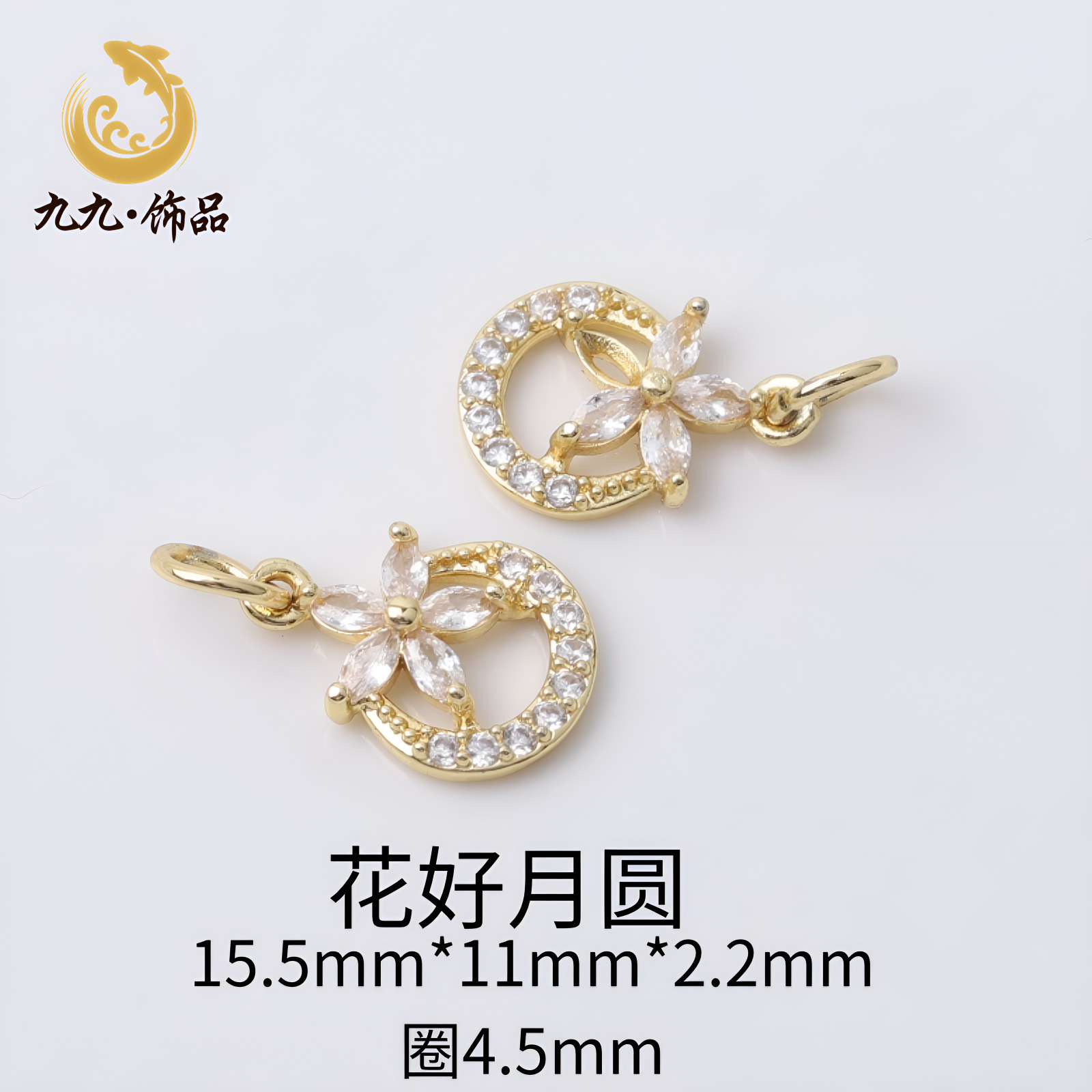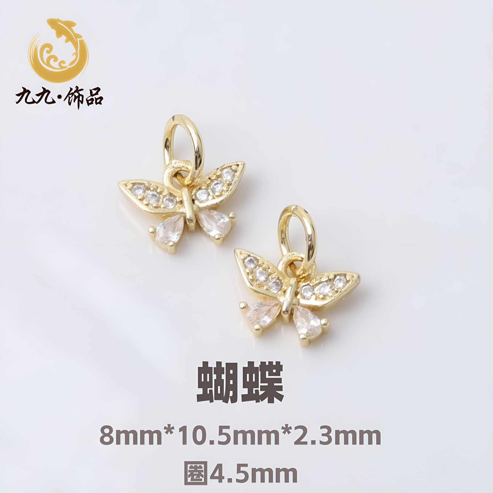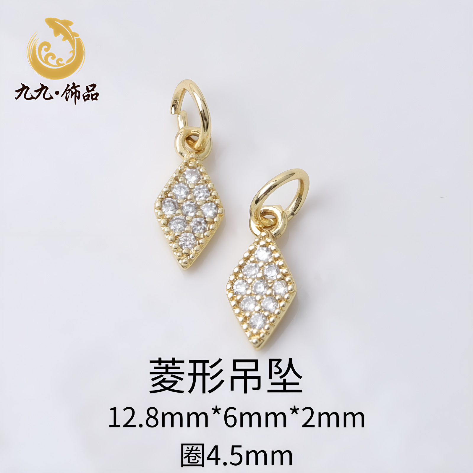 18K包金镶白色锆石爱心五角星月亮鱼尾小吊坠手工diy项链手链材料