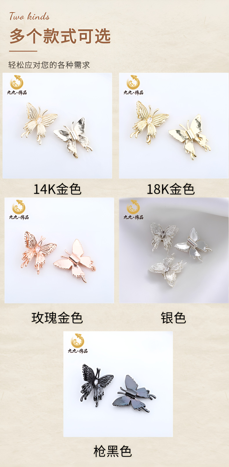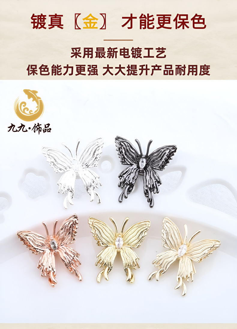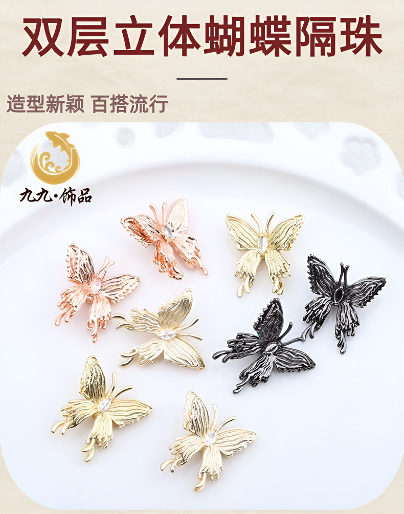 18K挂件蝴蝶配件立体蝴蝶电镀隔珠项链手链diy手工饰品配饰材料