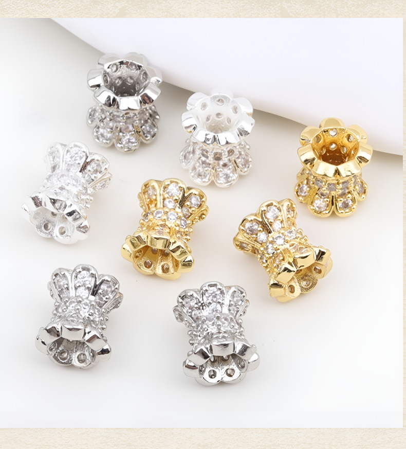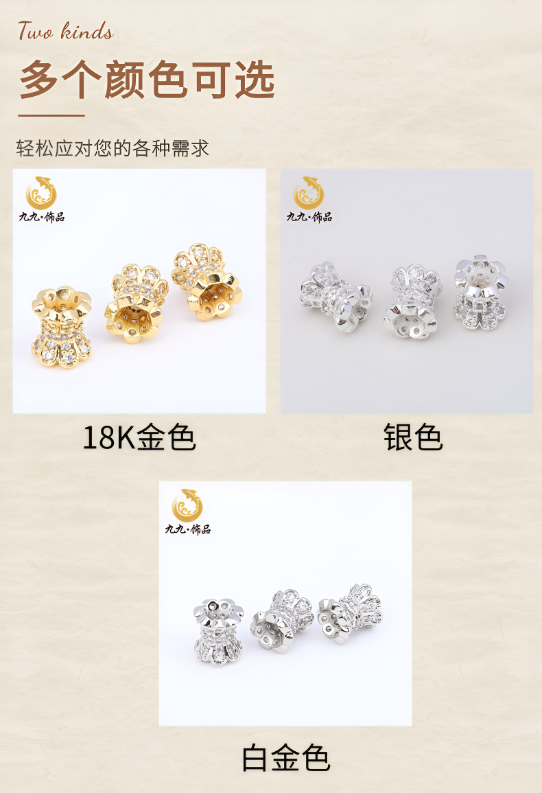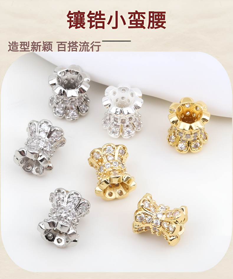 14K包金微镶锆石小蛮腰隔珠手工diy手链双面花托材料白金色喇叭珠