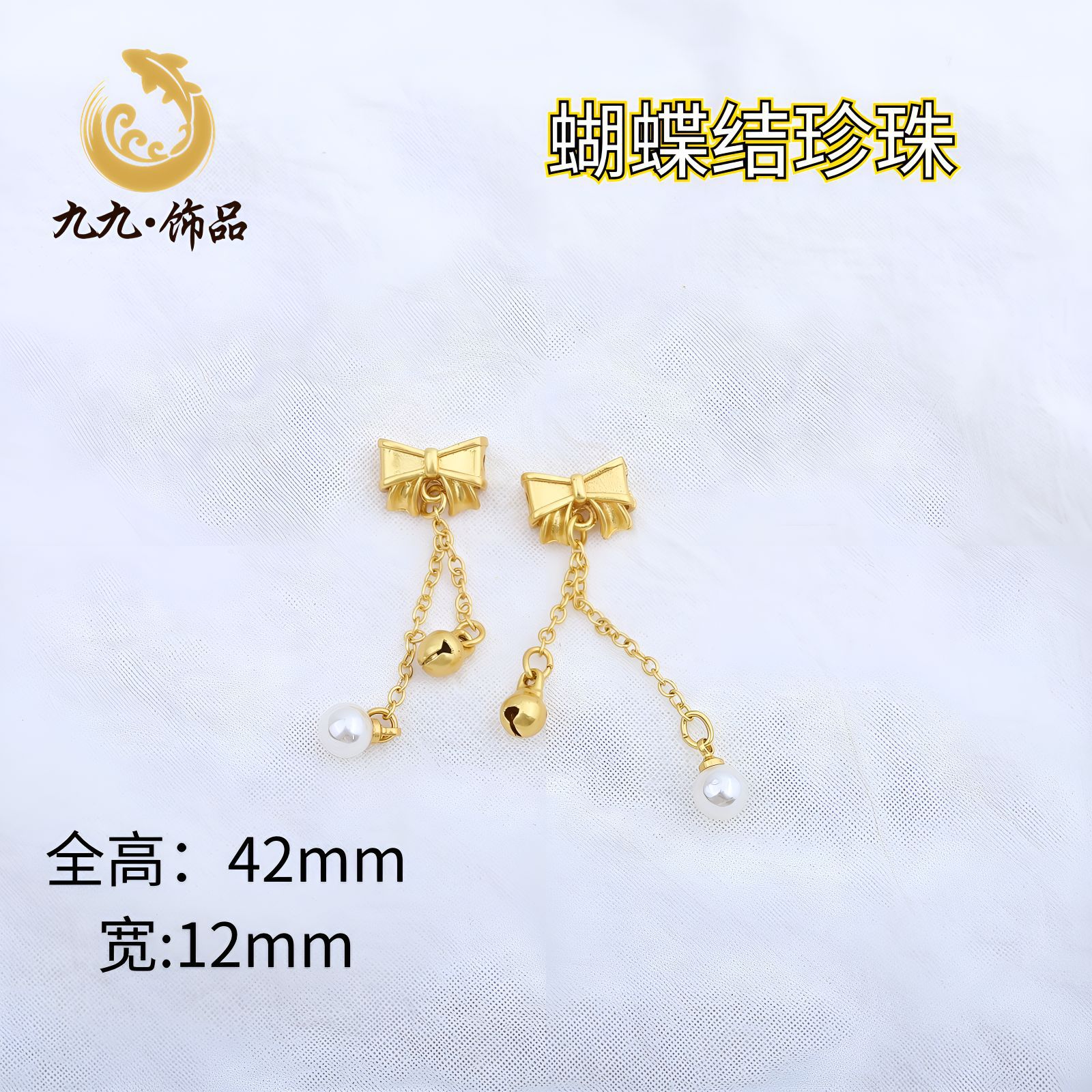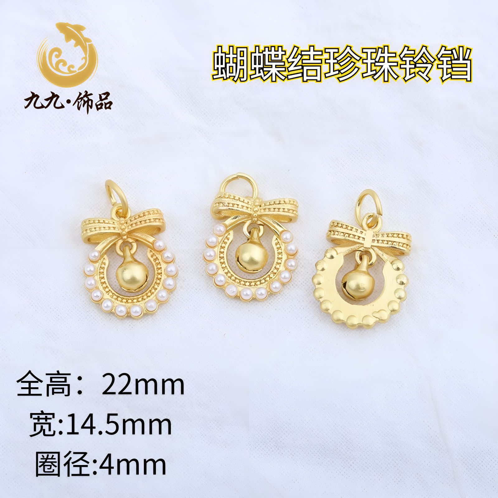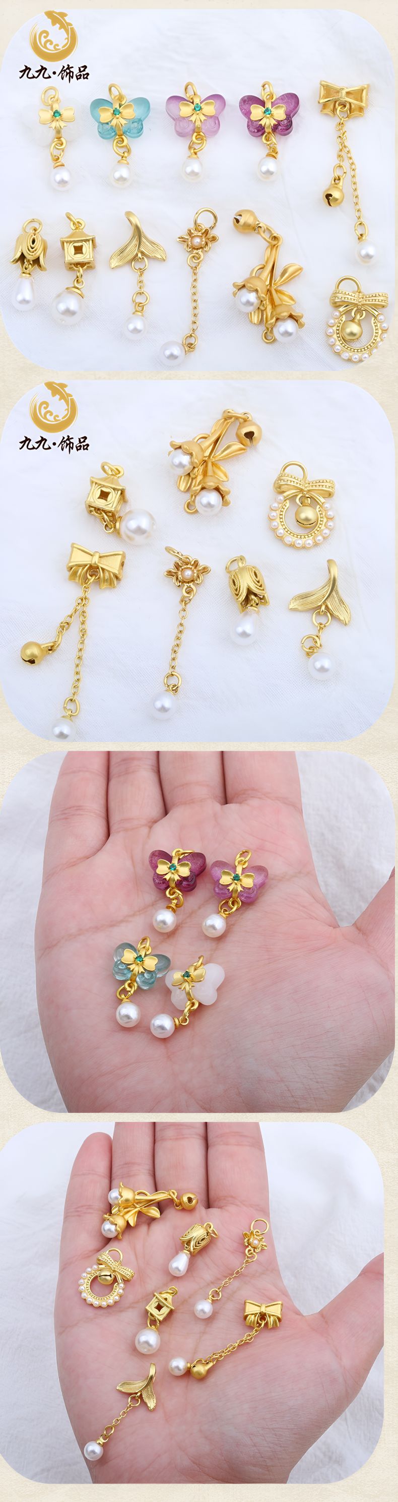 古法金保色diy配饰古风镶仿珍珠蝴蝶结鱼尾铃铛挂件手链耳坠配件