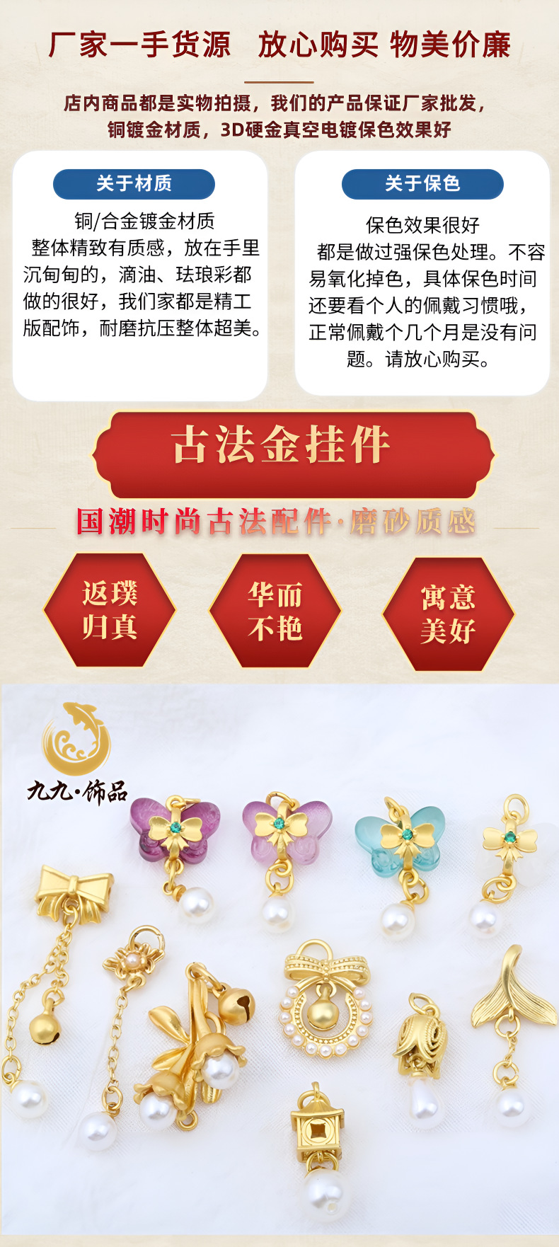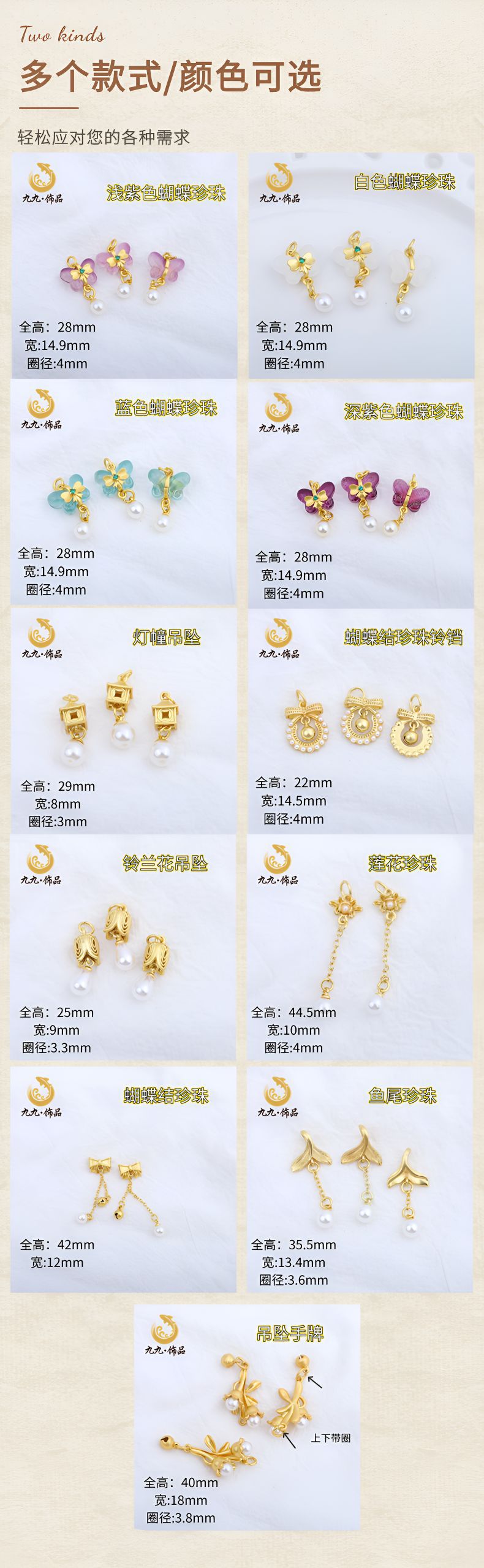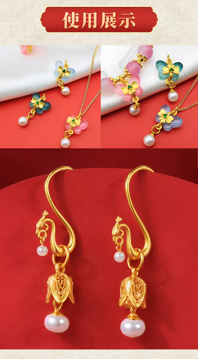 古法金保色diy配饰古风镶仿珍珠蝴蝶结鱼尾铃铛挂件手链耳坠配件