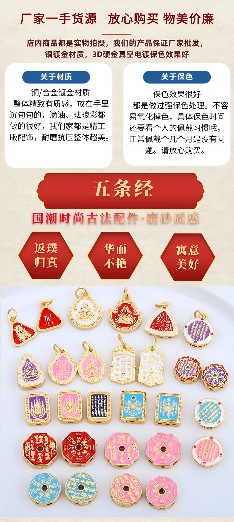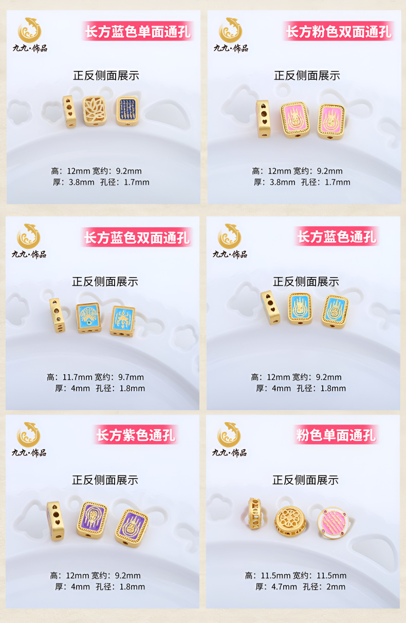 古法沙金烧蓝五条经娜娜通方糖隔珠散珠吊坠diy手链项链热卖配件