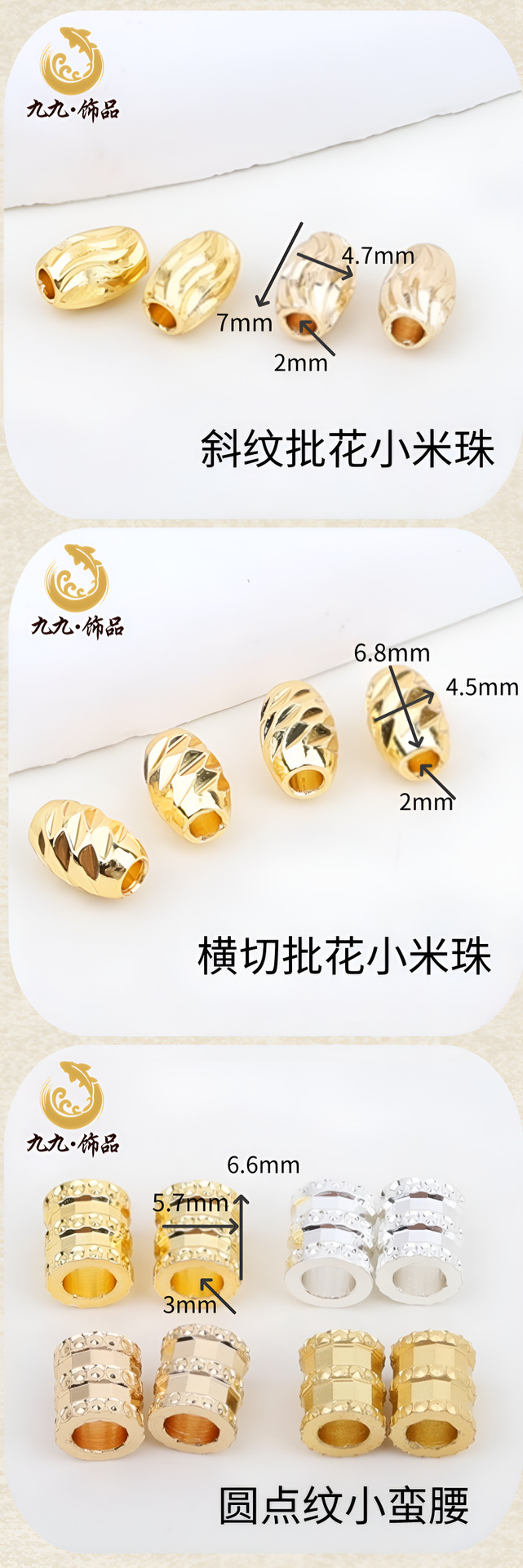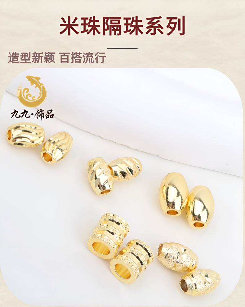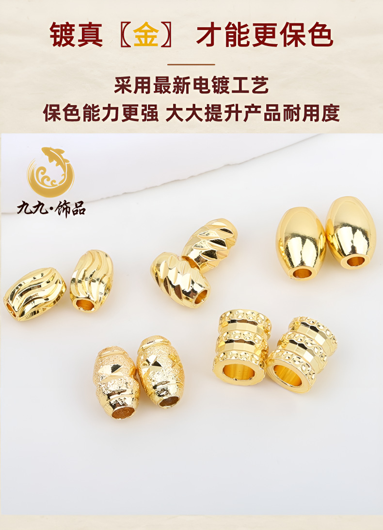 保色18K金珠散珠镀真金批花米珠桶珠手工串珠diy材料首饰品配件