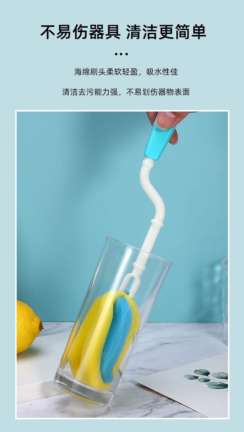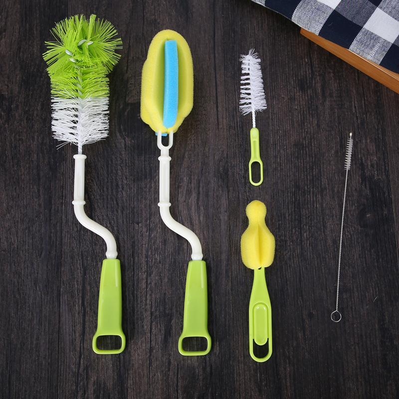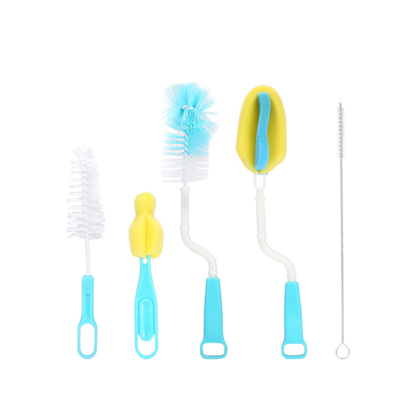 奶瓶刷套装5件套 婴儿奶嘴刷洗奶瓶刷子 海绵360度旋转毛刷