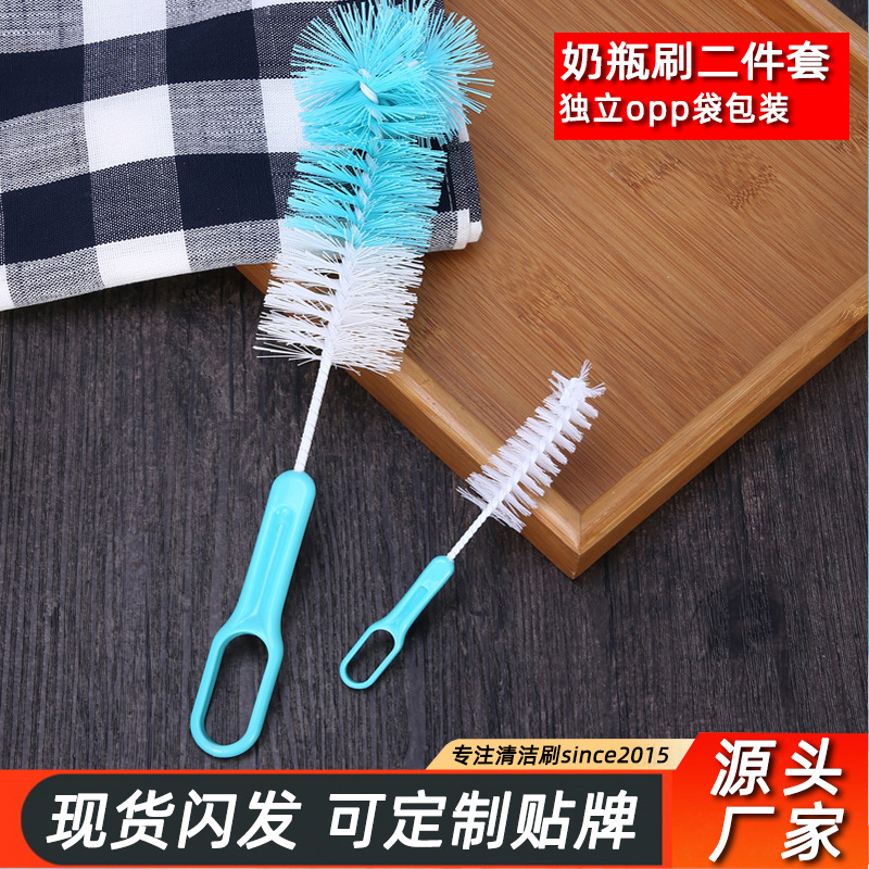 婴儿奶瓶刷套装 360度保温杯奶瓶清洁毛刷奶嘴刷二件套洗杯刷厂家