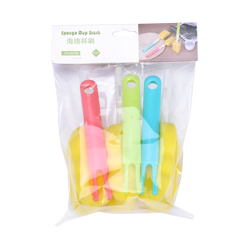 热销可拆卸奶瓶刷3只装厨房长柄洗杯刷海绵杯刷29cm壶刷厂家现货