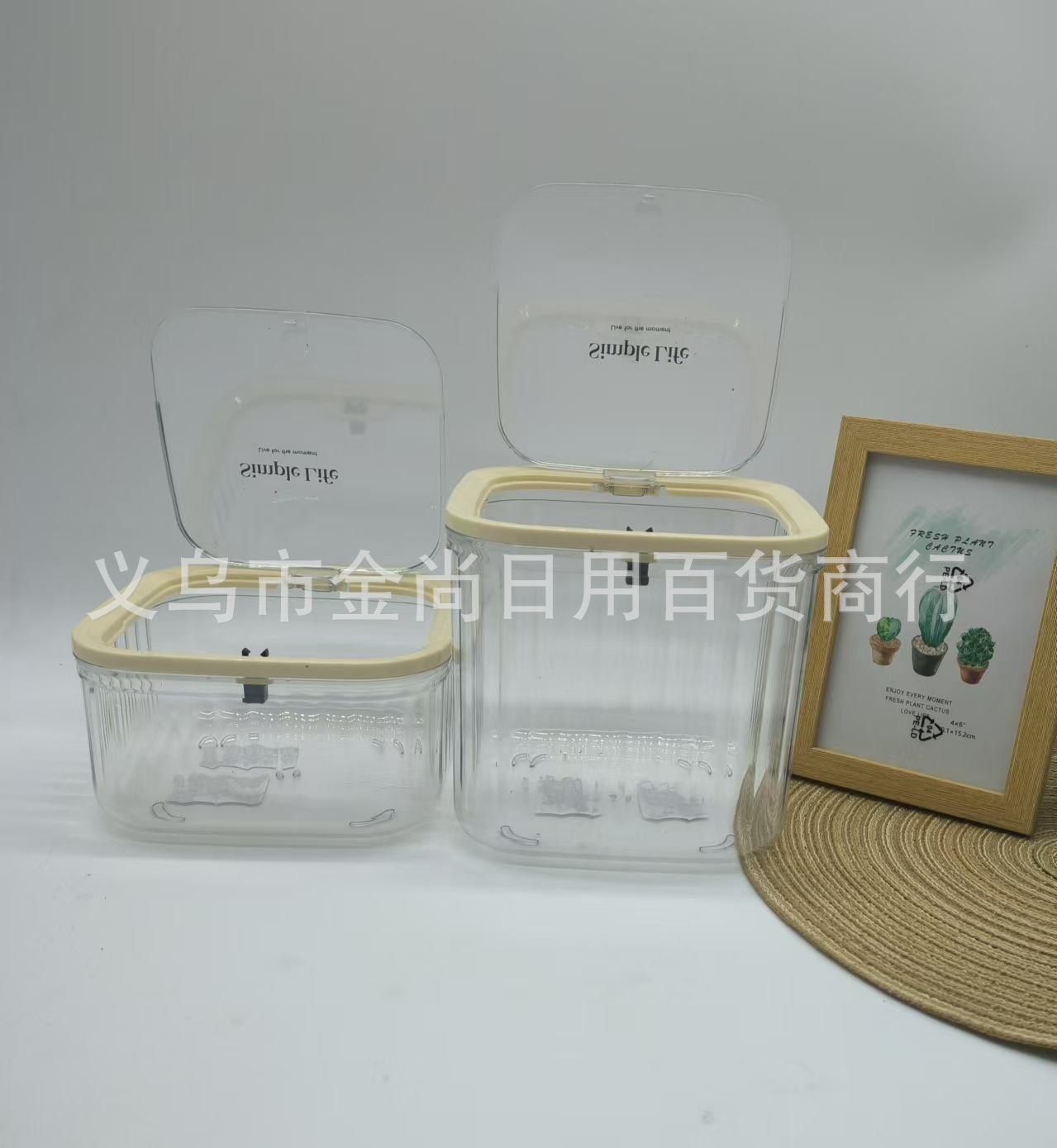 按压式迷你桌面垃圾桶 透明高颜值台面纸篓 家用卧室床头小垃圾桶
