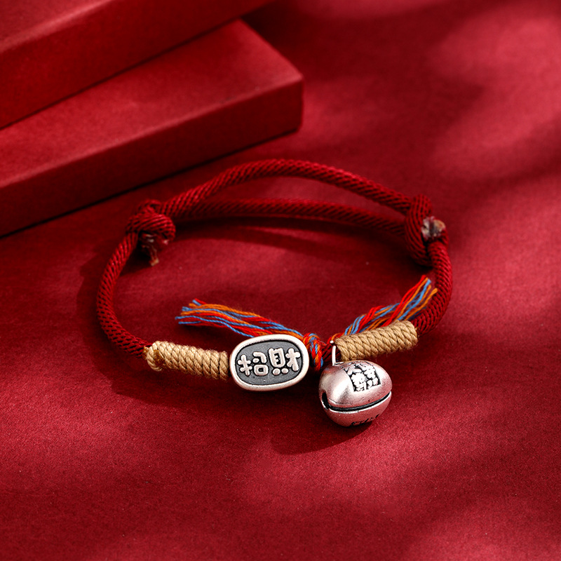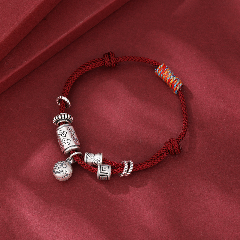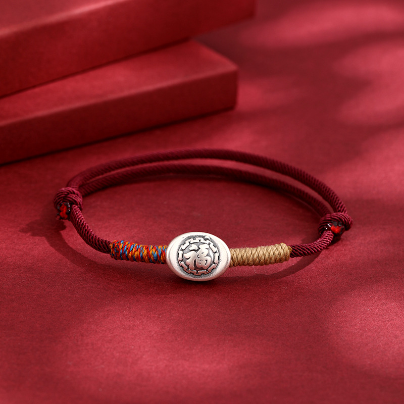 2025年新款999足银纳福生肖蛇手绳本命年蛇年手工编织红绳手链女