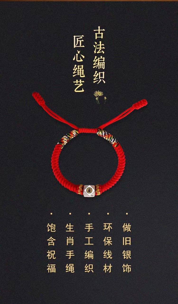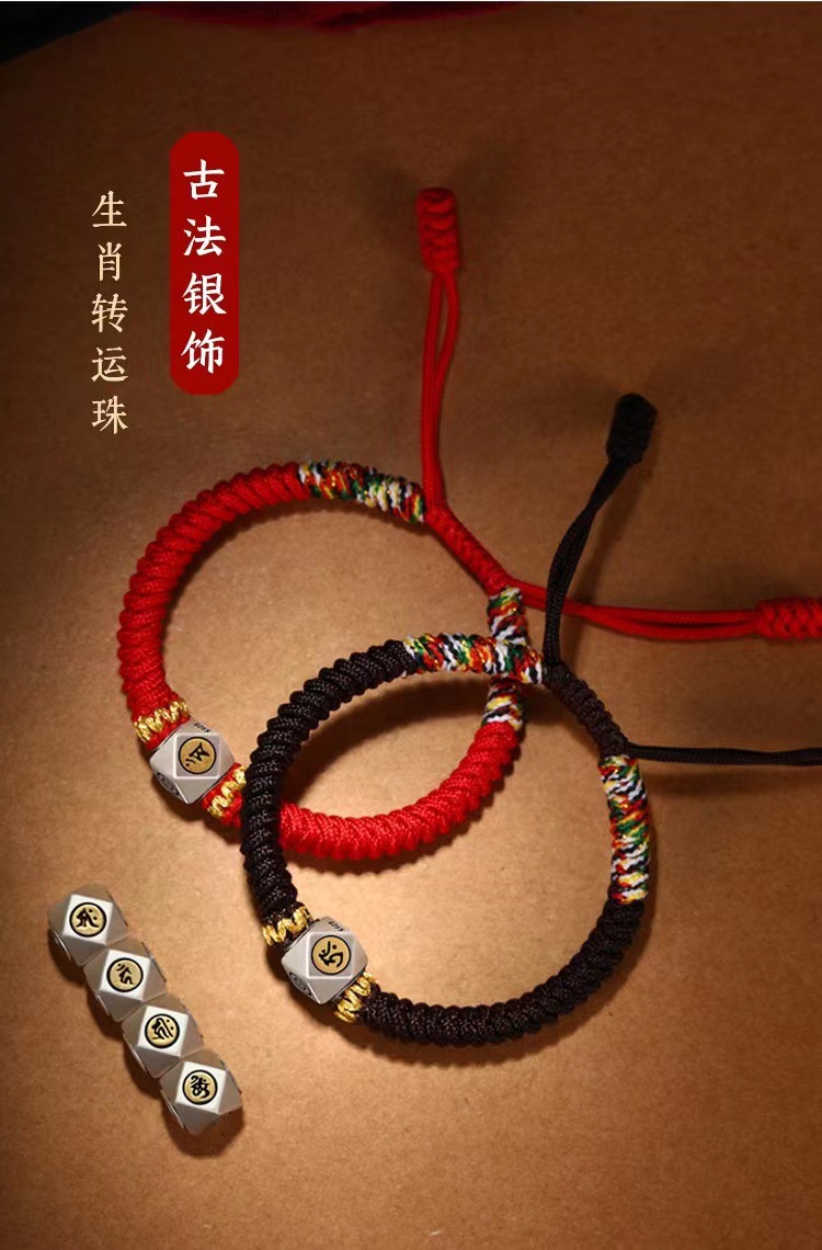 金刚结本命佛十二生肖手链银手绳男女好运珠本命年红绳男女同款