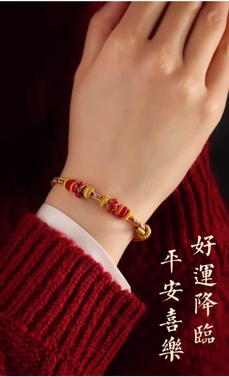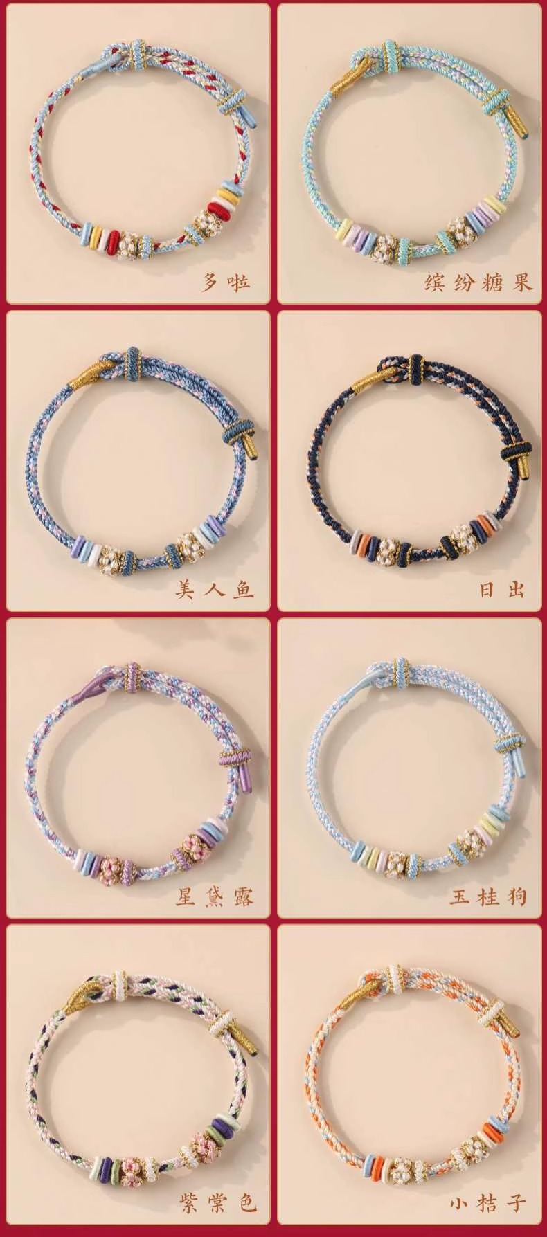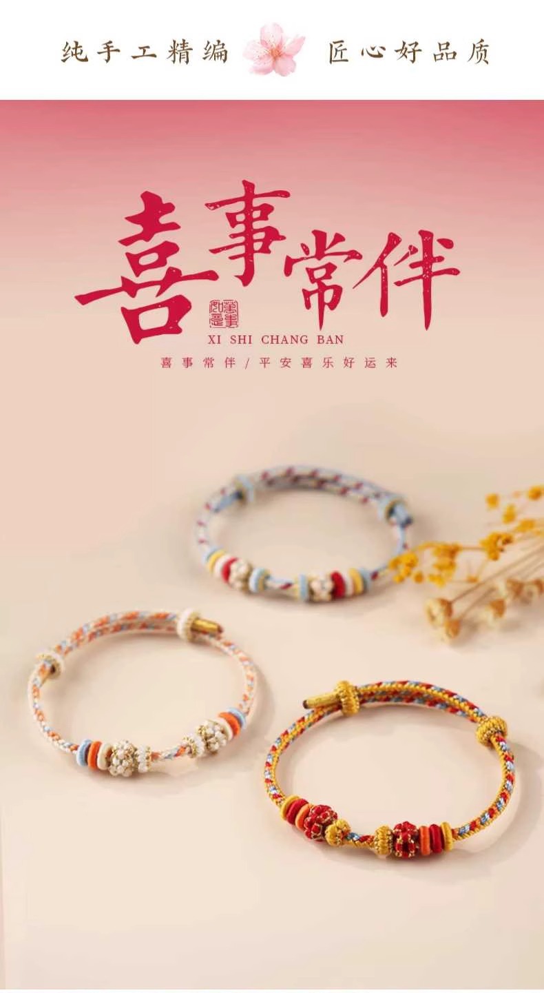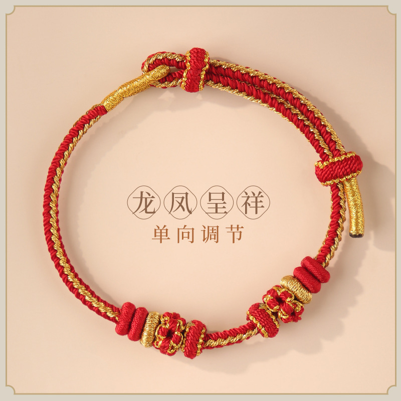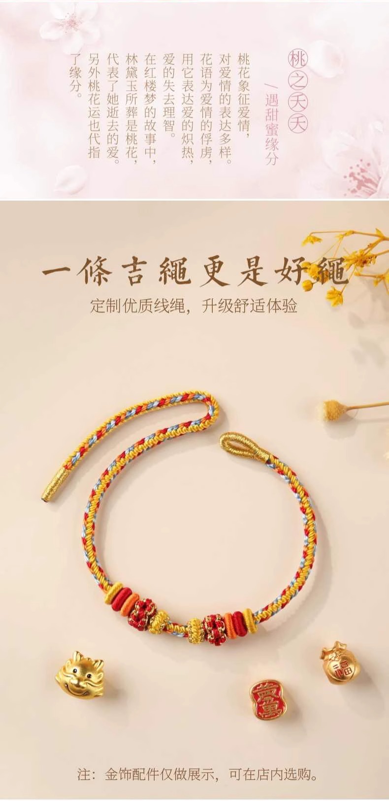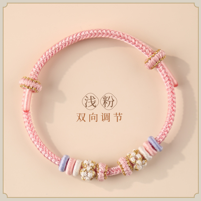 桃花结手绳成品diy可穿纯手工编织手链女款红绳编织礼物