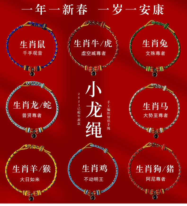批发八大守护神生肖手绳投影楞严咒六字真言diy手编织本命年红绳