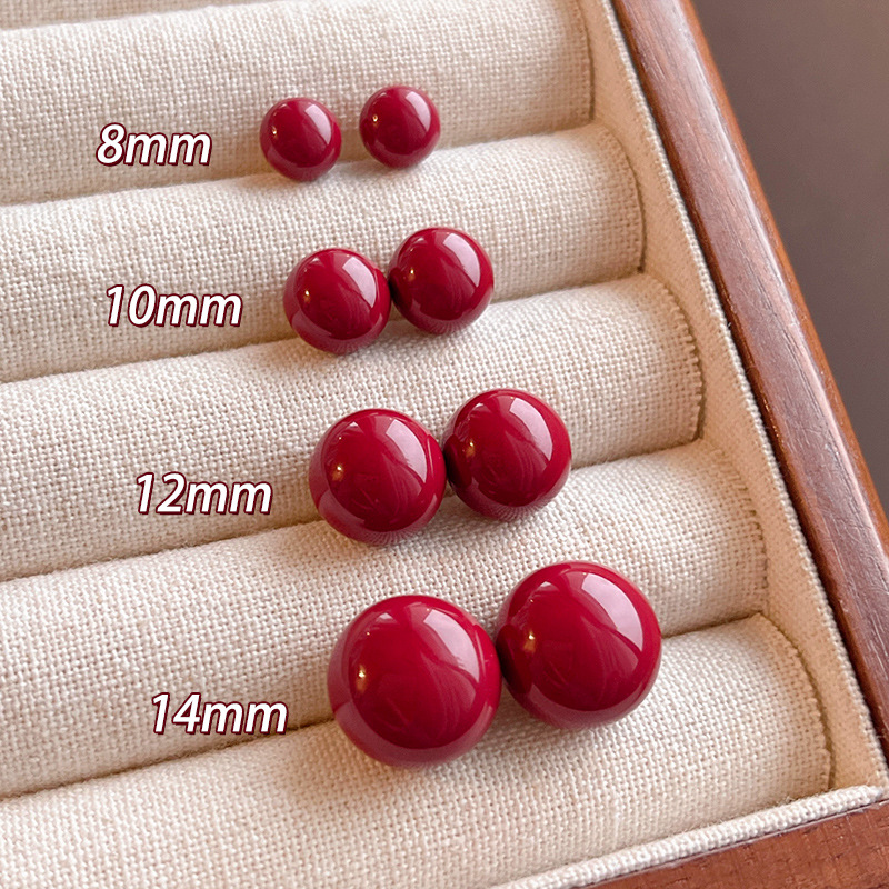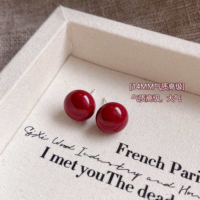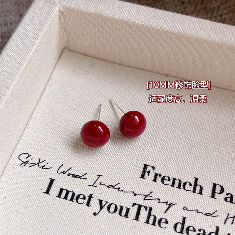 秋冬款安可拉红色馒头珍珠耳钉轻奢小众简约高级感小豆豆耳环耳饰