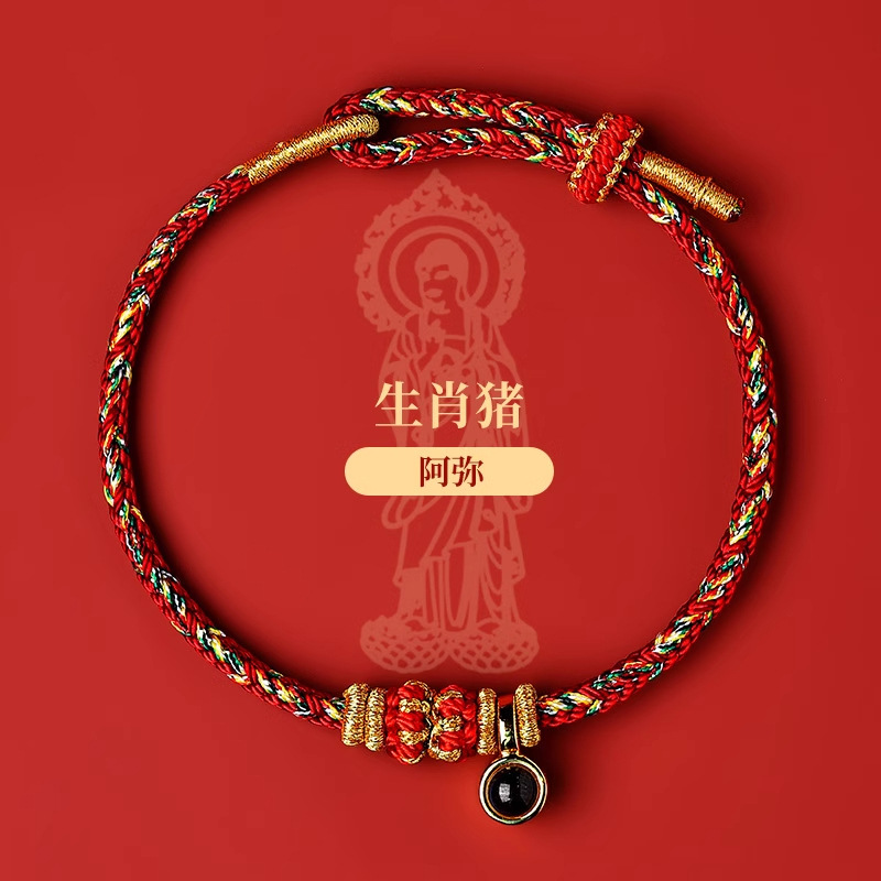 2025年八大守护神手绳手工编织纳米微雕投影石本命年红绳批发蛇年