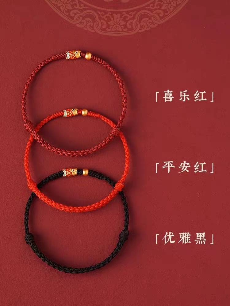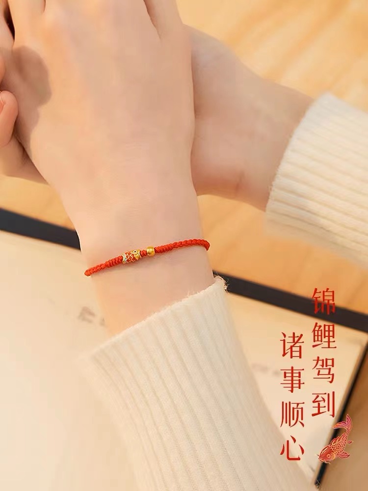 新年锦鲤手绳女红绳本命年上岸好运手串手工编织脚链情侣款手链男