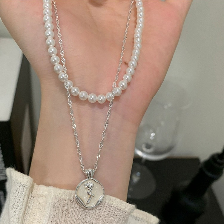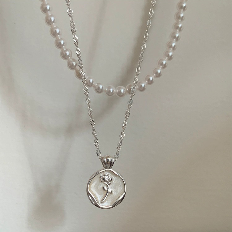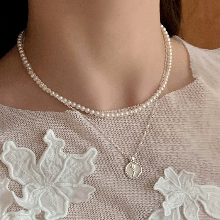 法式轻奢温柔小众设计感郁金香珍珠项链女纯银百搭毛衣链叠戴气质