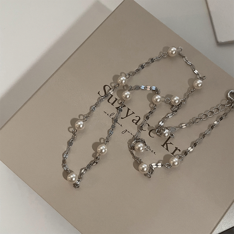 韩版轻奢风小众毛衣链满天星纯银ins珍珠项链女设计感时尚锁骨链
