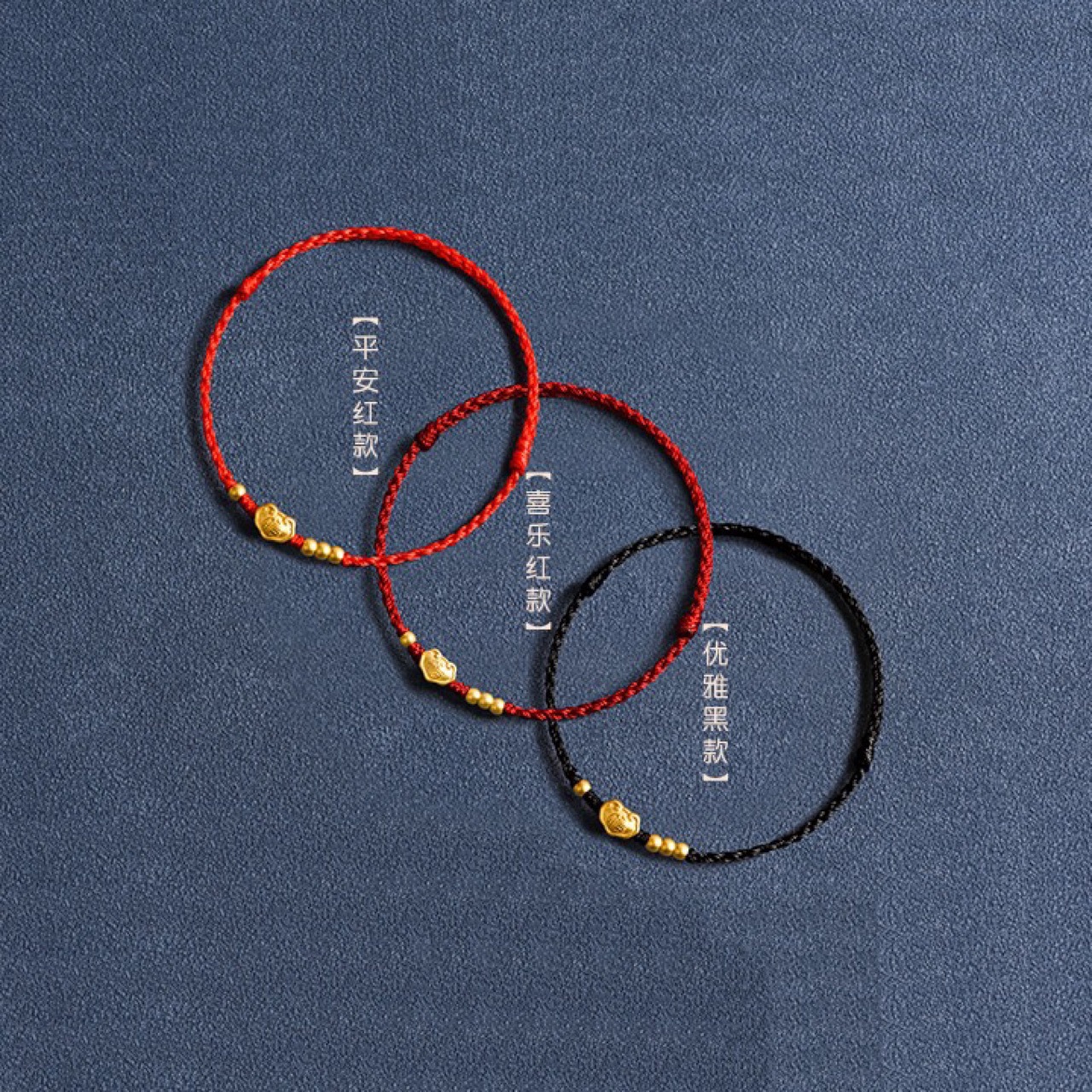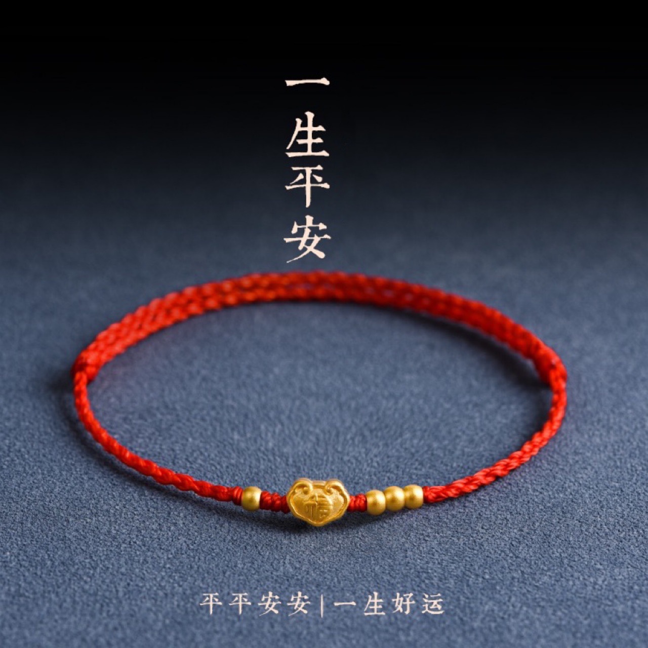 如意平安锁沙金手链红绳转yun编织手绳男女大小可调情侣礼物脚绳