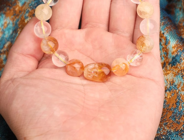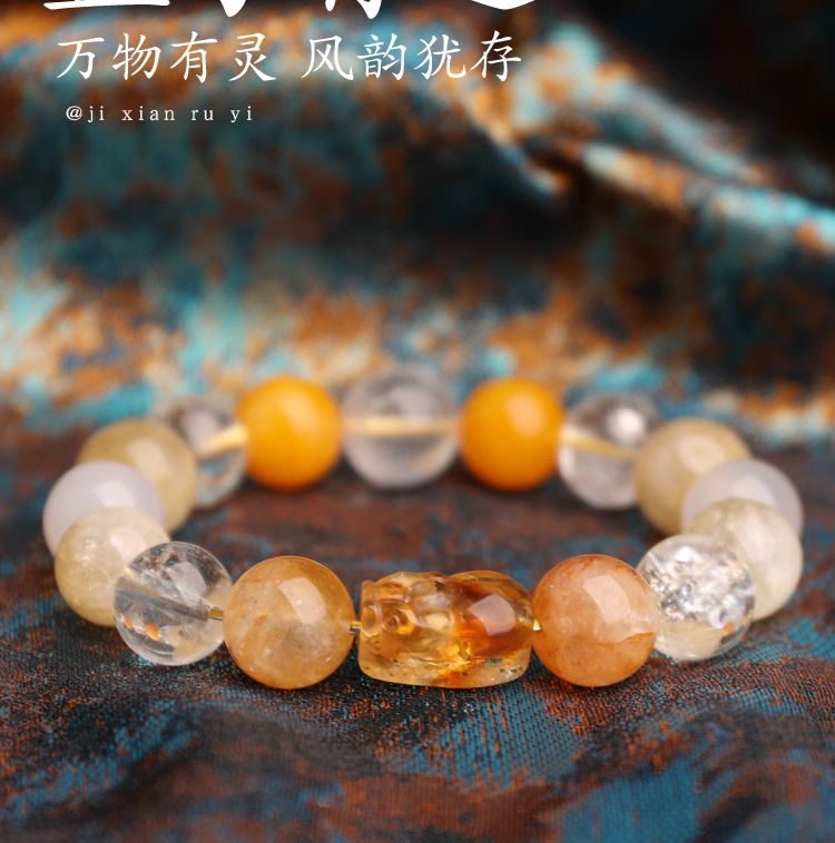 五行喜用缺补土金手链男女款天然水晶石多宝貔貅手串平衡金土饰品