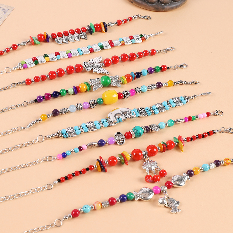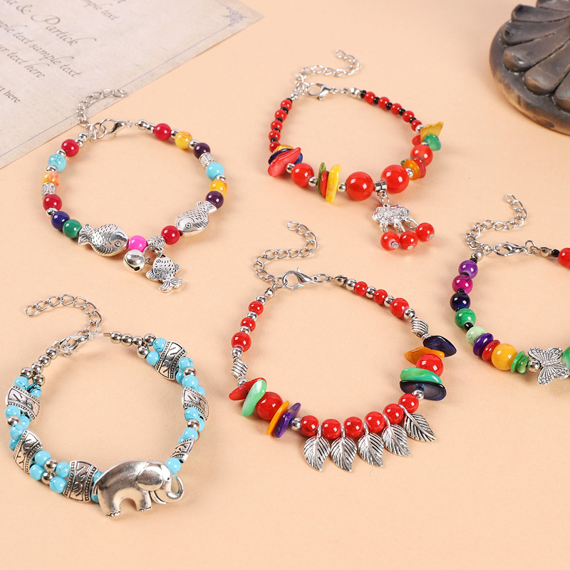 手工编织云南民族风手链女复古波西米亚彩色铃铛藏式手串西藏配饰