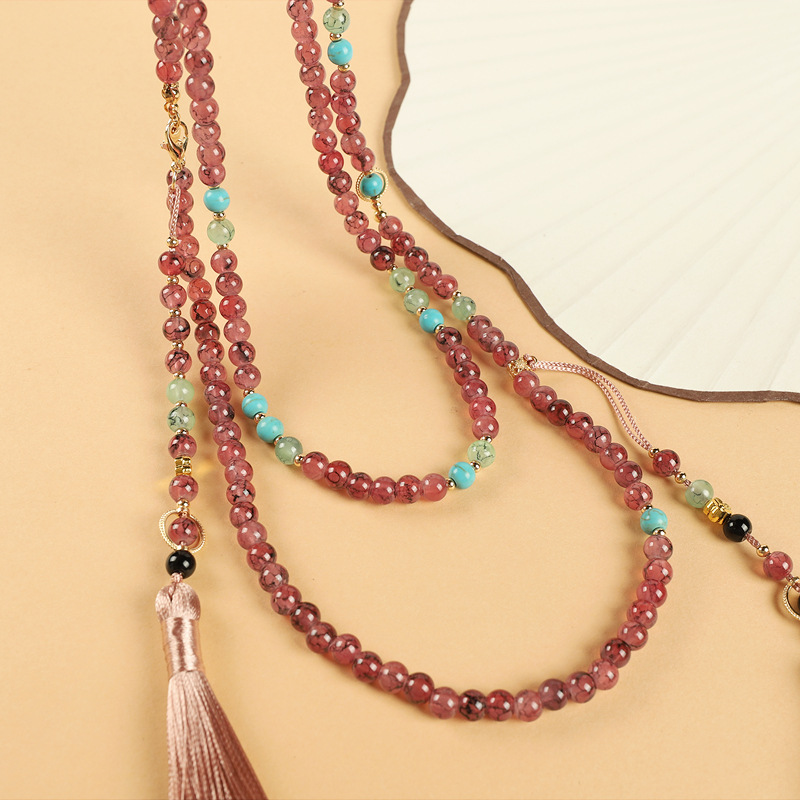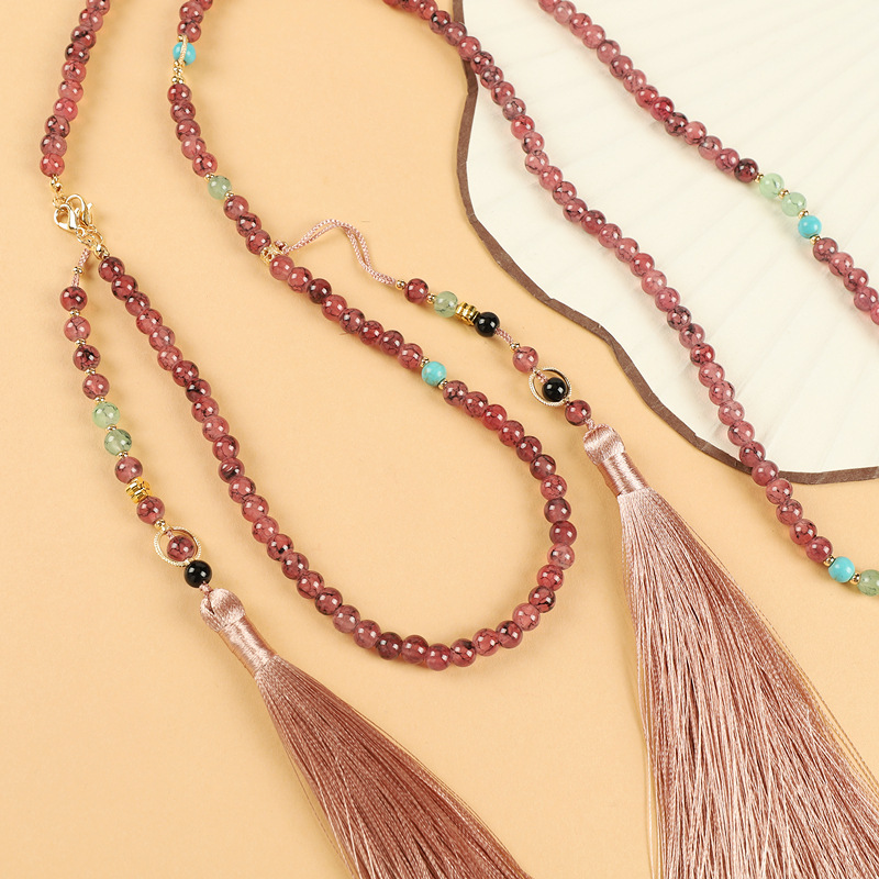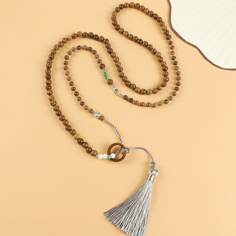 新中式复古串珠斜挎链中国风高级感小众佛珠项链长款流苏旗袍配饰