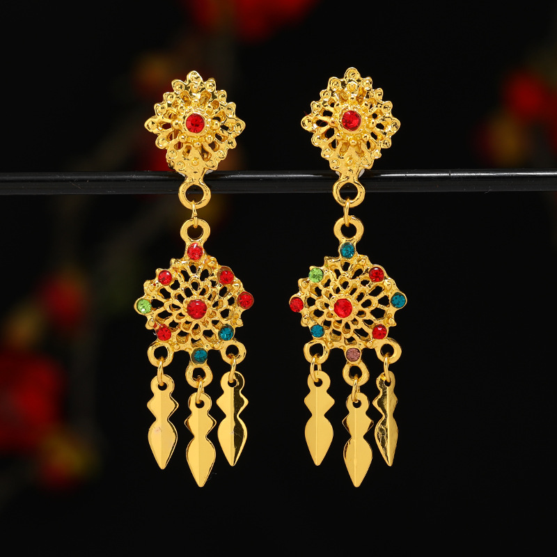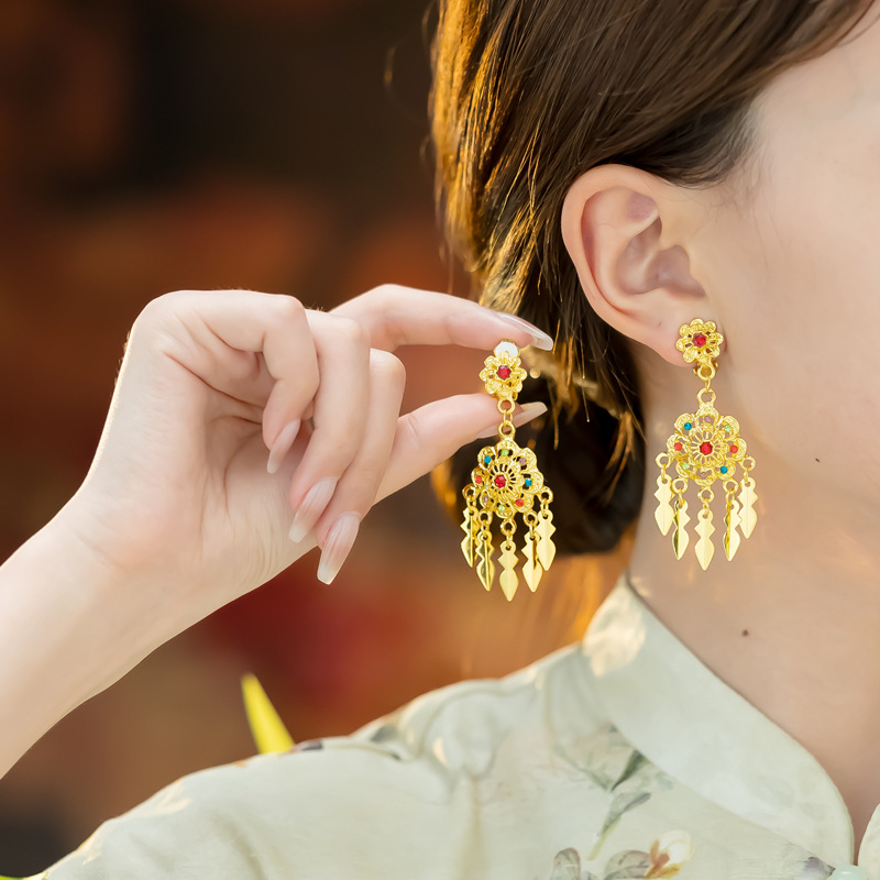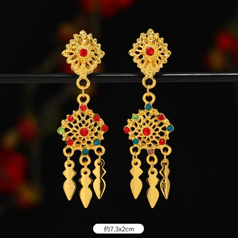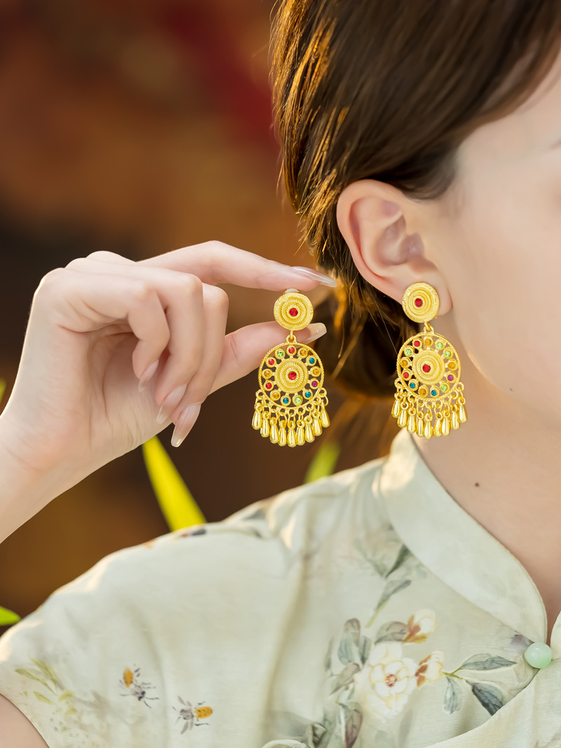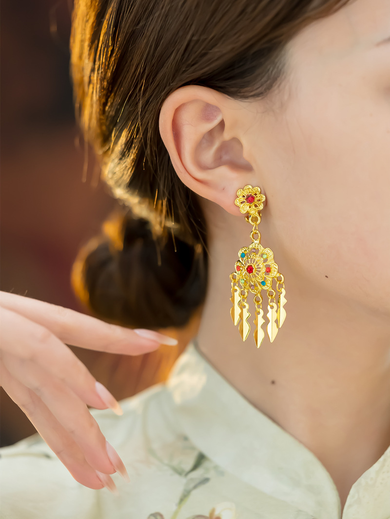 泰式傣族民族风耳钉异域风情复古宫廷流苏耳环西双版纳女耳夹耳饰