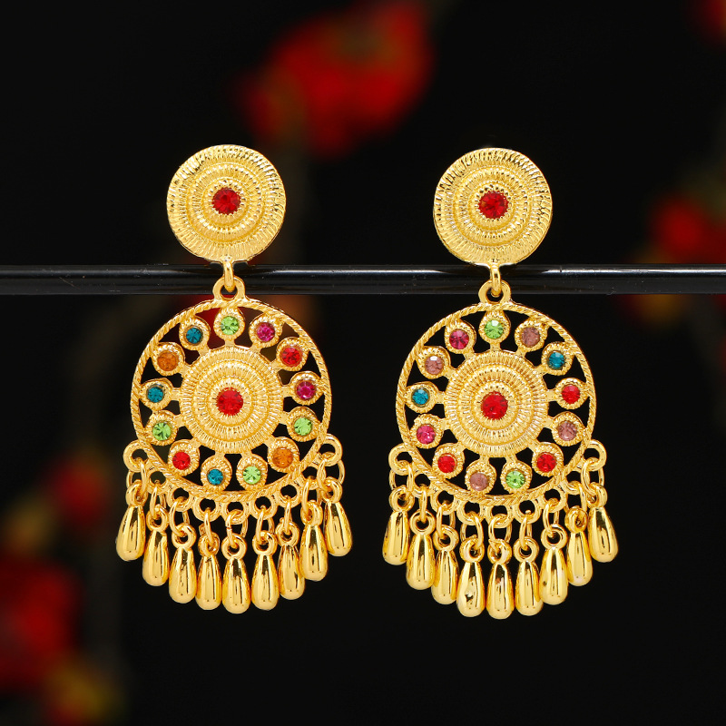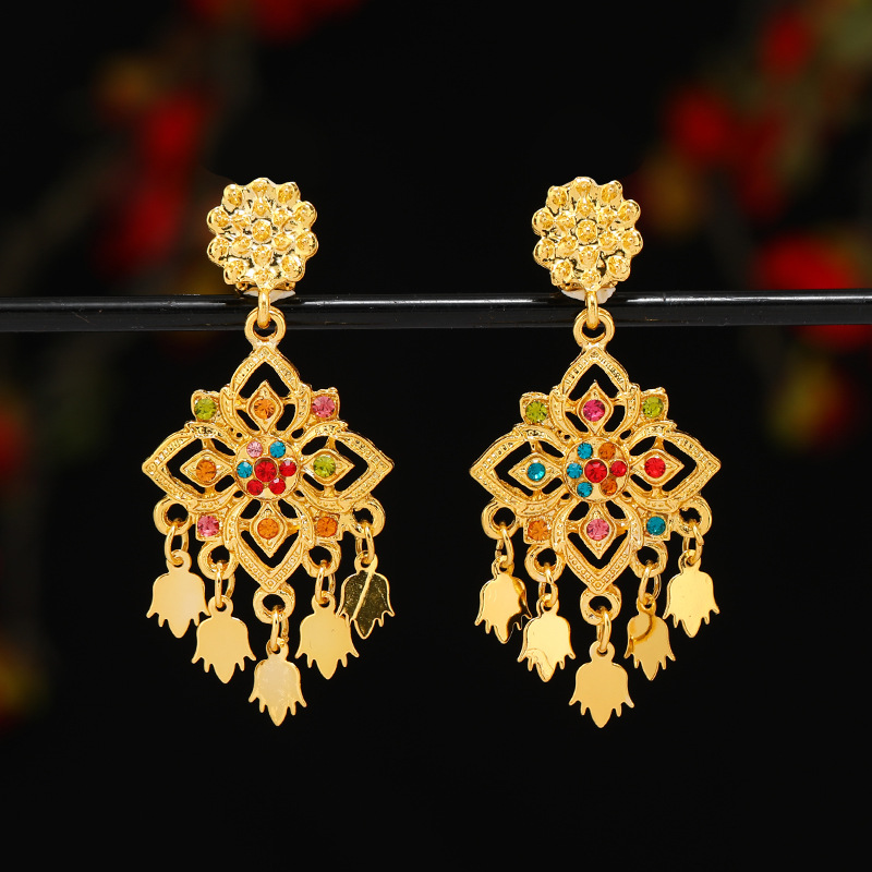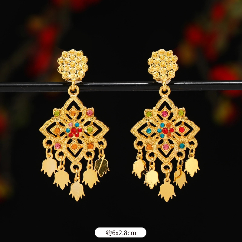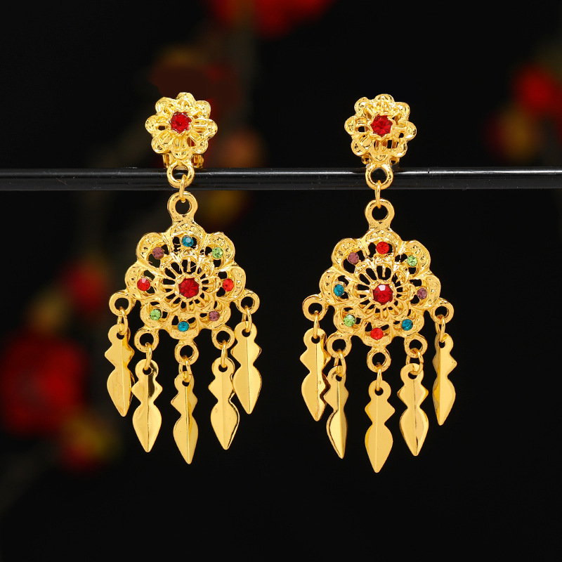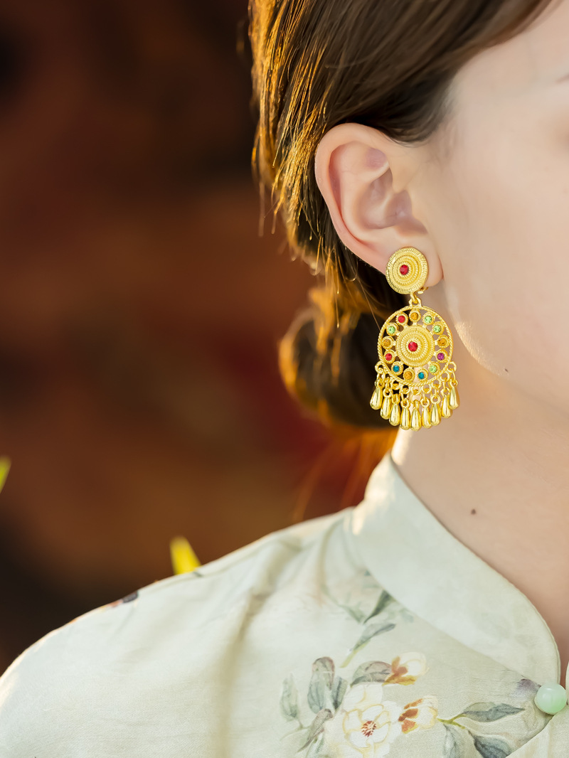 泰式傣族民族风耳钉异域风情复古宫廷流苏耳环西双版纳女耳夹耳饰