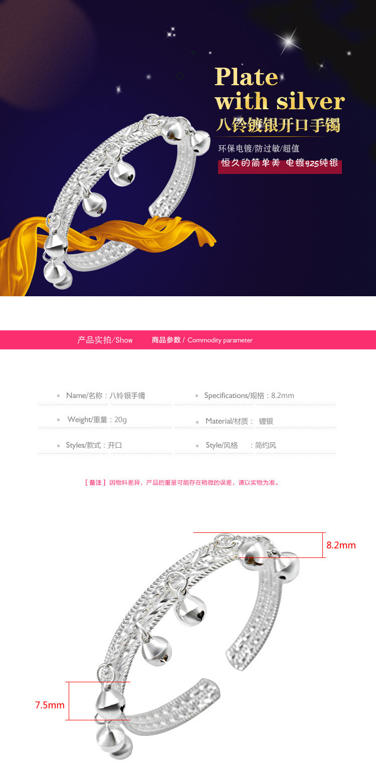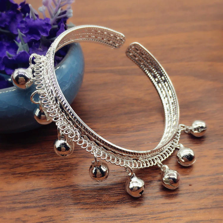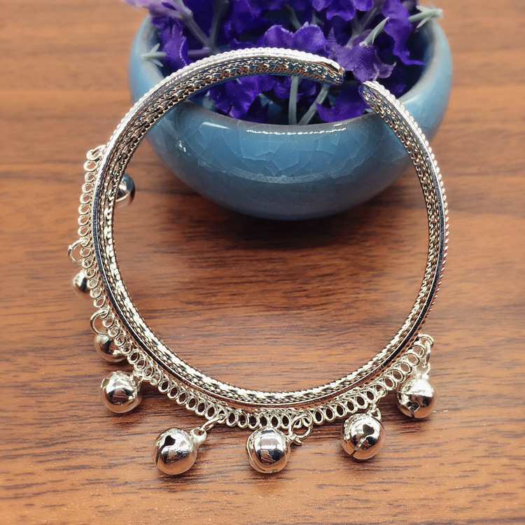 韩版复古银色八铃铛手镯 民族风舞蹈开口镯子百搭饰品女生手环