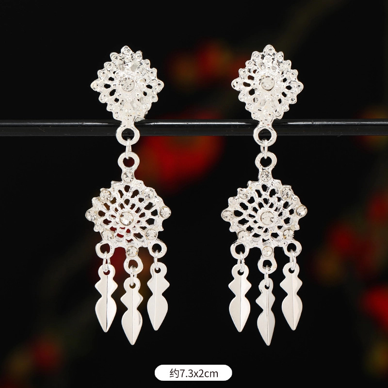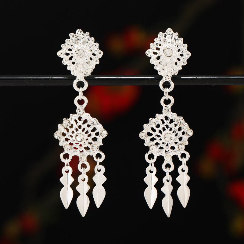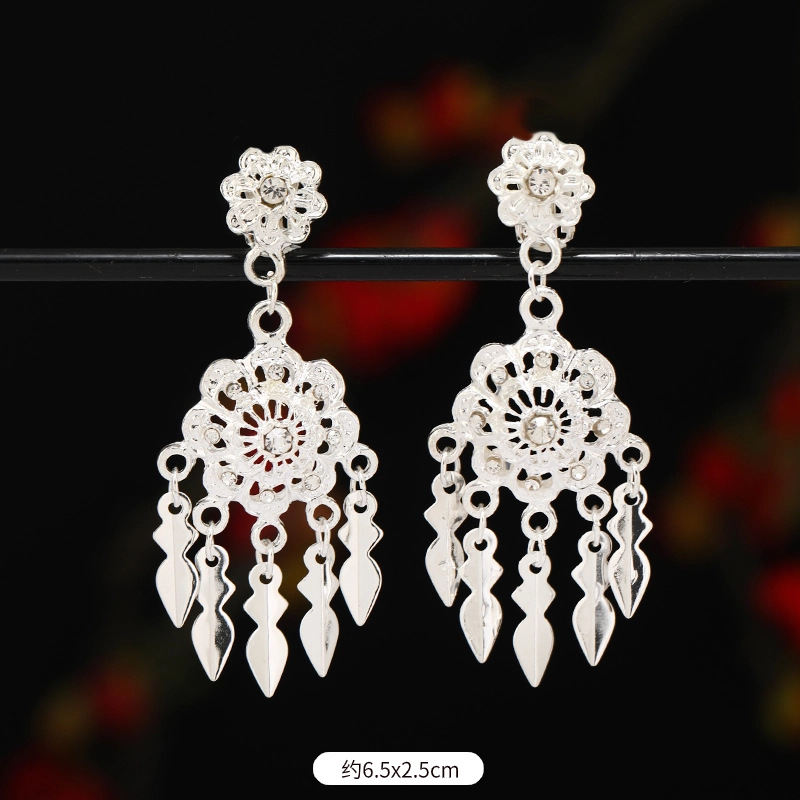 无耳洞耳夹傣族少数民族风耳饰泰国异域风复古流苏耳坠女苗银耳环