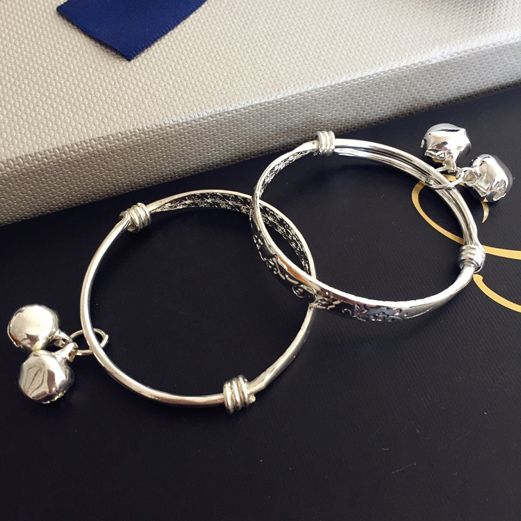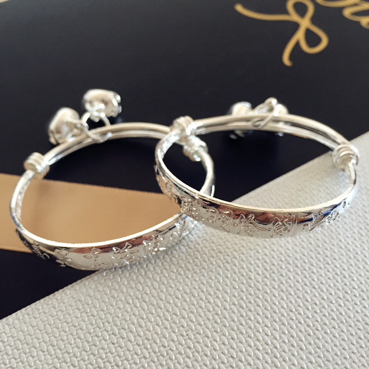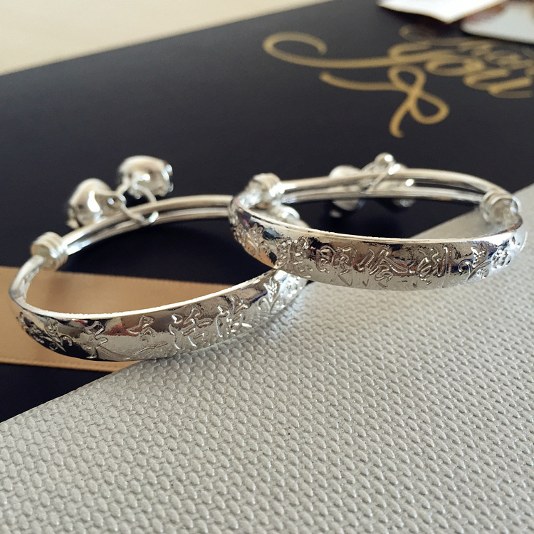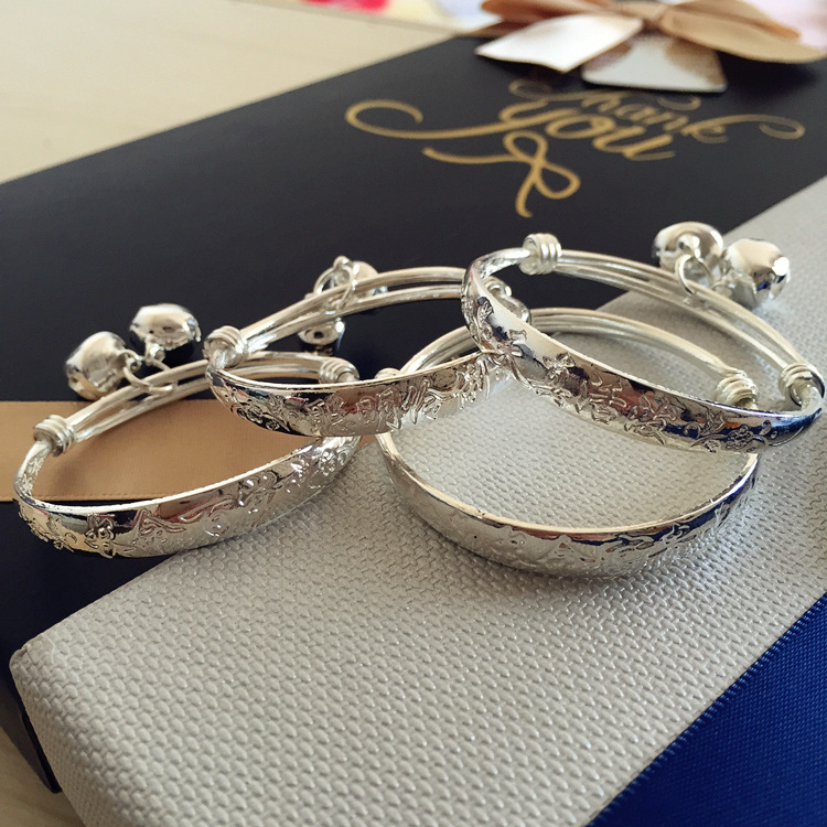 儿童平安手镯男女宝宝银色手镯 满月周岁手环时尚简约镯子配饰品
