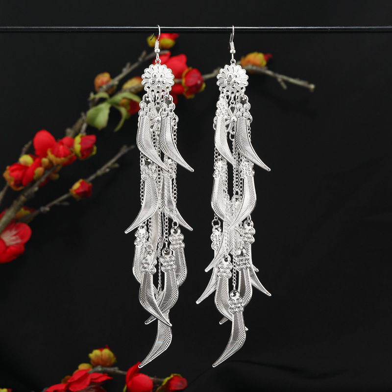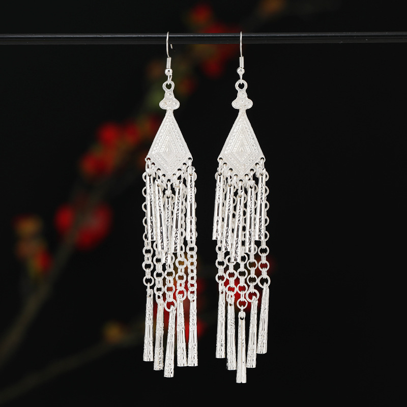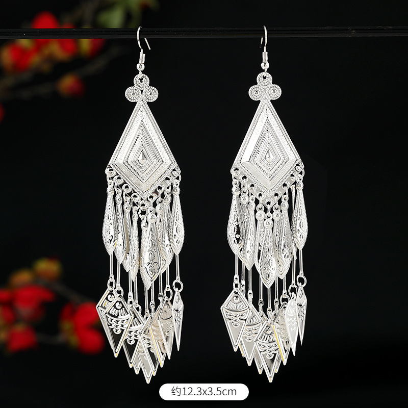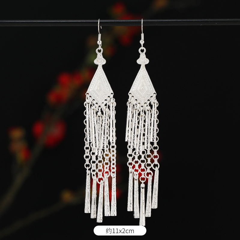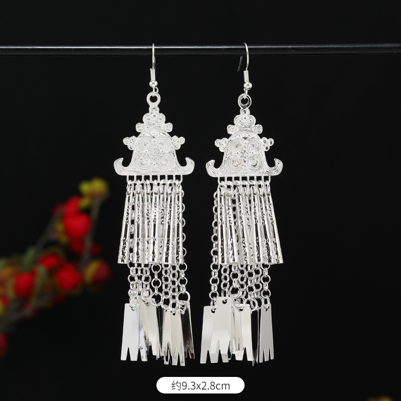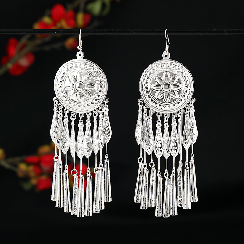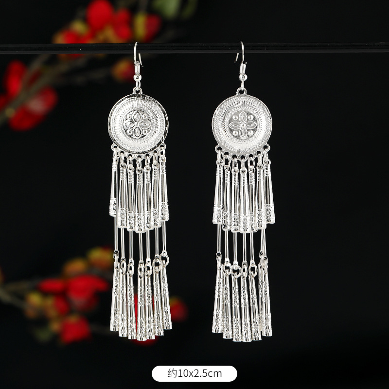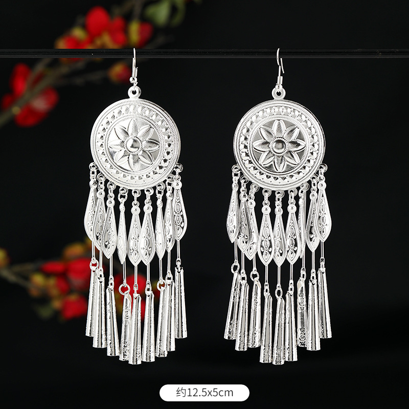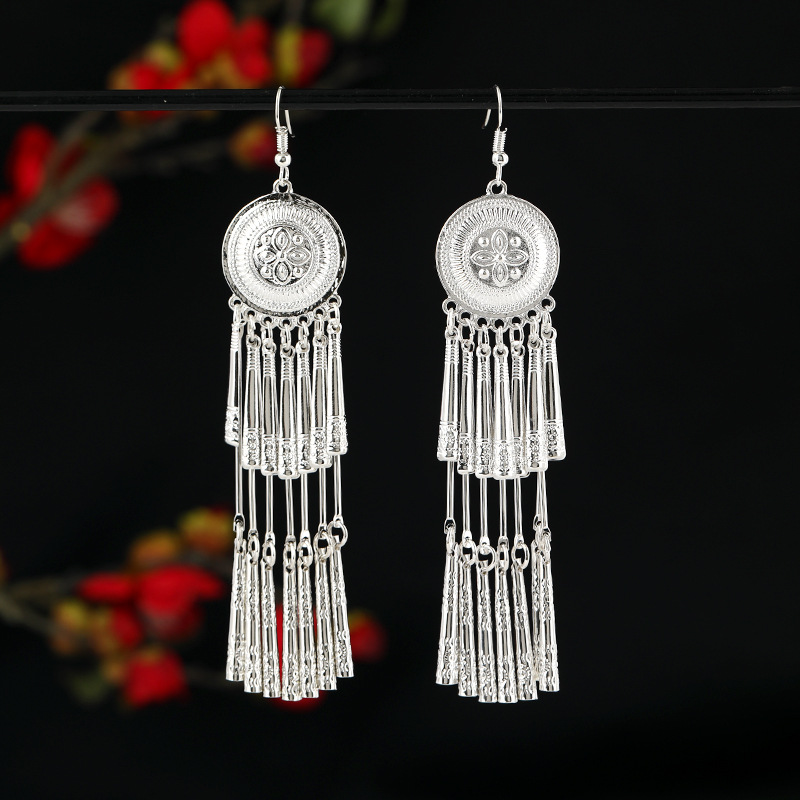少数民族风苗银流苏耳环复古个性云南苗族夸张长款双层耳坠女耳饰