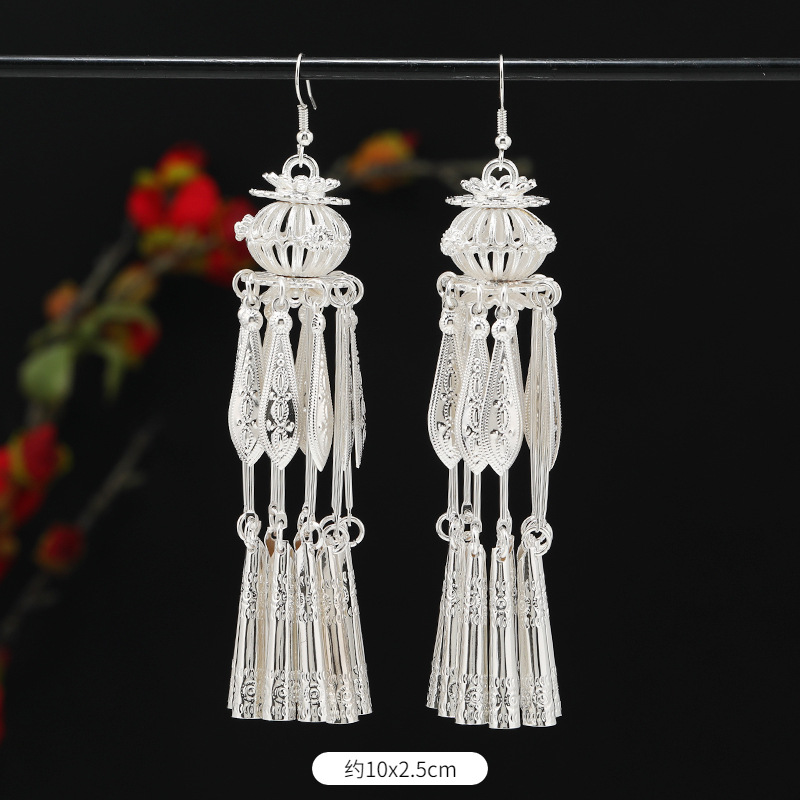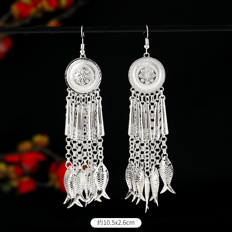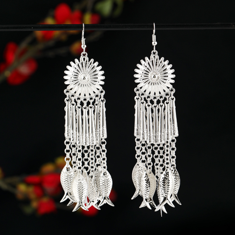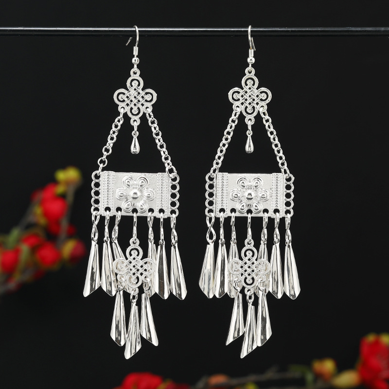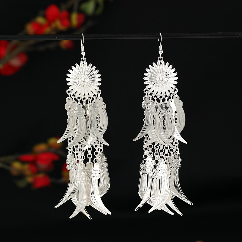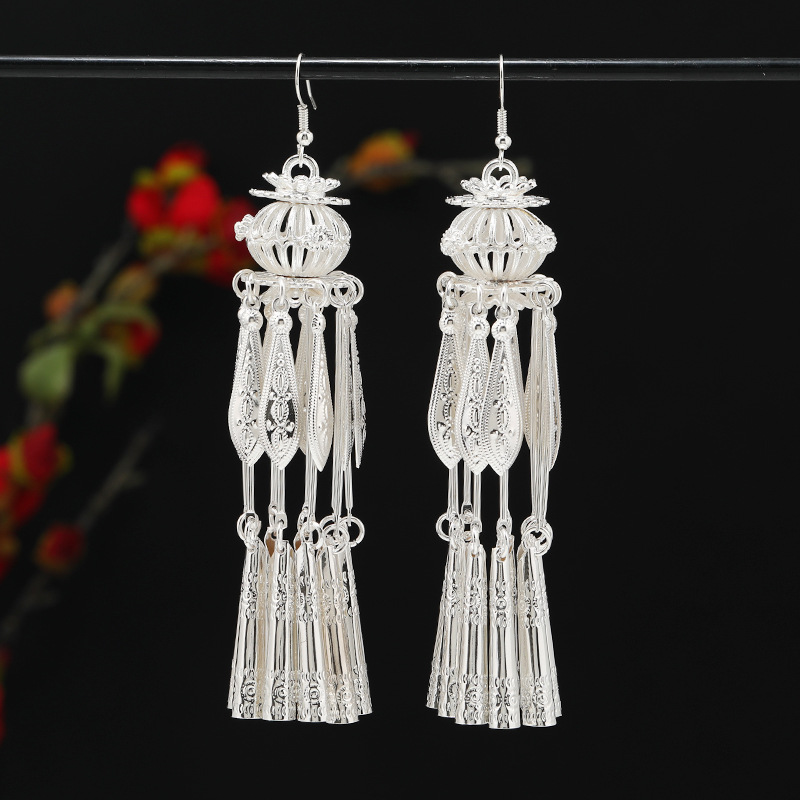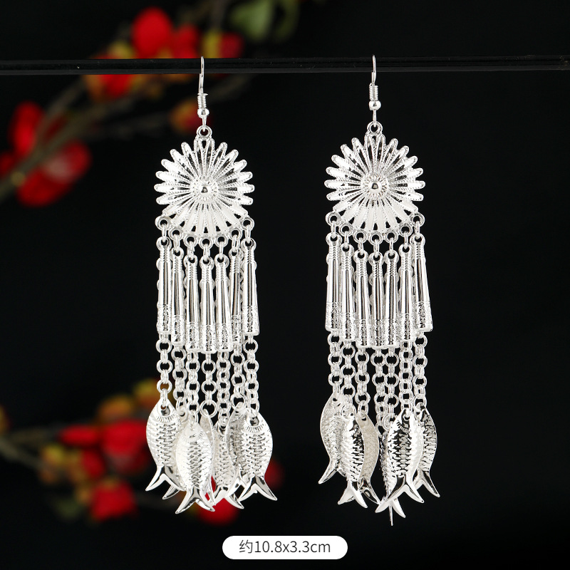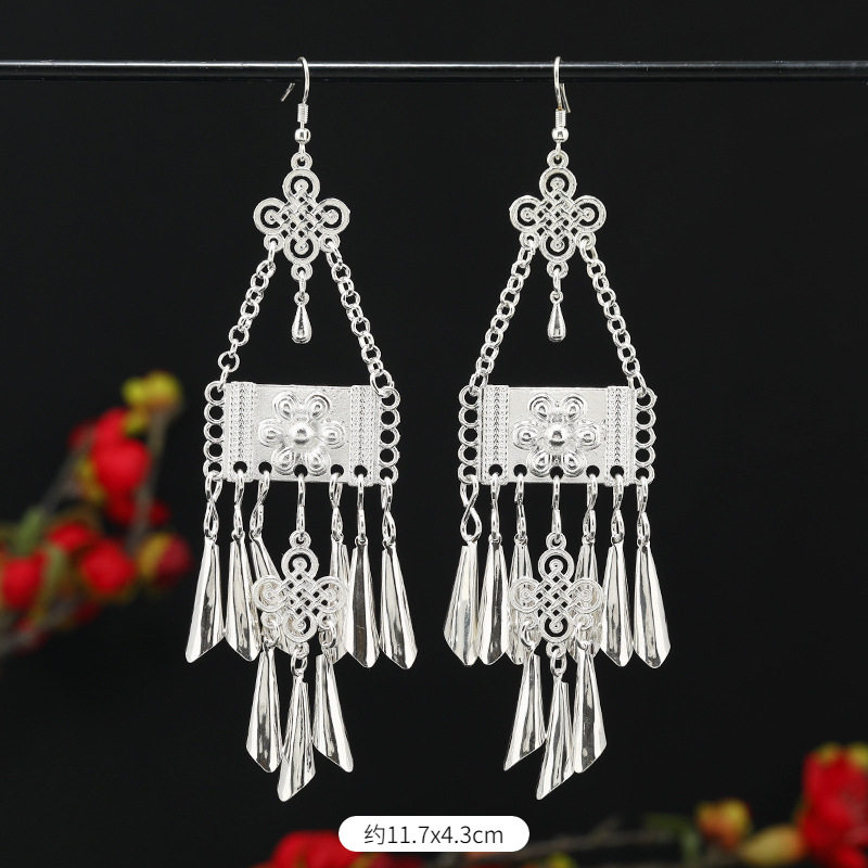 少数民族风苗银流苏耳环复古个性云南苗族夸张长款双层耳坠女耳饰