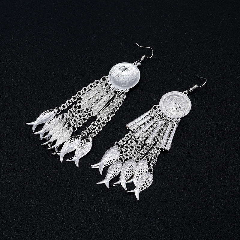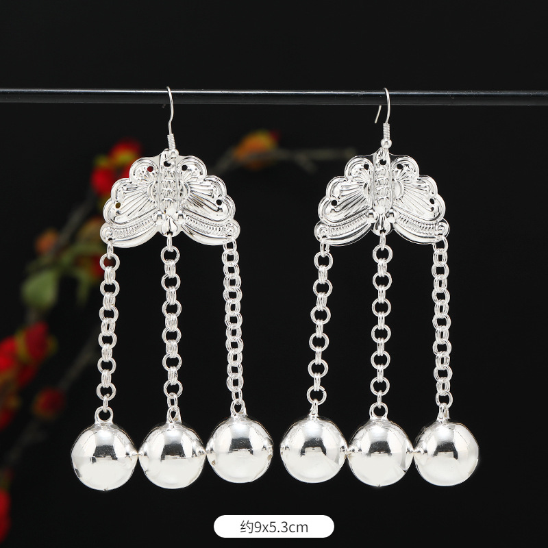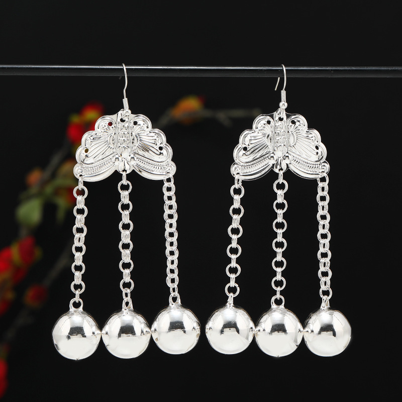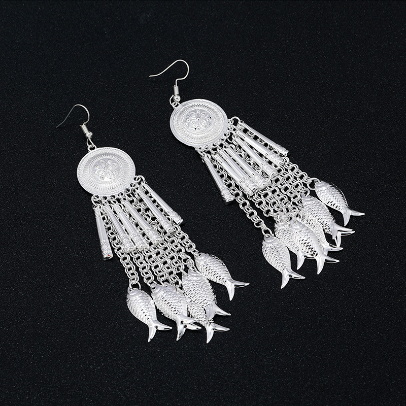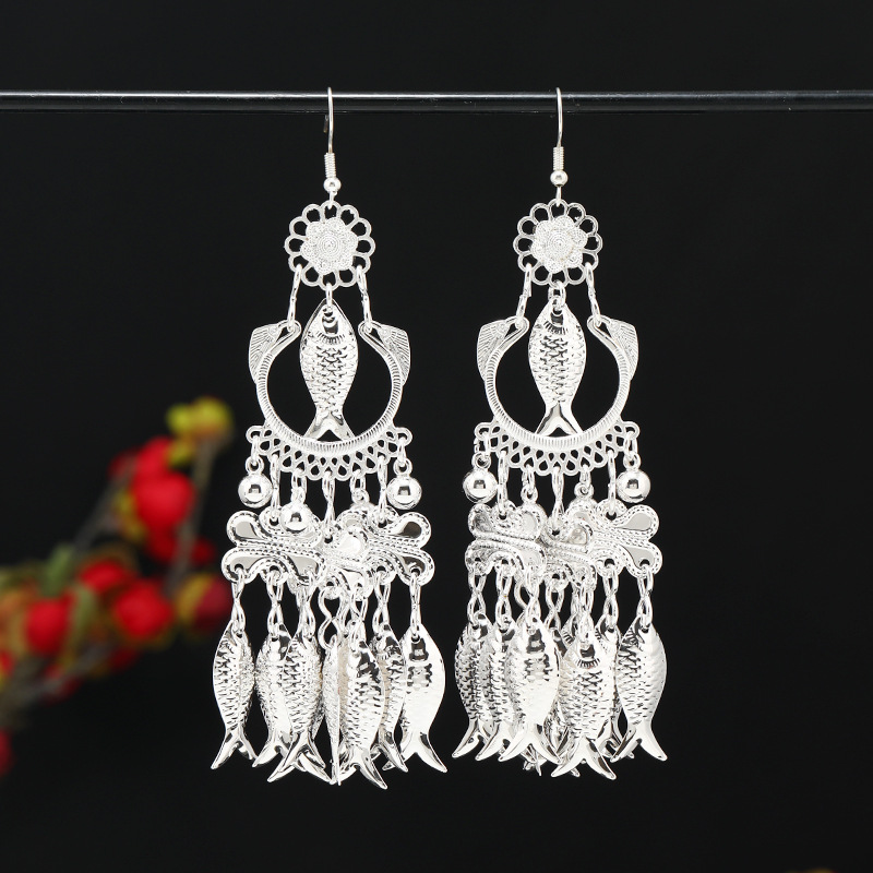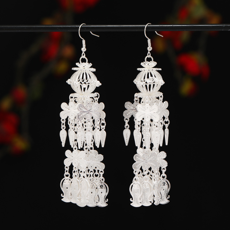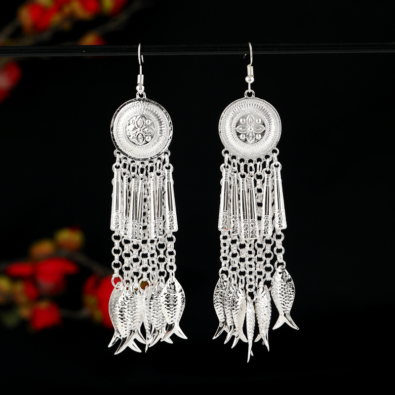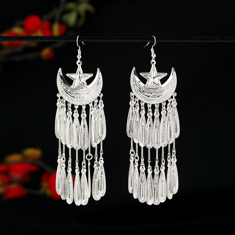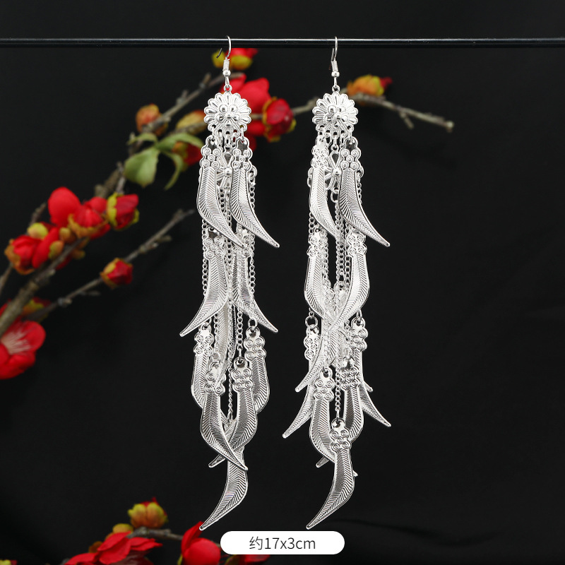 少数民族风苗银流苏耳环复古个性云南苗族夸张长款双层耳坠女耳饰