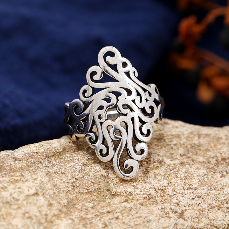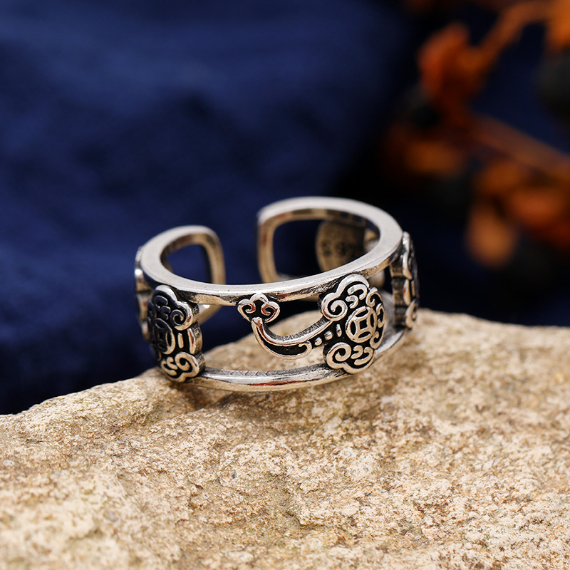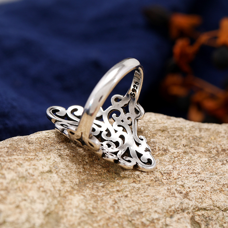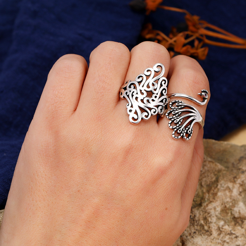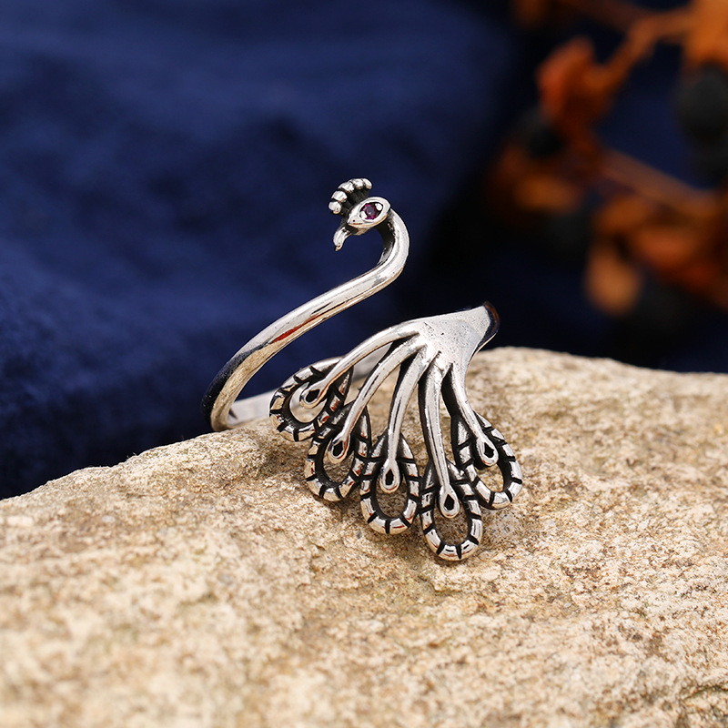 中国风复古手工菱形镂空戒指s925银孔雀个性简约女泰银指环饰品