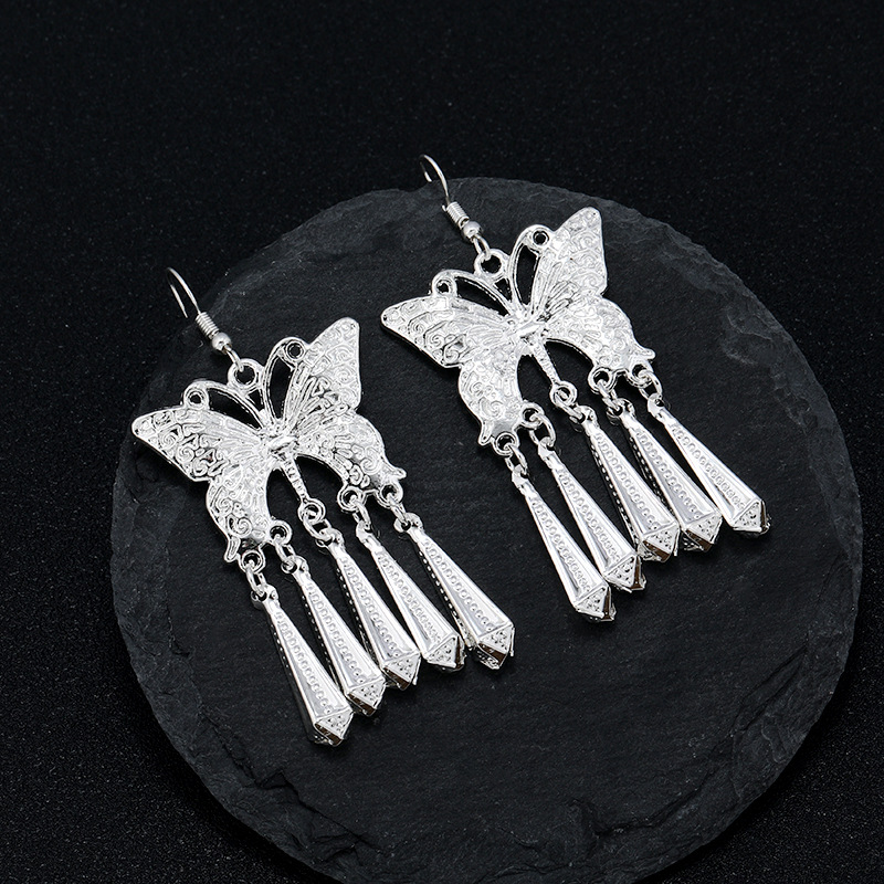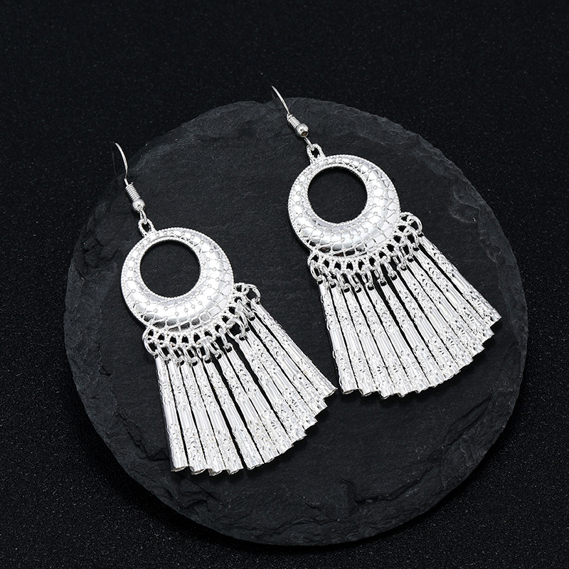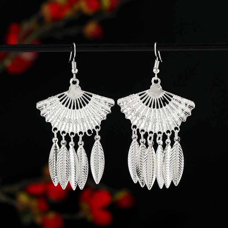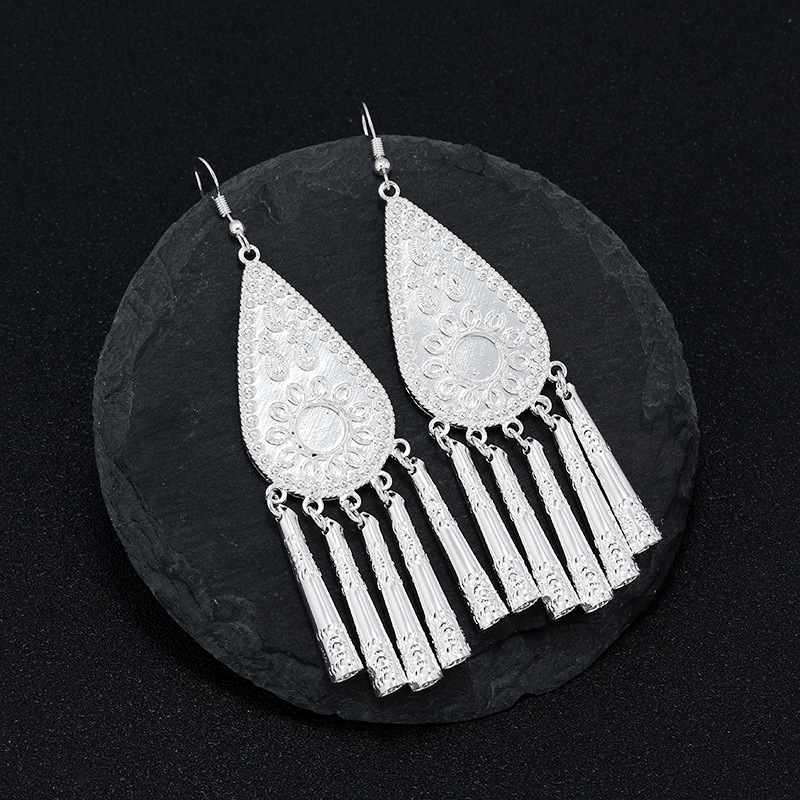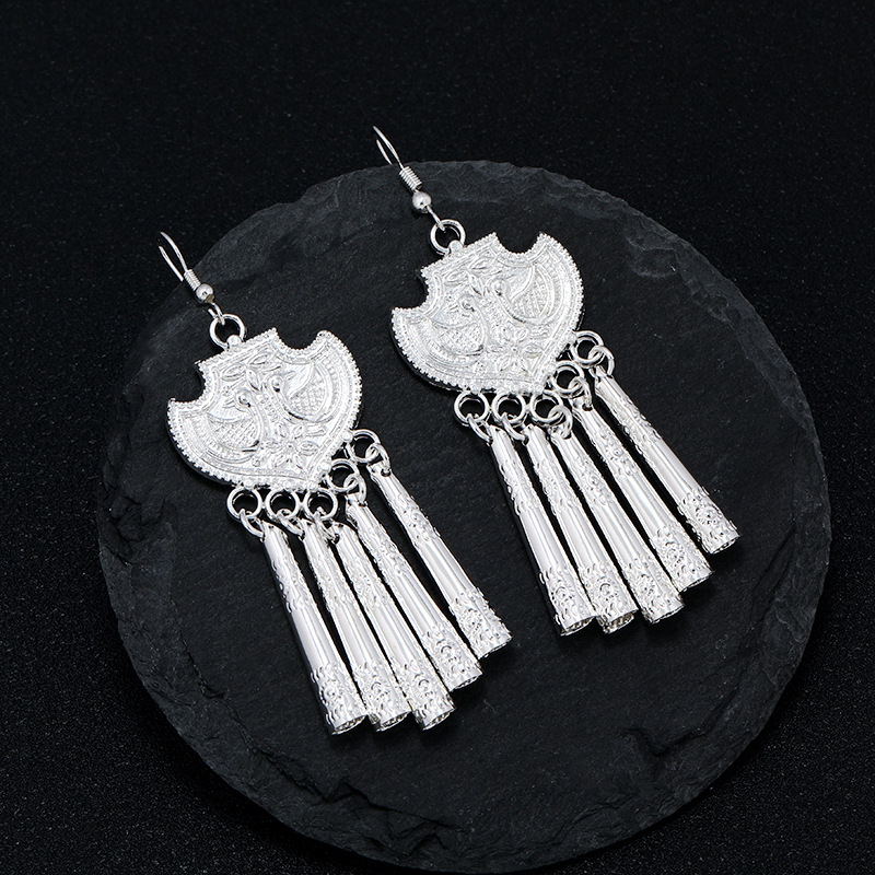 新中式民族风苗银耳环女复古小众高级感长款流苏耳坠国风度假耳饰