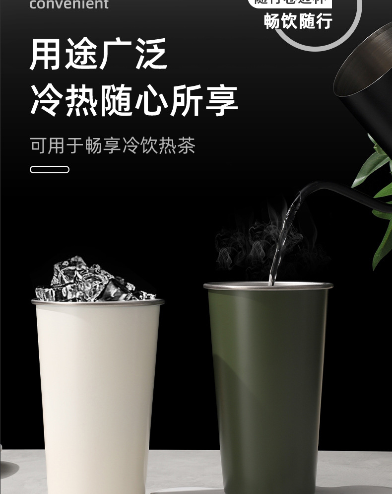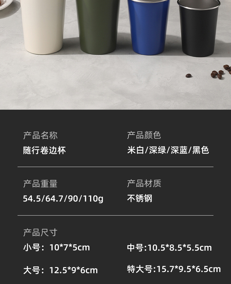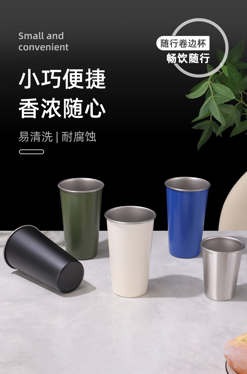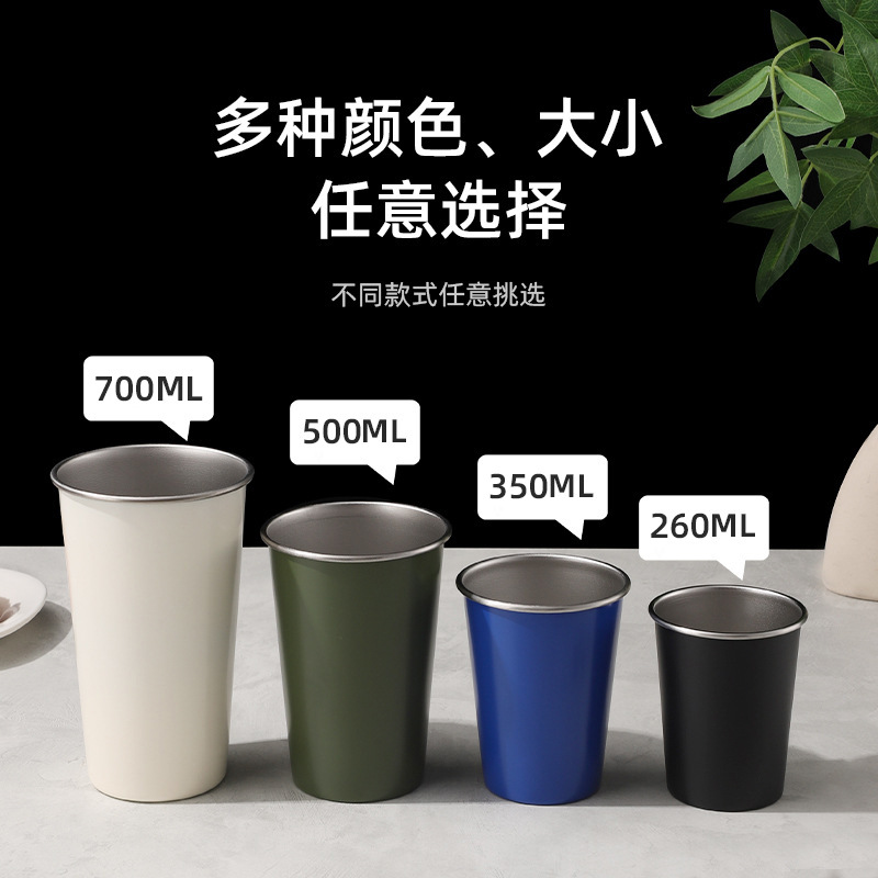 跨境简约304不锈钢餐厅酒吧啤酒杯户外露营水杯多尺寸通用咖啡杯