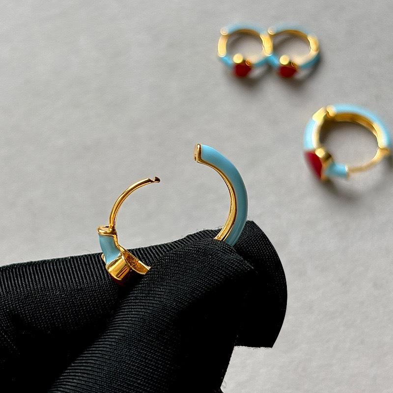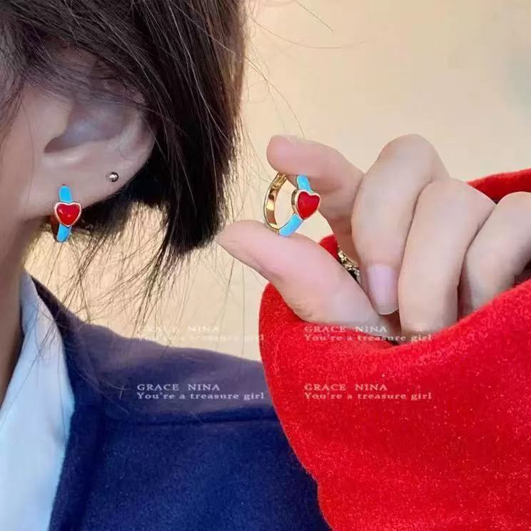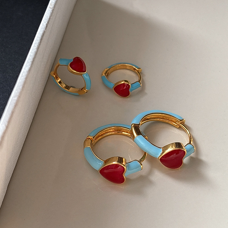 夏季小清新珐琅彩红色爱心耳扣耳环女轻奢小众法式复古耳钉耳饰品