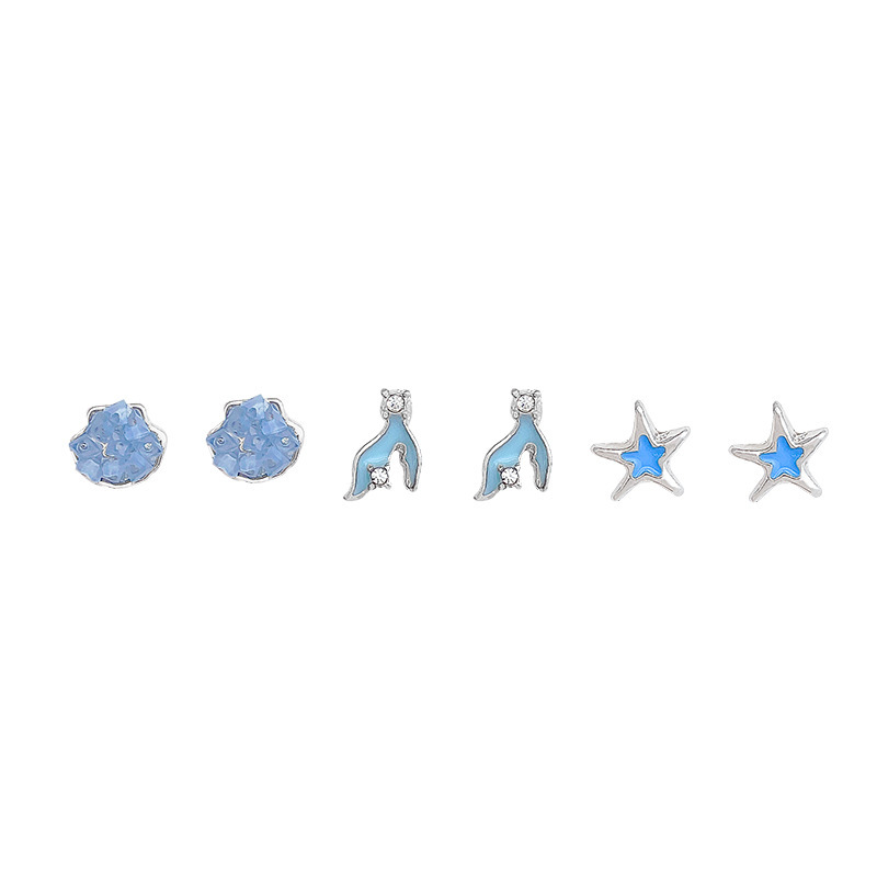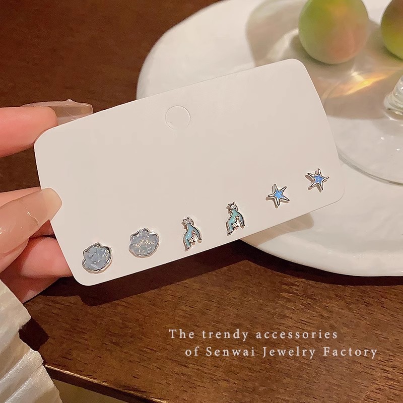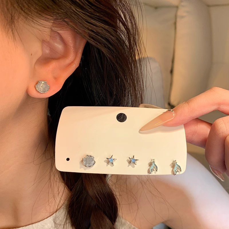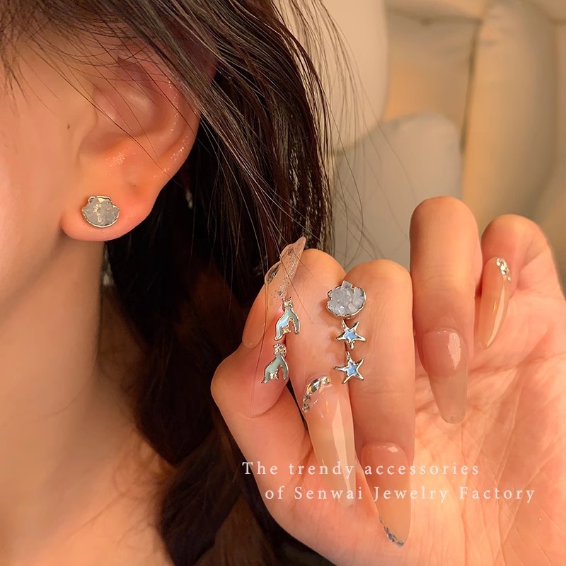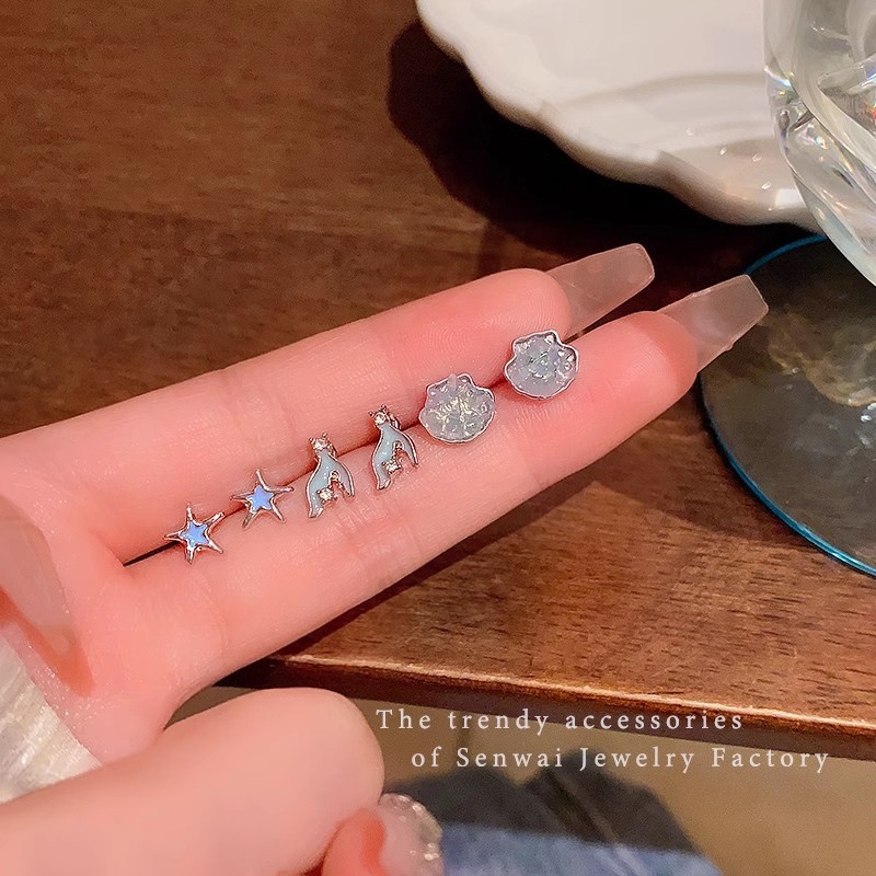 养耳洞小巧可爱六件套星星鱼尾耳钉女学生百搭气质简约耳环耳饰品