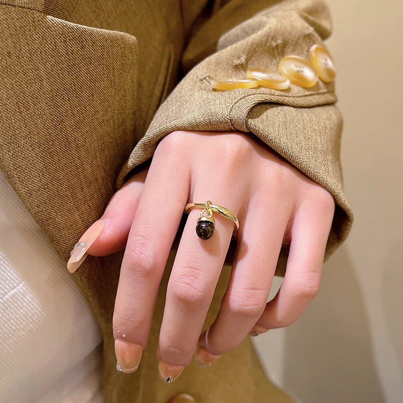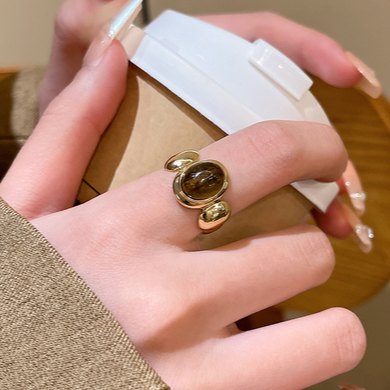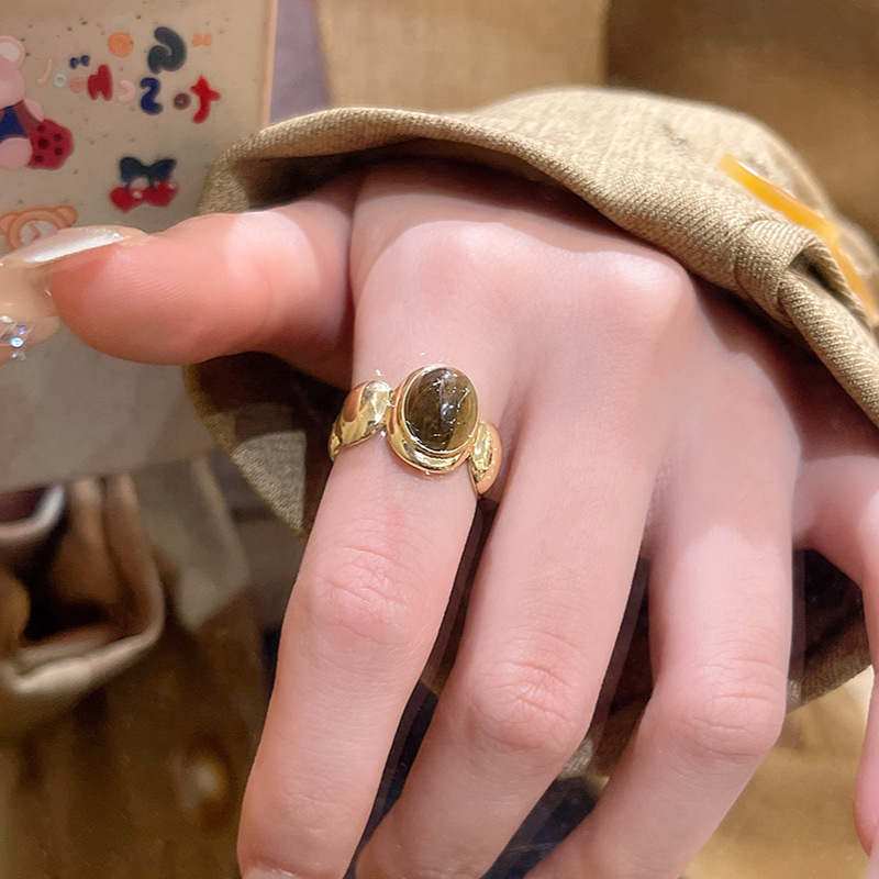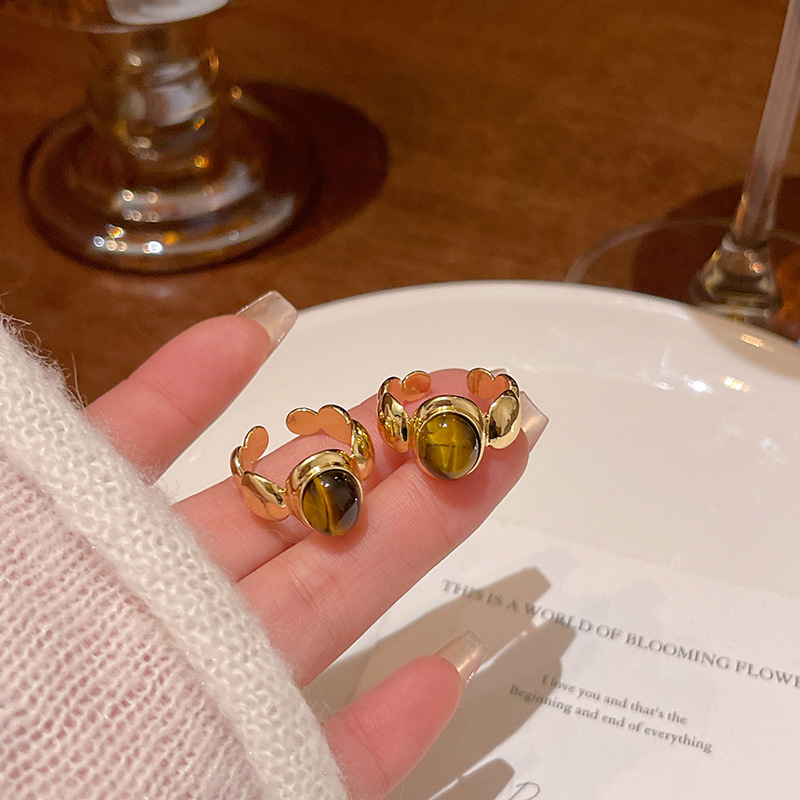 中古vintage虎眼石戒指高级感开口可调节食指戒网红同款指环批发