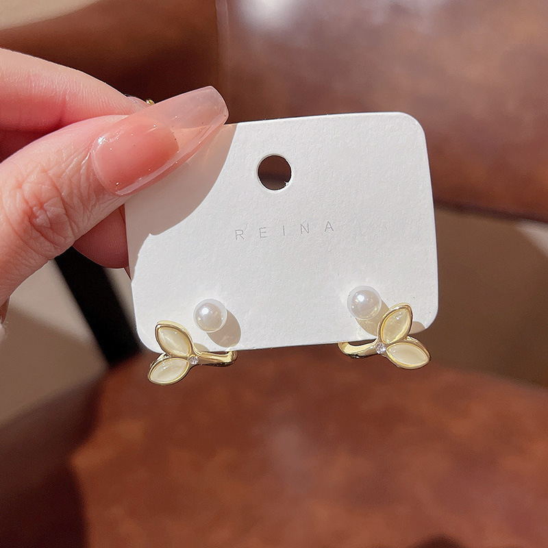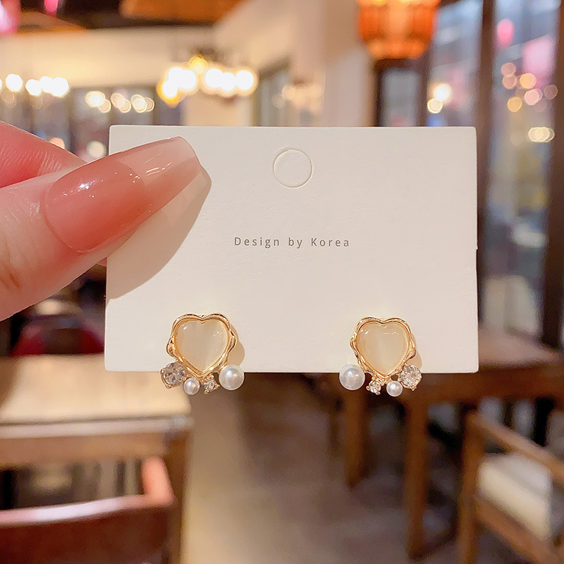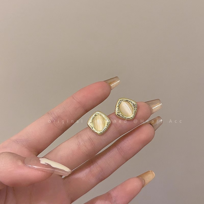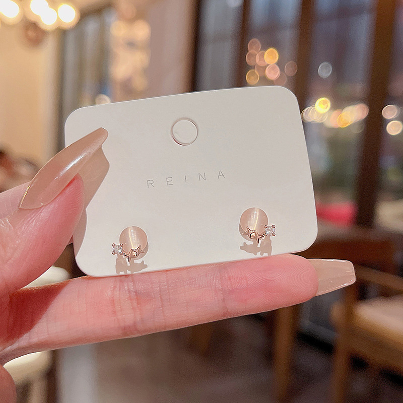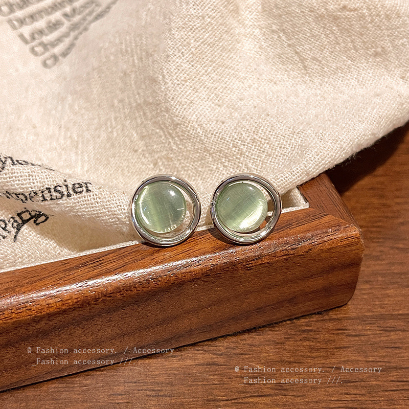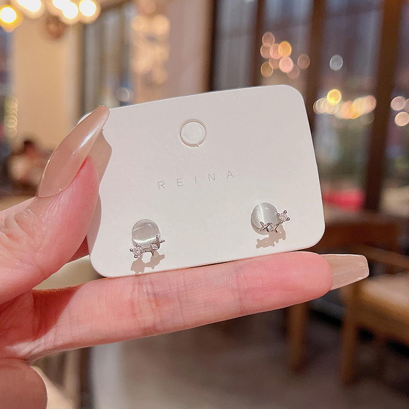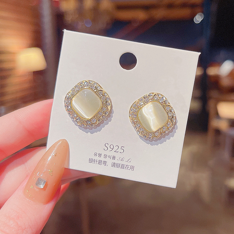 925银针高级感小众猫眼石耳环女气质ins风轻奢珍珠耳钉耳饰品批发