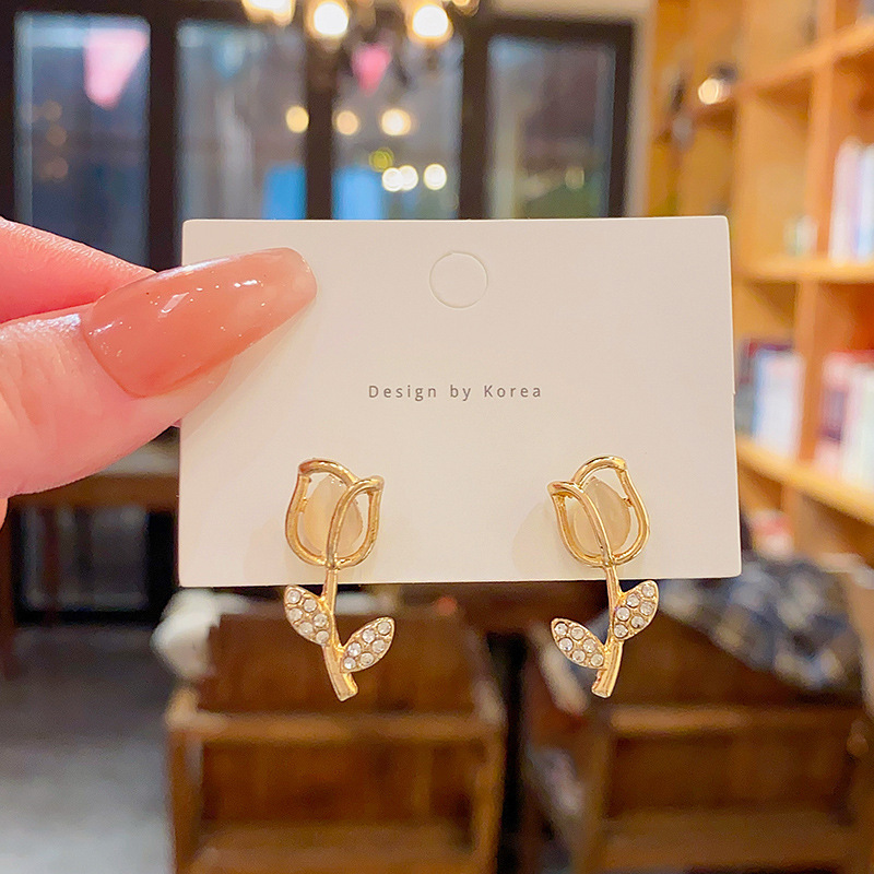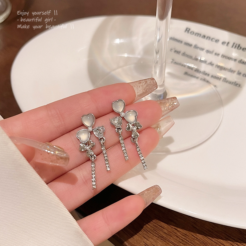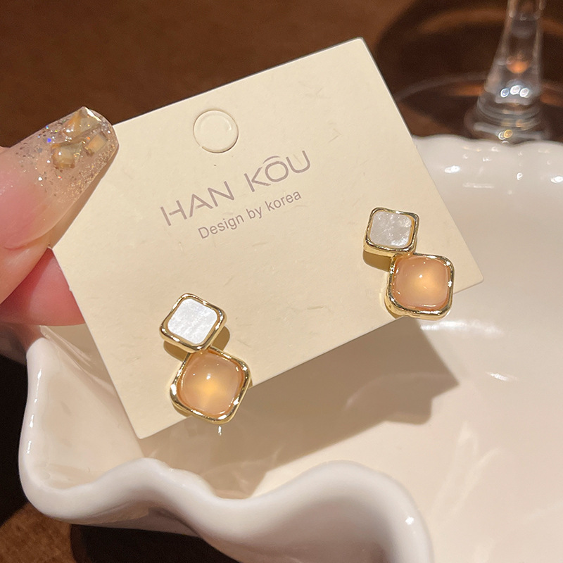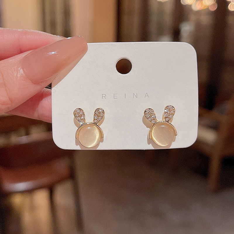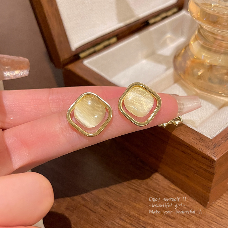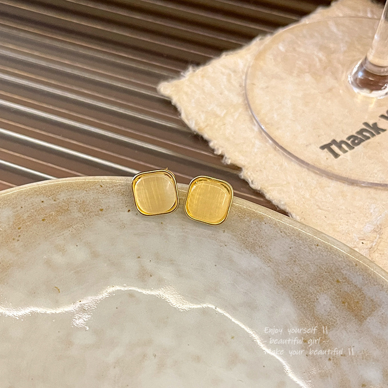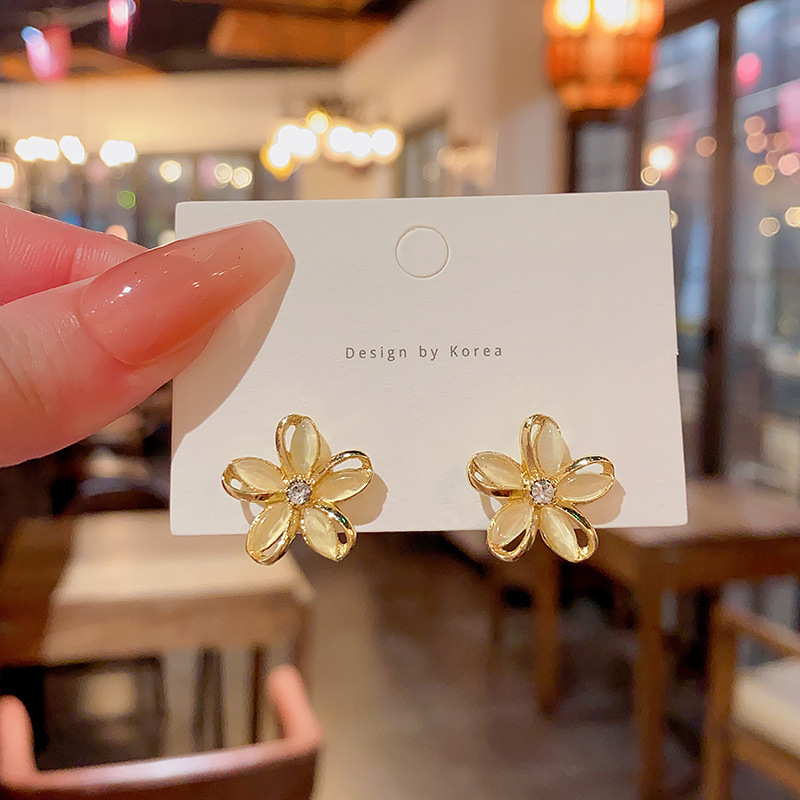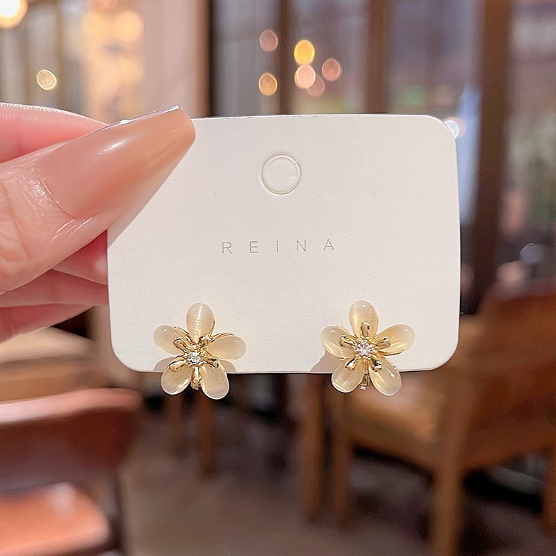925银针高级感小众猫眼石耳环女气质ins风轻奢珍珠耳钉耳饰品批发