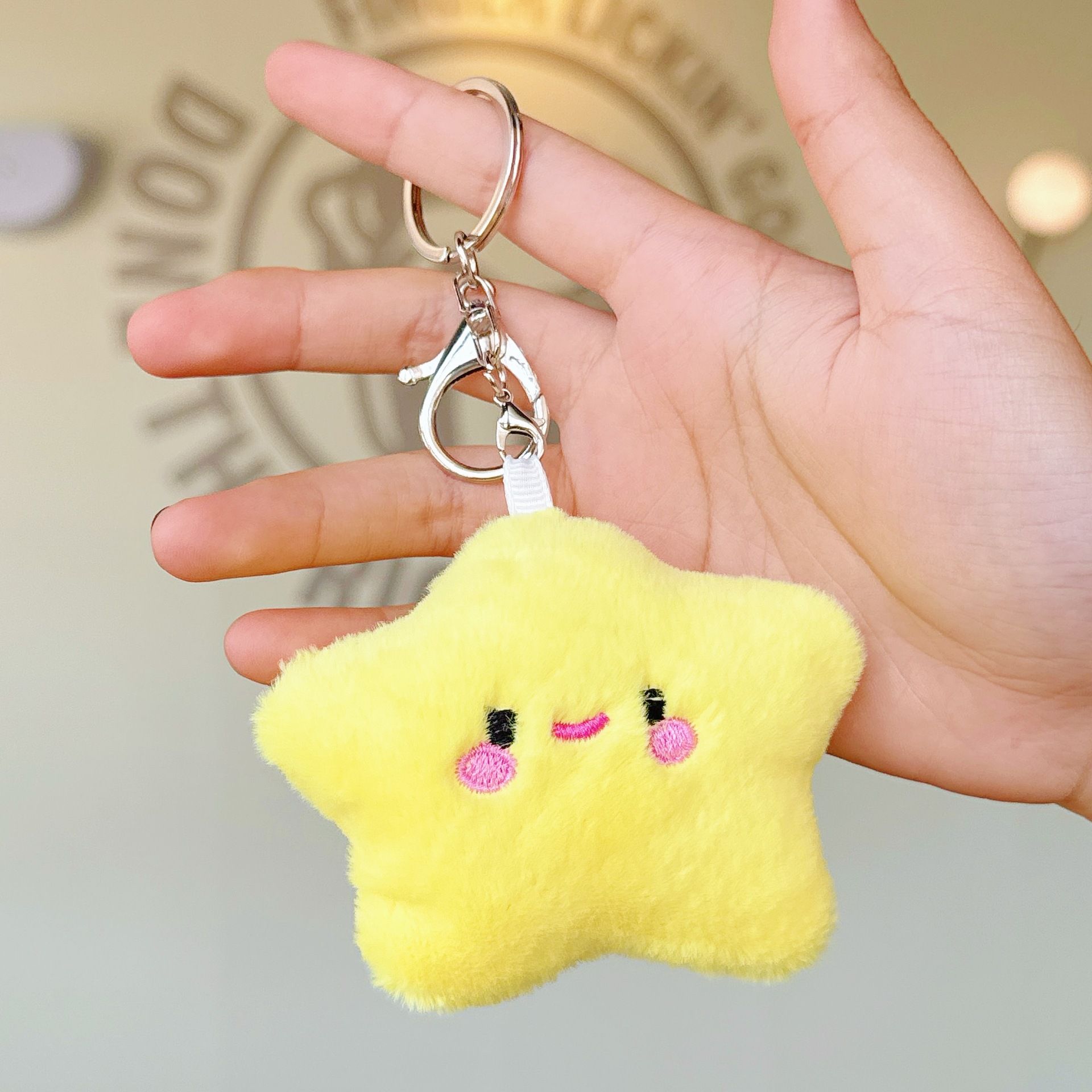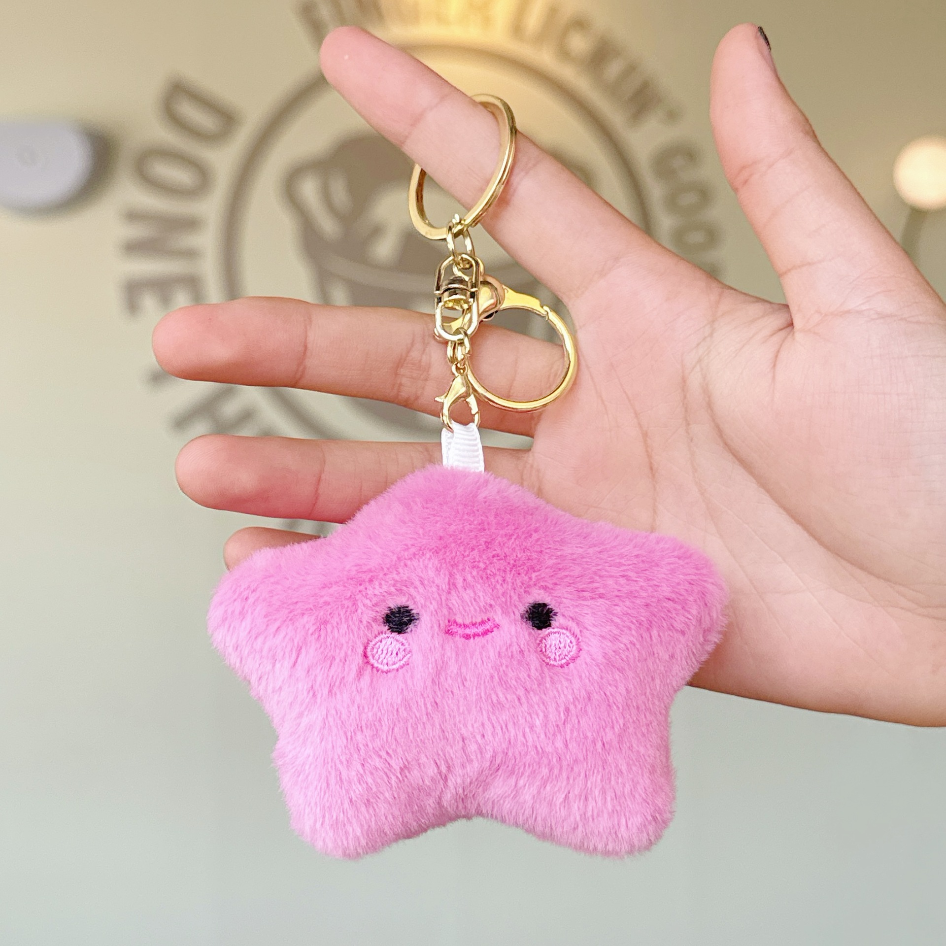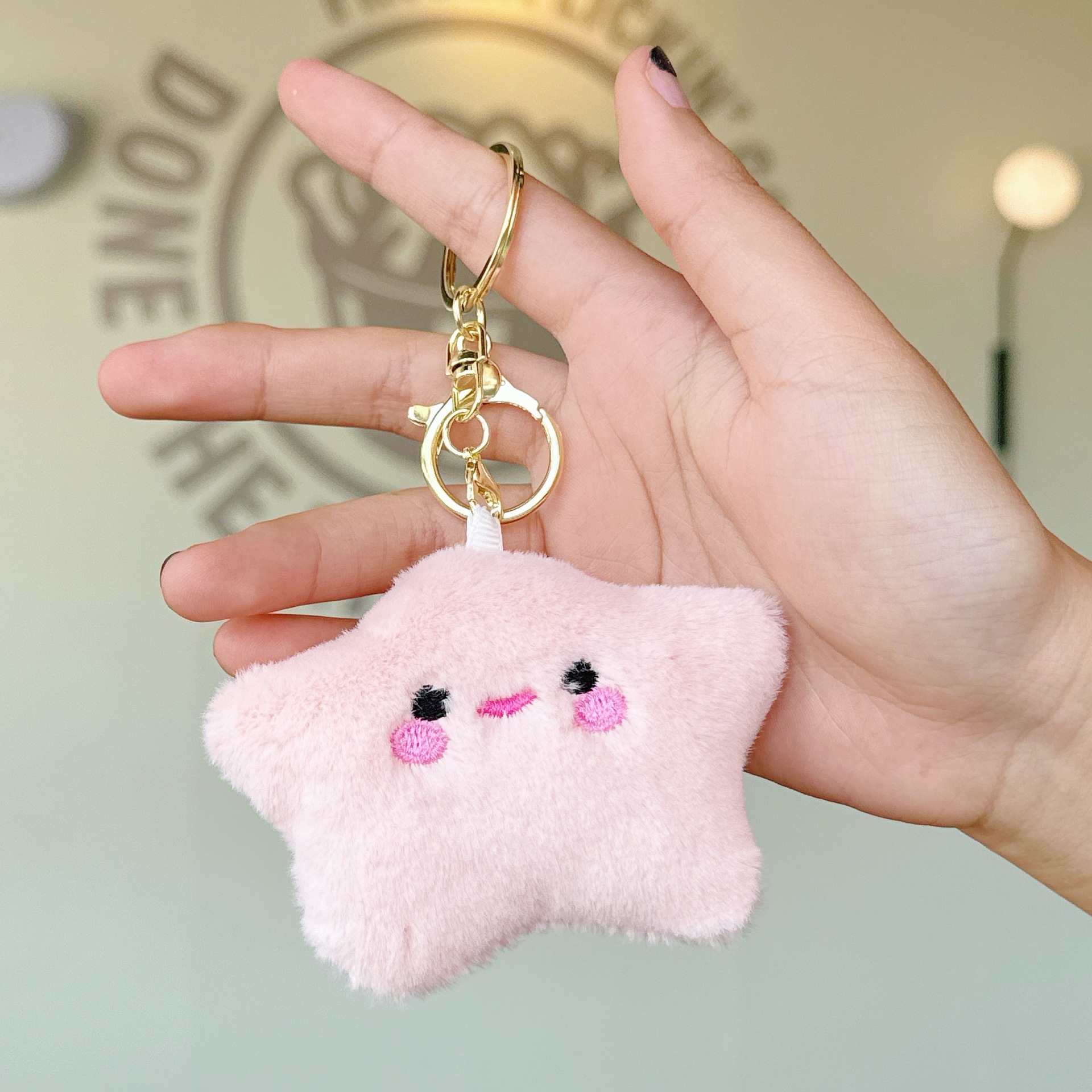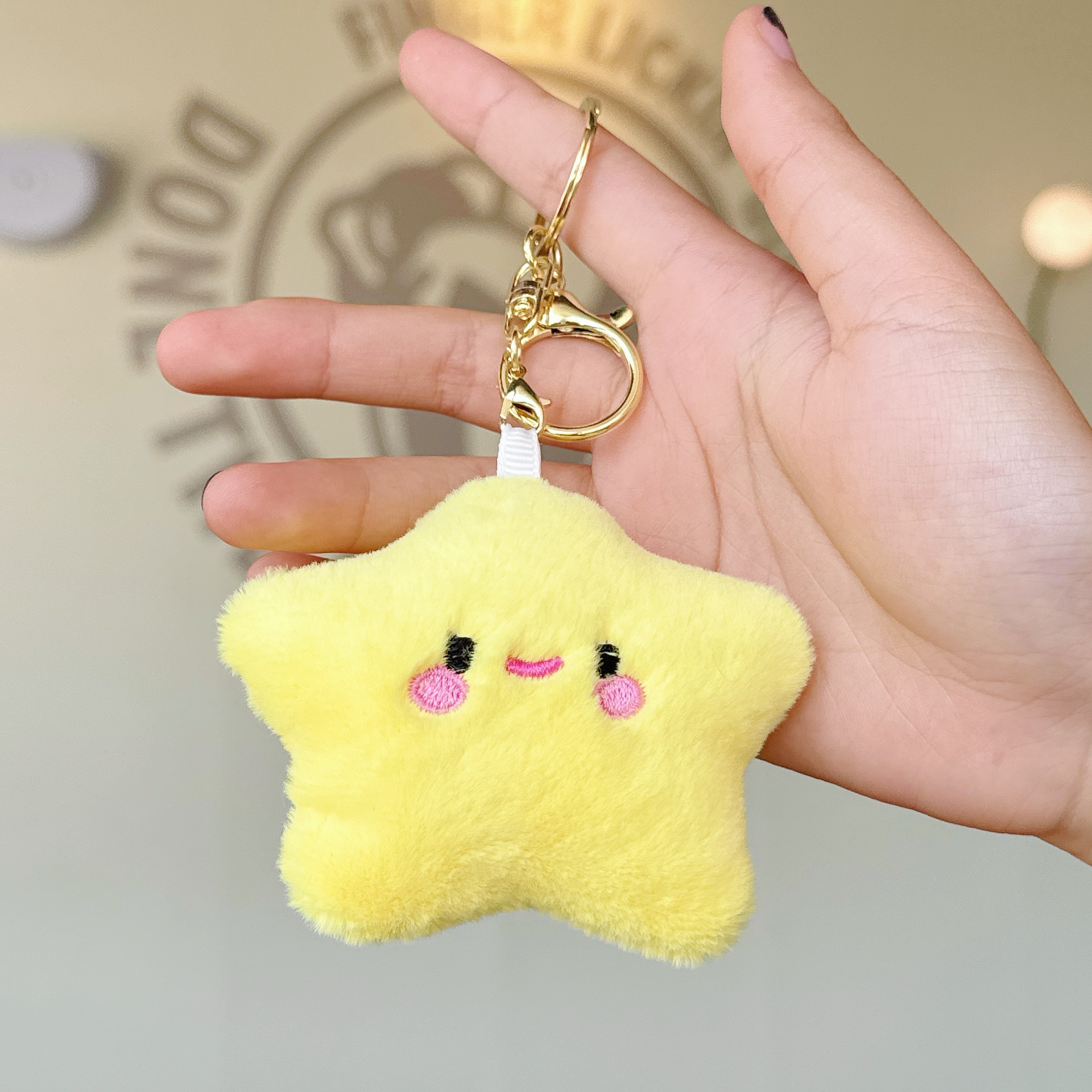 可爱少女毛绒笑脸星星公仔小挂件玩偶钥匙扣配饰学生背包挂饰批发