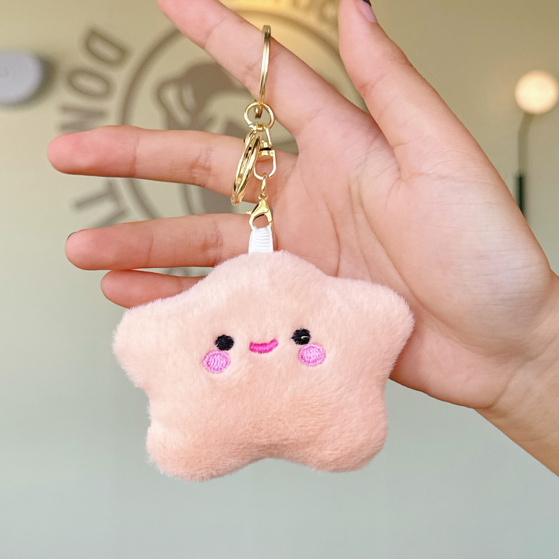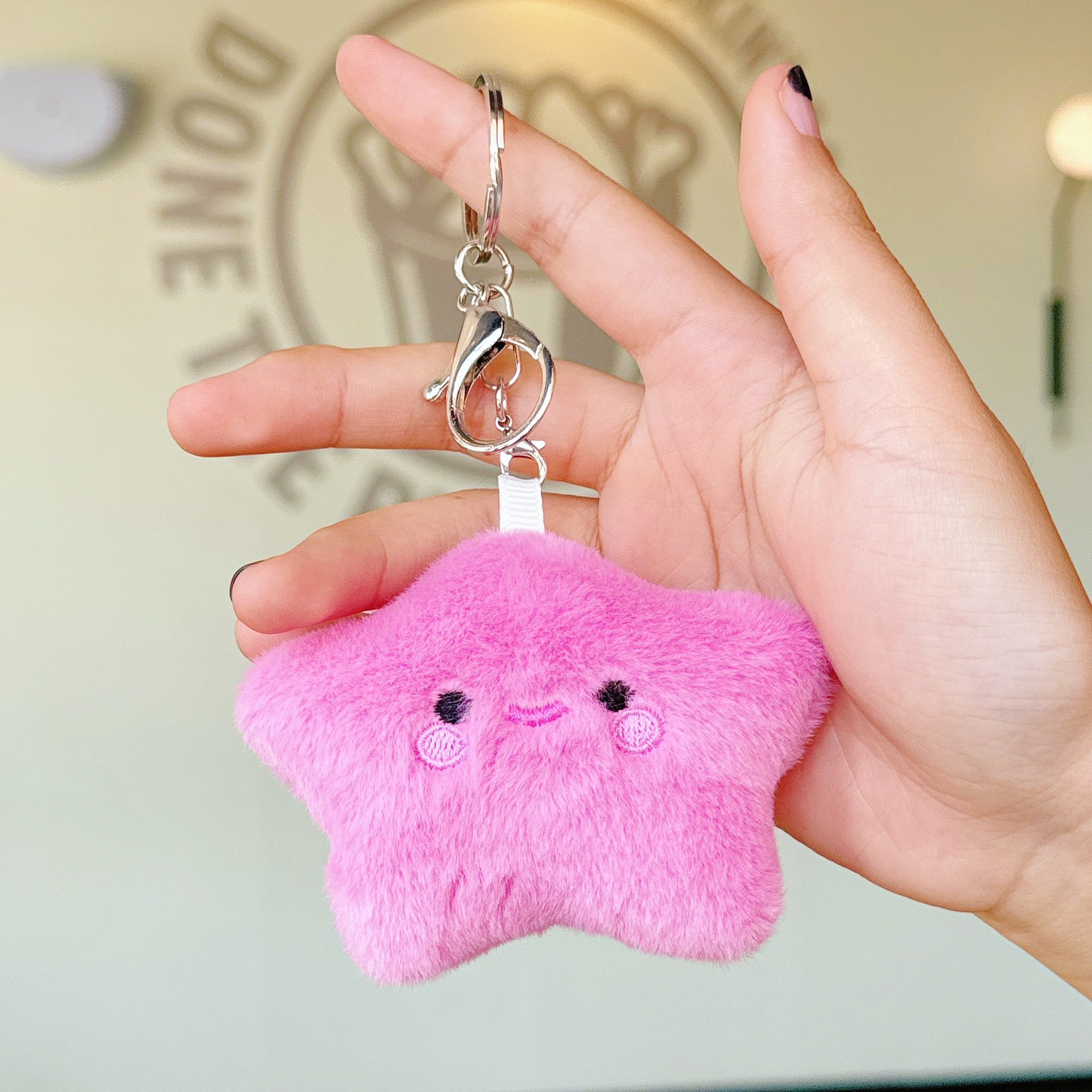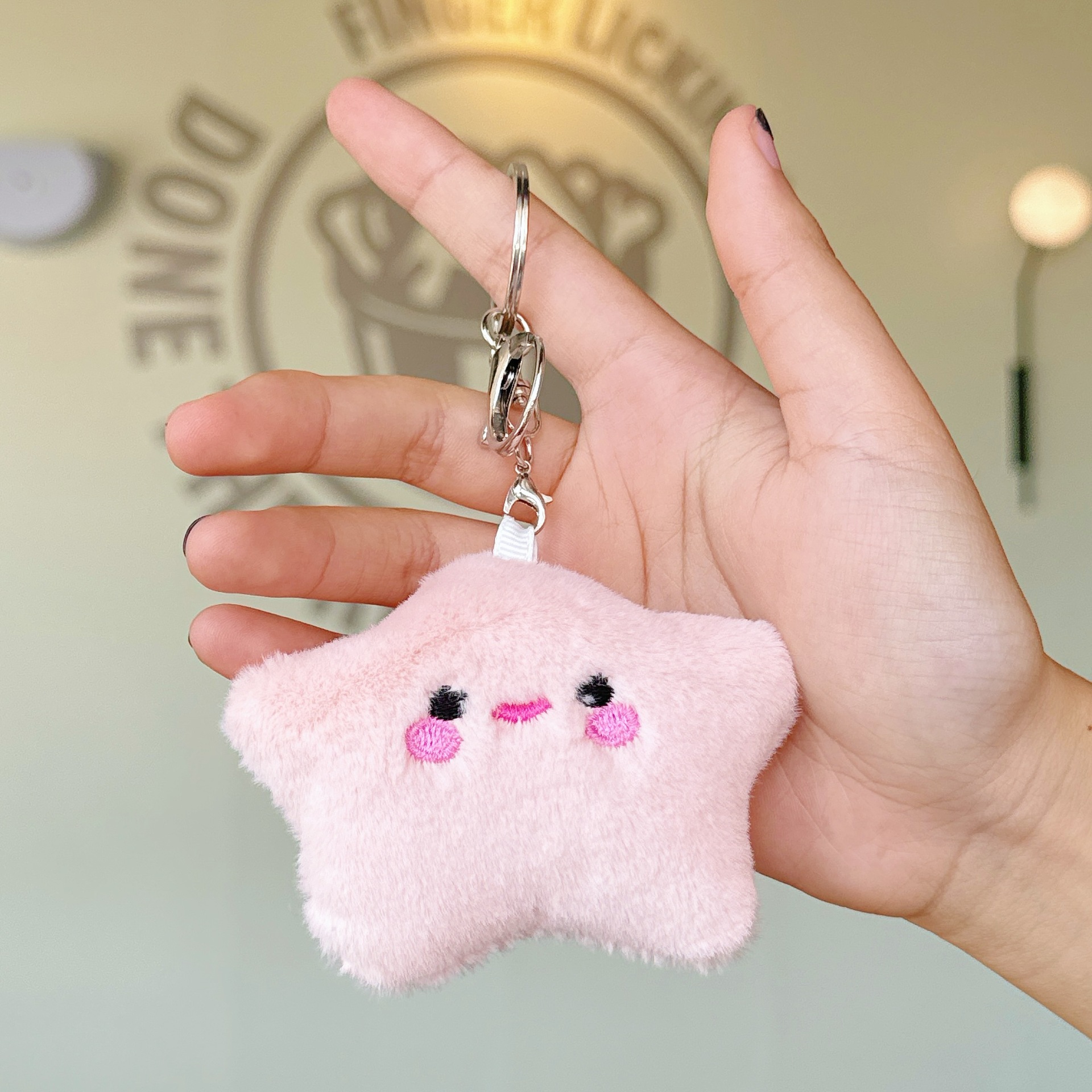 可爱少女毛绒笑脸星星公仔小挂件玩偶钥匙扣配饰学生背包挂饰批发