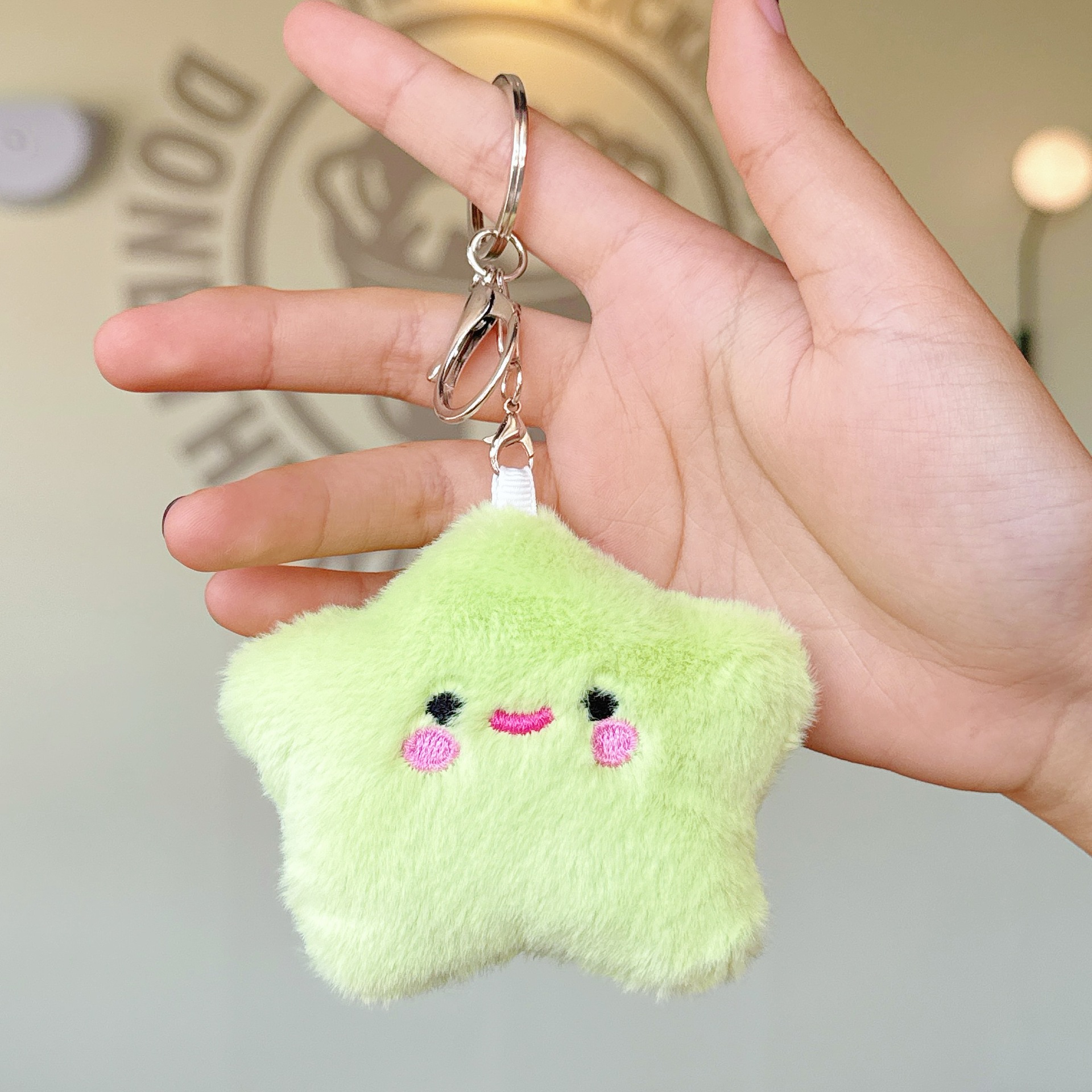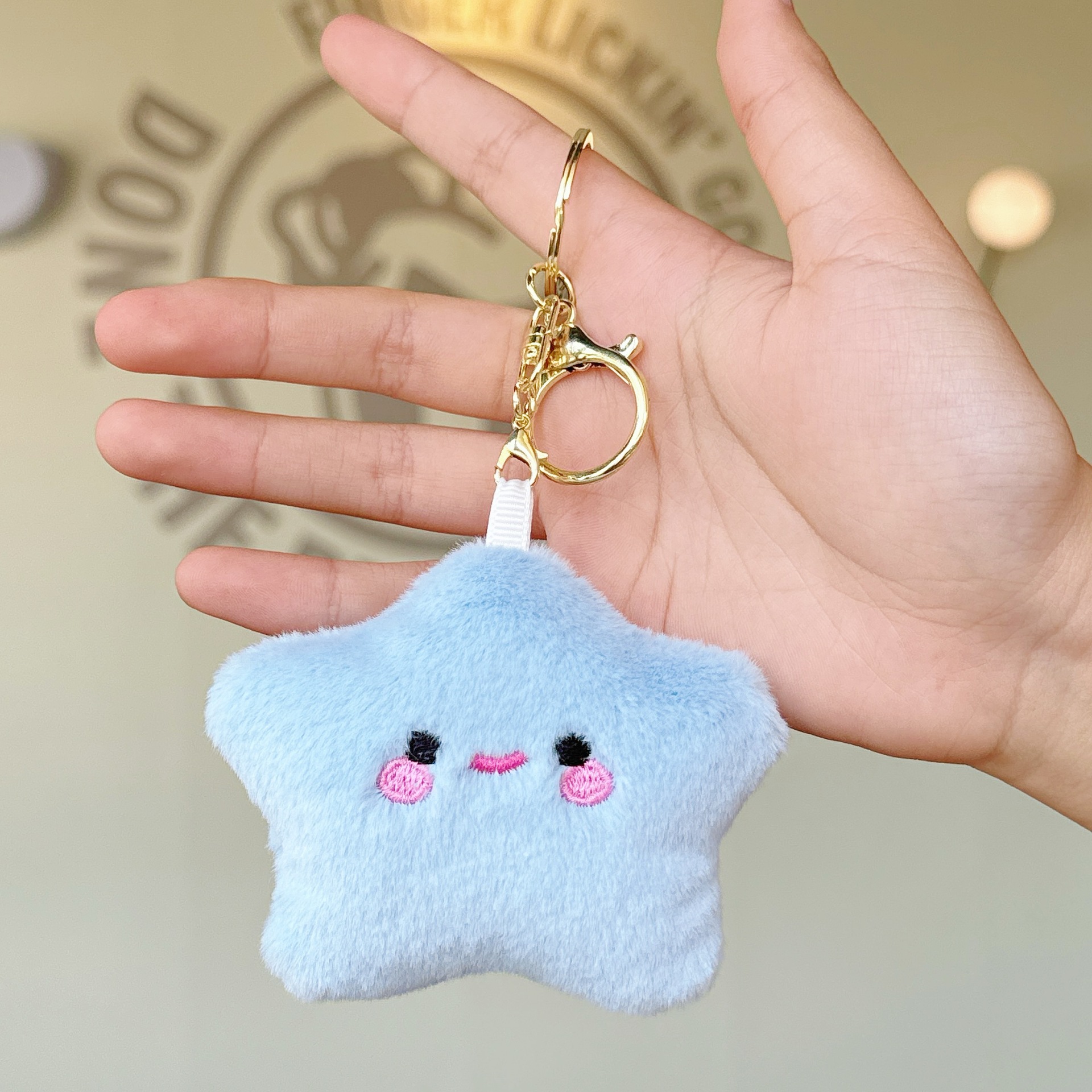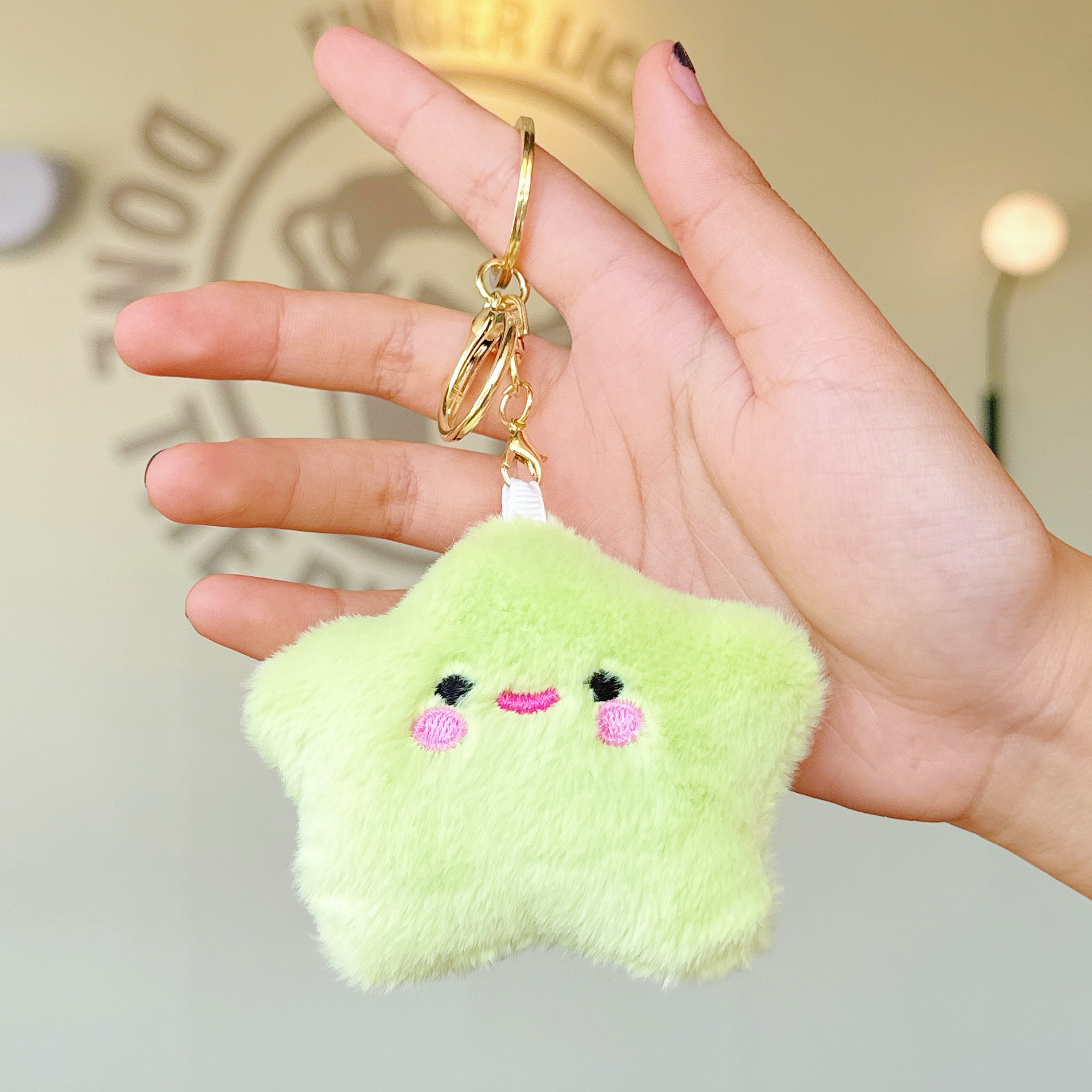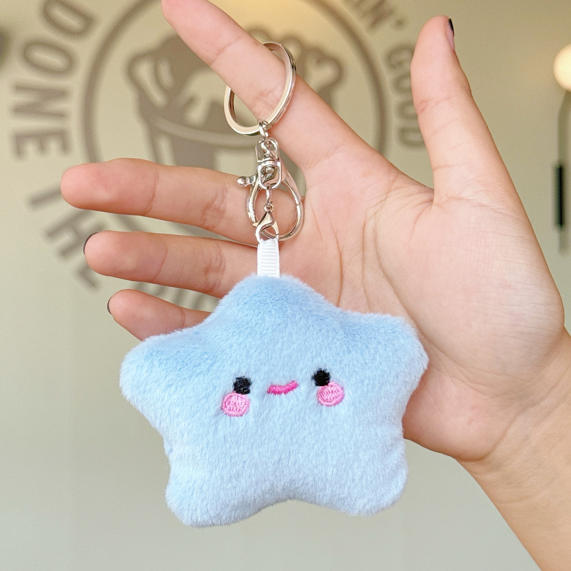可爱少女毛绒笑脸星星公仔小挂件玩偶钥匙扣配饰学生背包挂饰批发