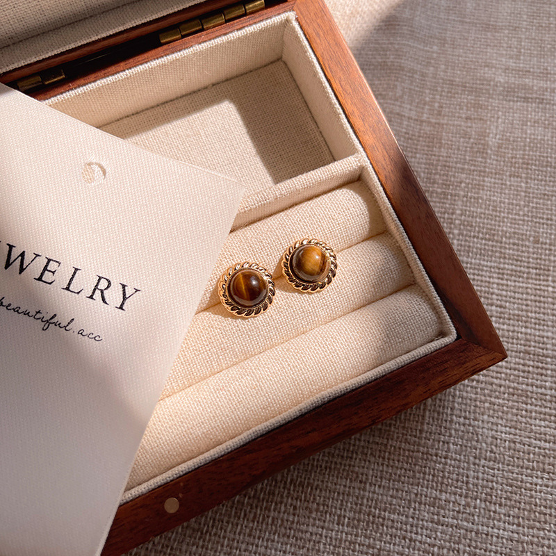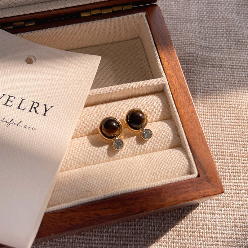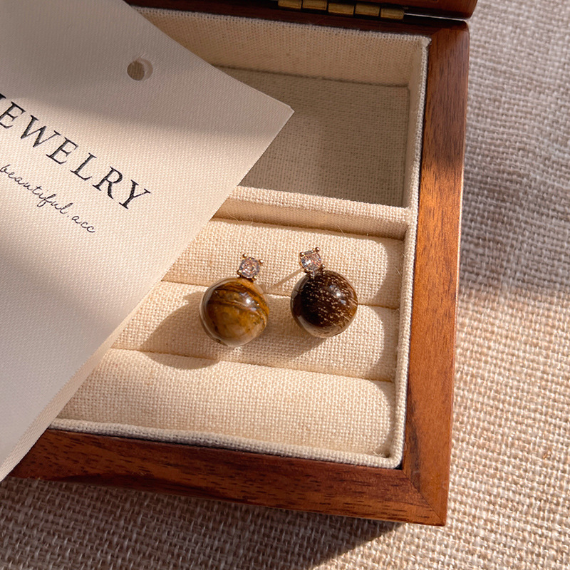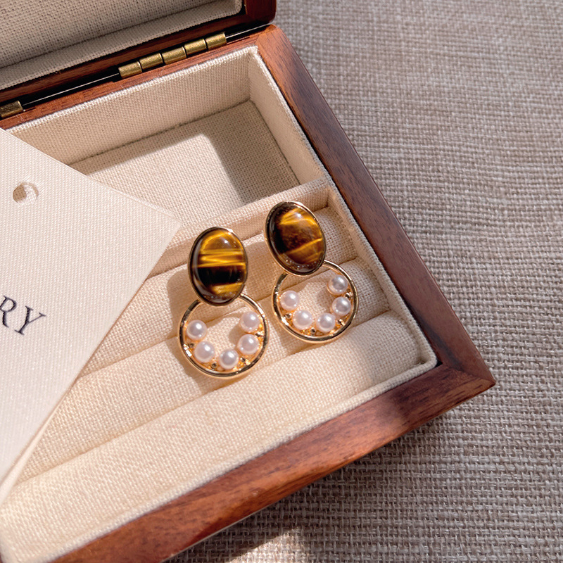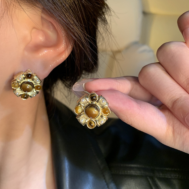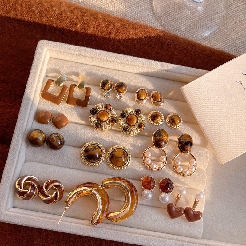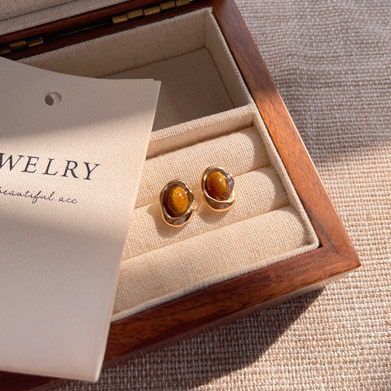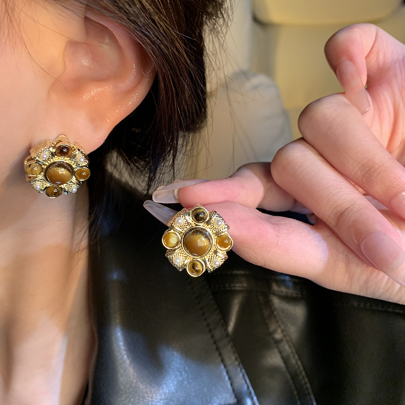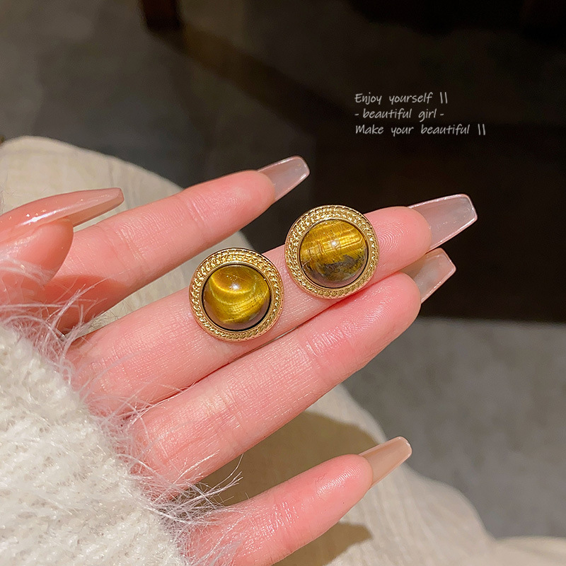 秋冬款高级感琥珀色虎眼石耳钉女轻奢小众百搭气质豹纹耳环耳饰品