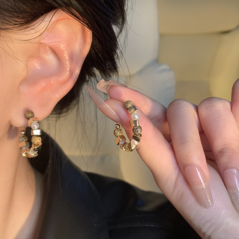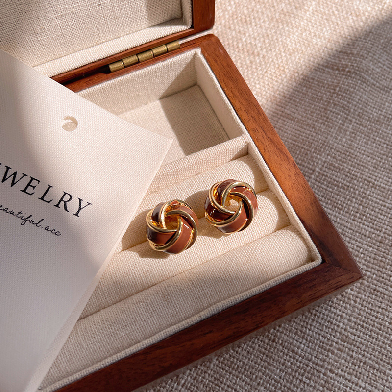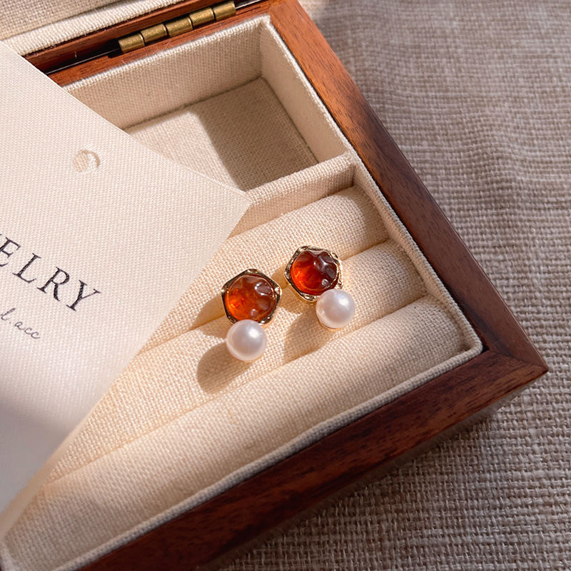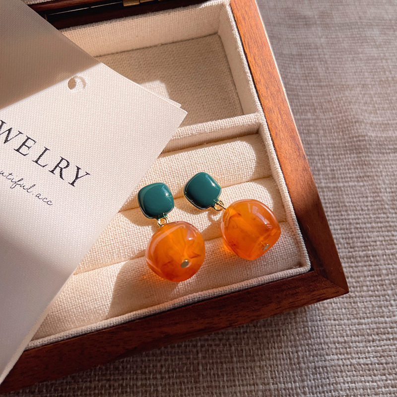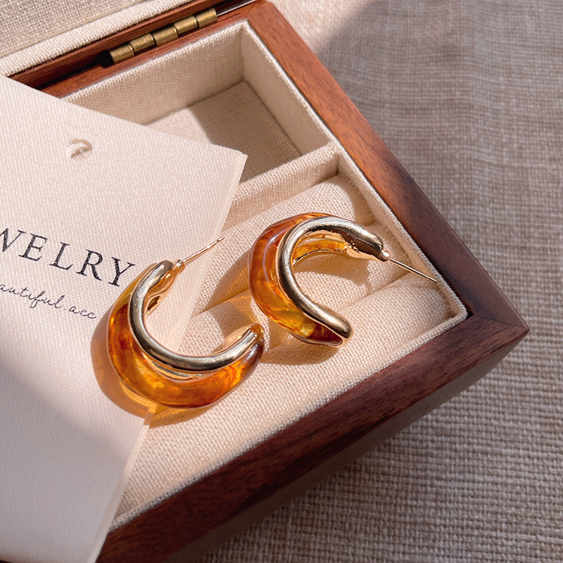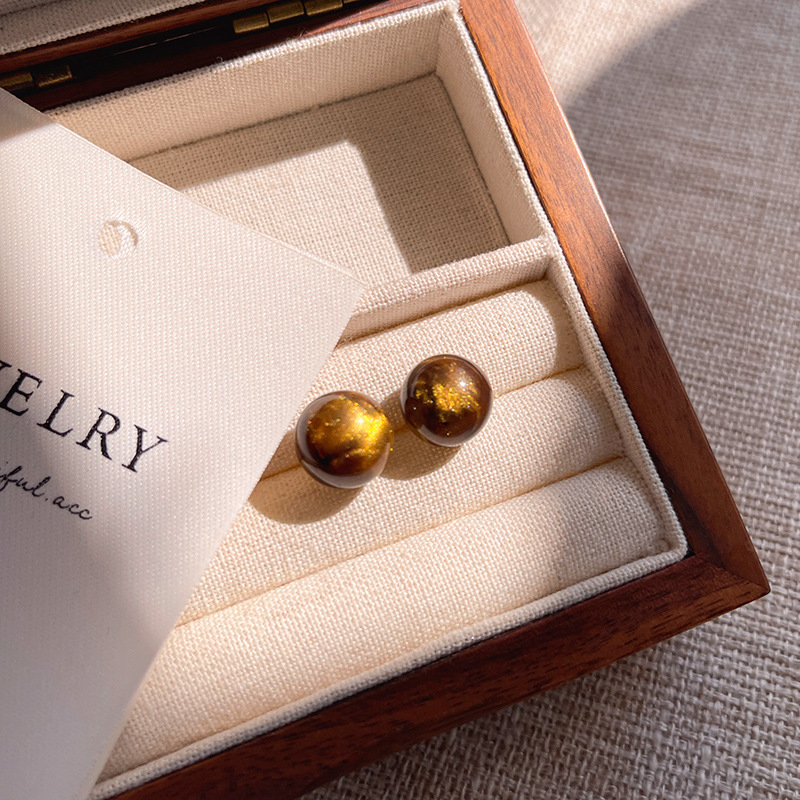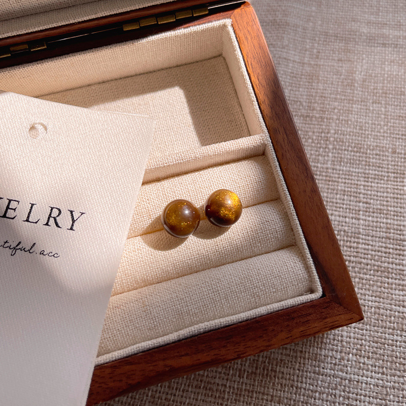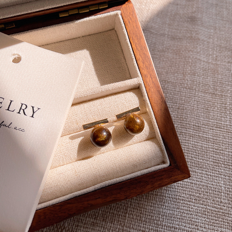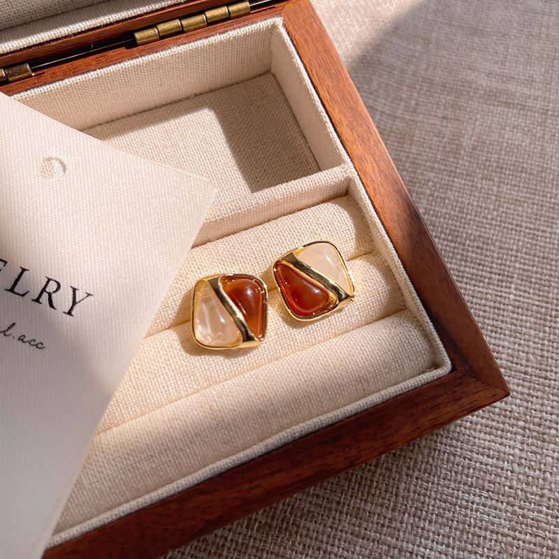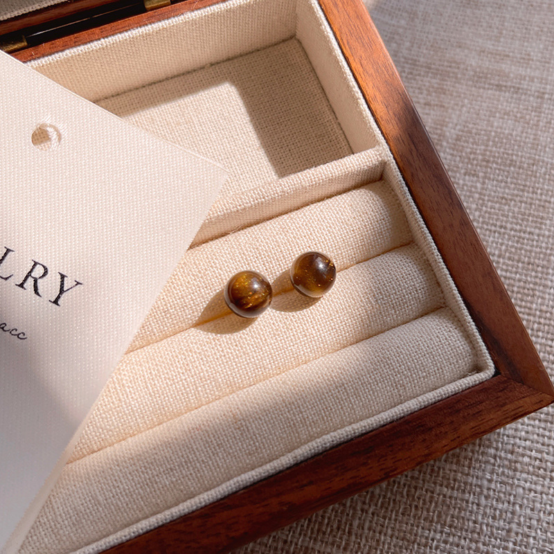 秋冬款高级感琥珀色虎眼石耳钉女轻奢小众百搭气质豹纹耳环耳饰品