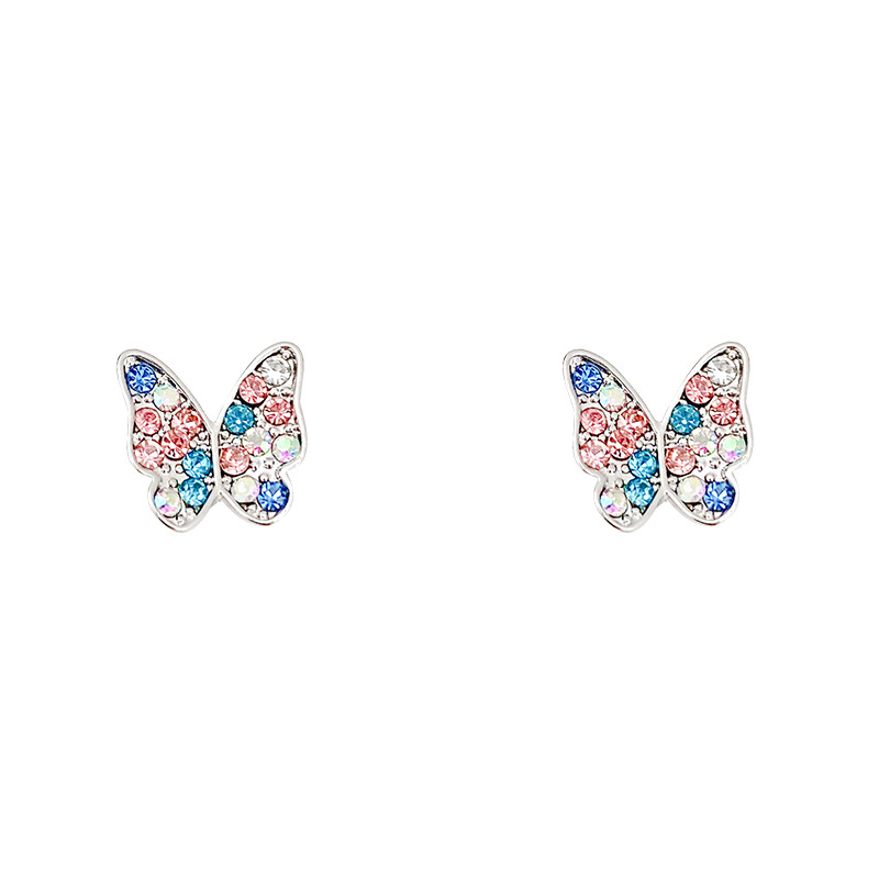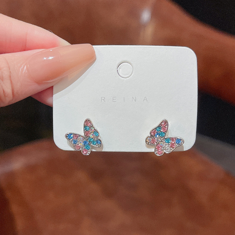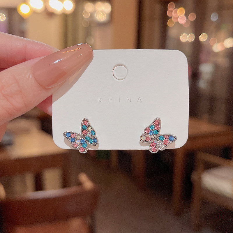 925银针韩国新款小清新彩色蝴蝶耳环女ins潮百搭气质网红耳钉耳饰