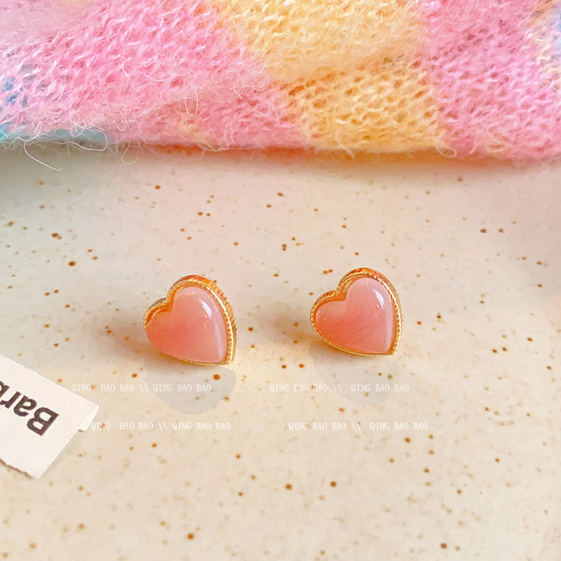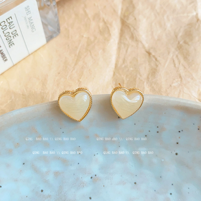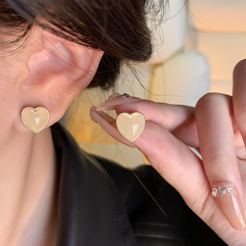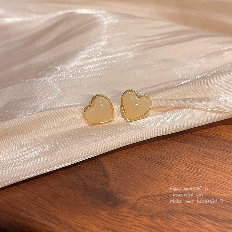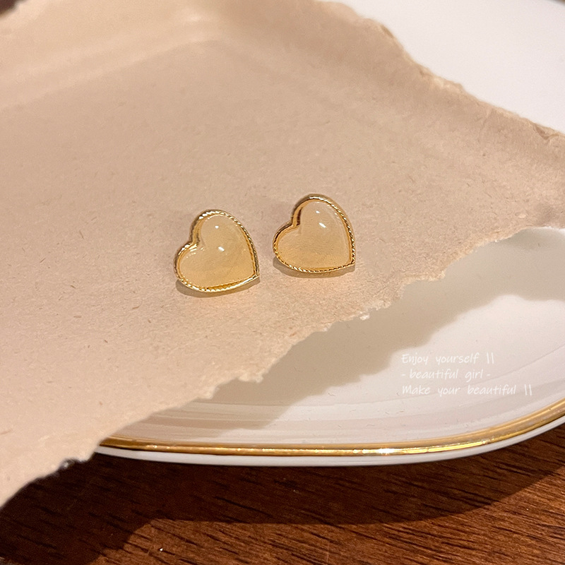 韩系简约百搭气质树脂爱心耳钉女S925银针轻奢小众桃心耳环耳饰品