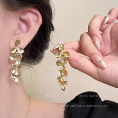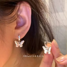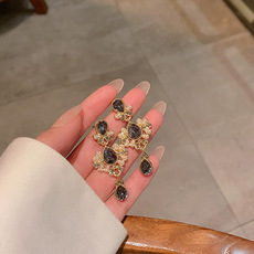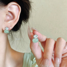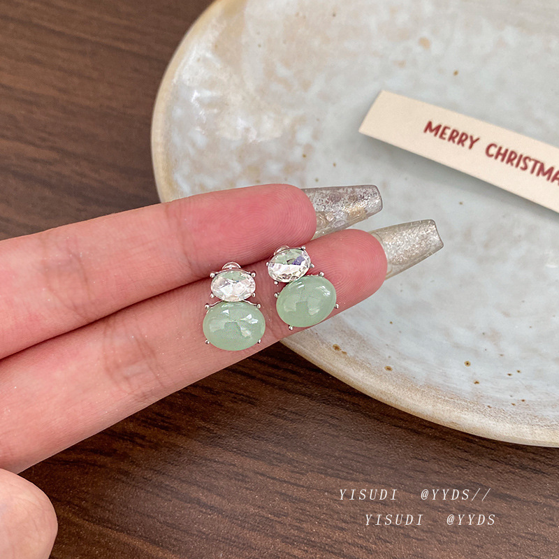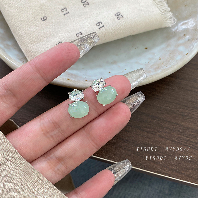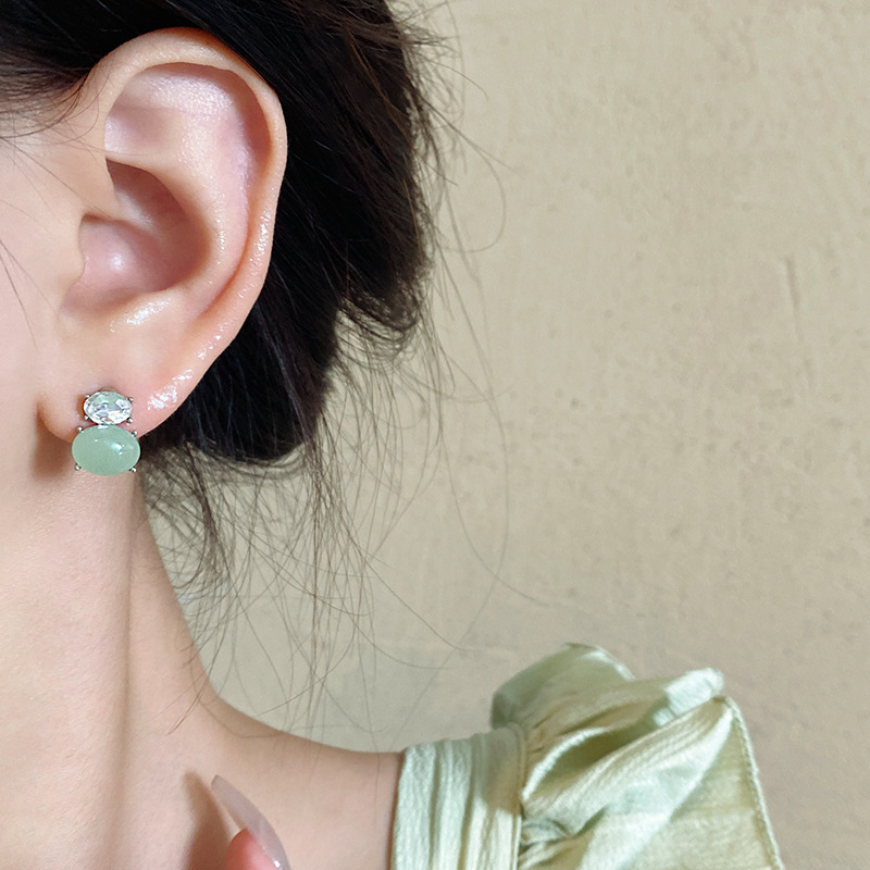 新中式中古风绿色仿玉髓耳钉复古高级感超闪水钻耳环百搭气质耳饰