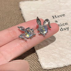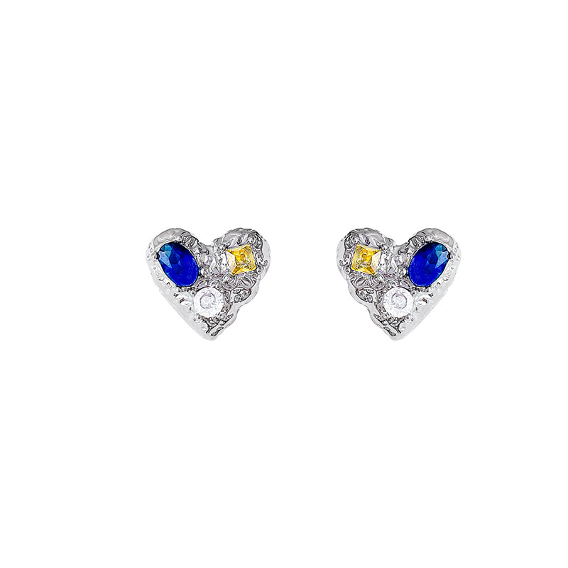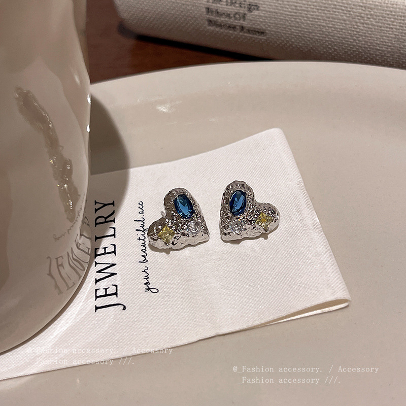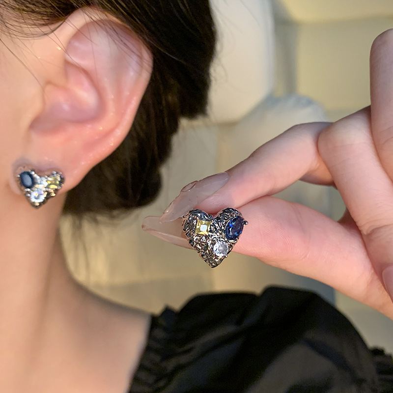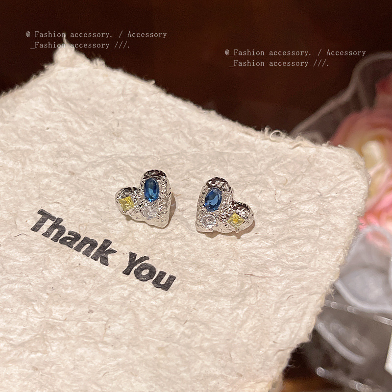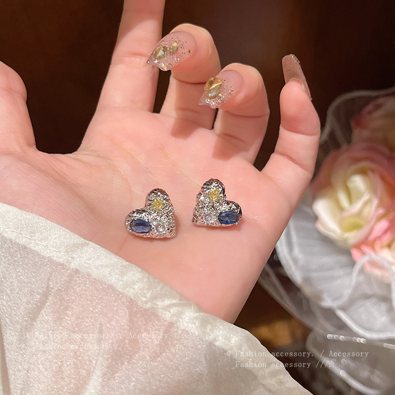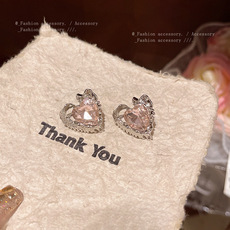轻奢小众高级感彩色锆石爱心耳钉百超仙气质网红同款桃心耳环耳饰